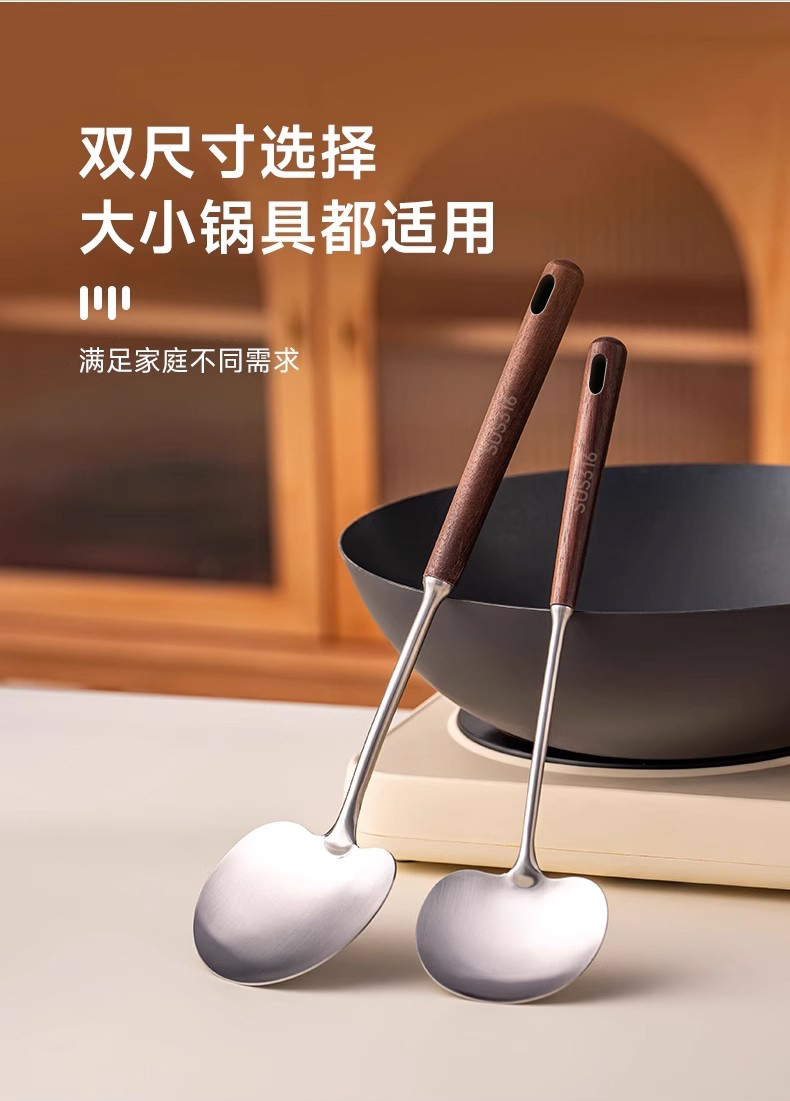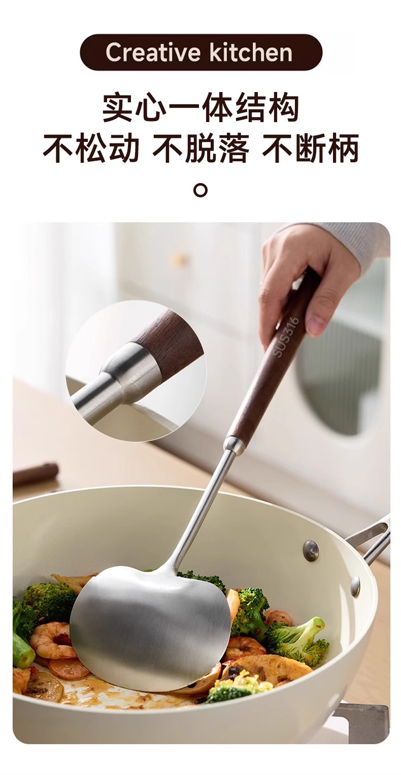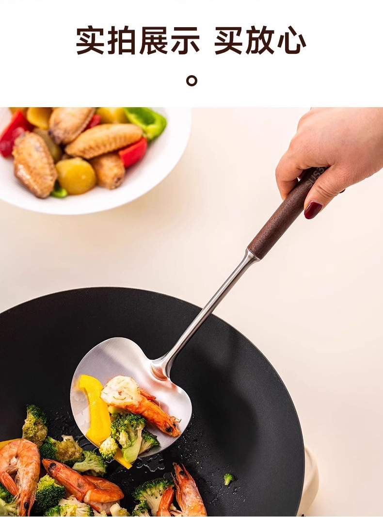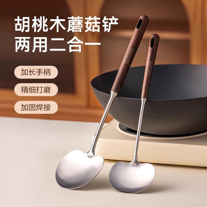 호두 버섯 주걱 304 스테인레스 스틸 주걱 Guizhou 요리 주걱 가정용 나무 손잡이 화상 방지 미니 주걱스토어 가기