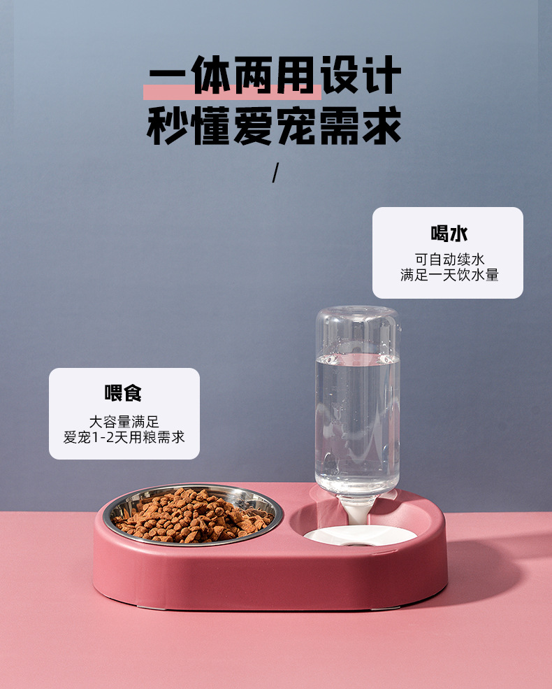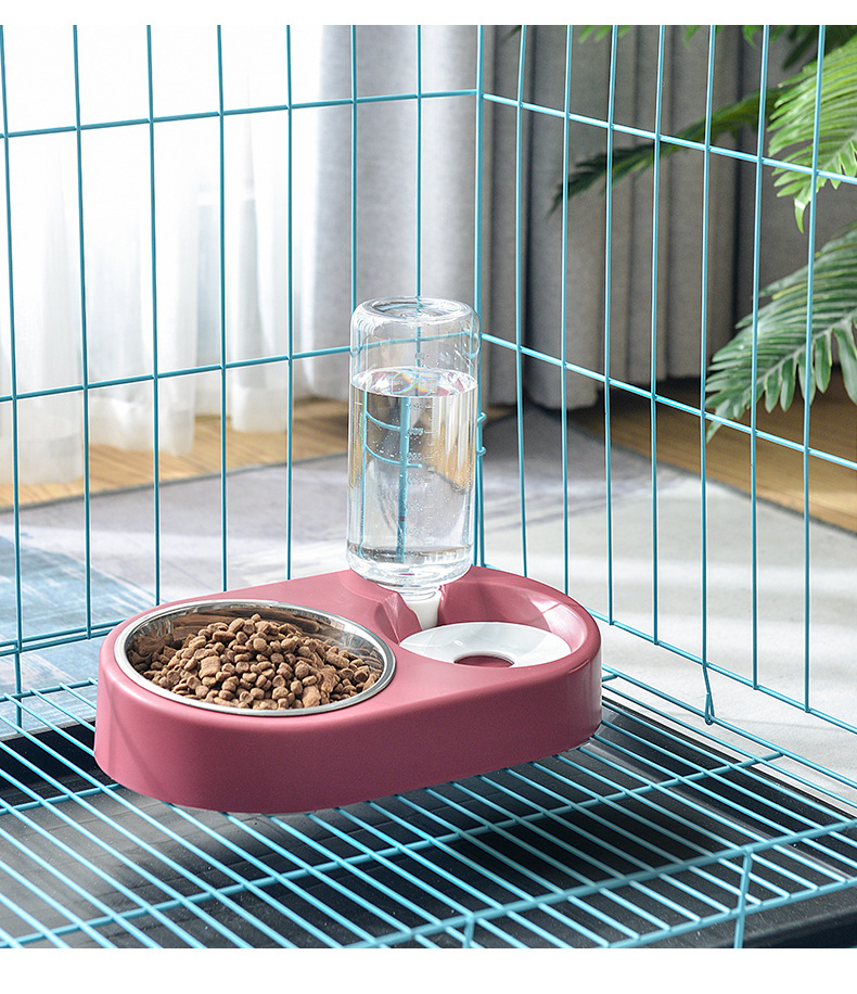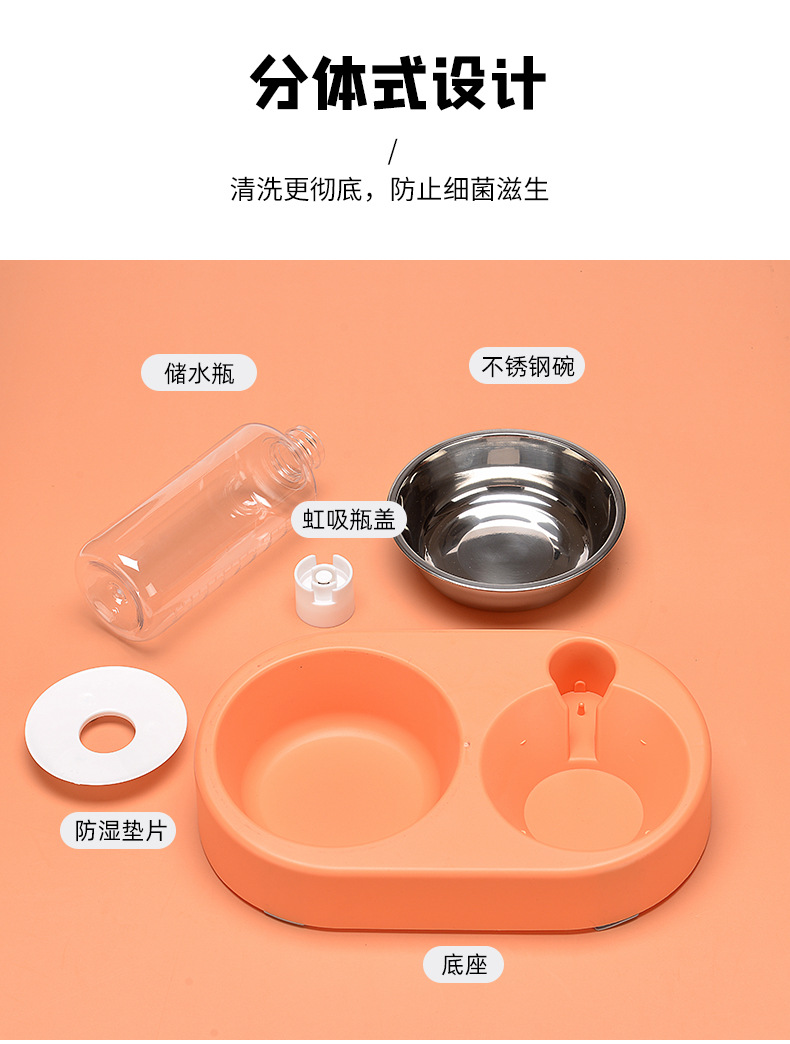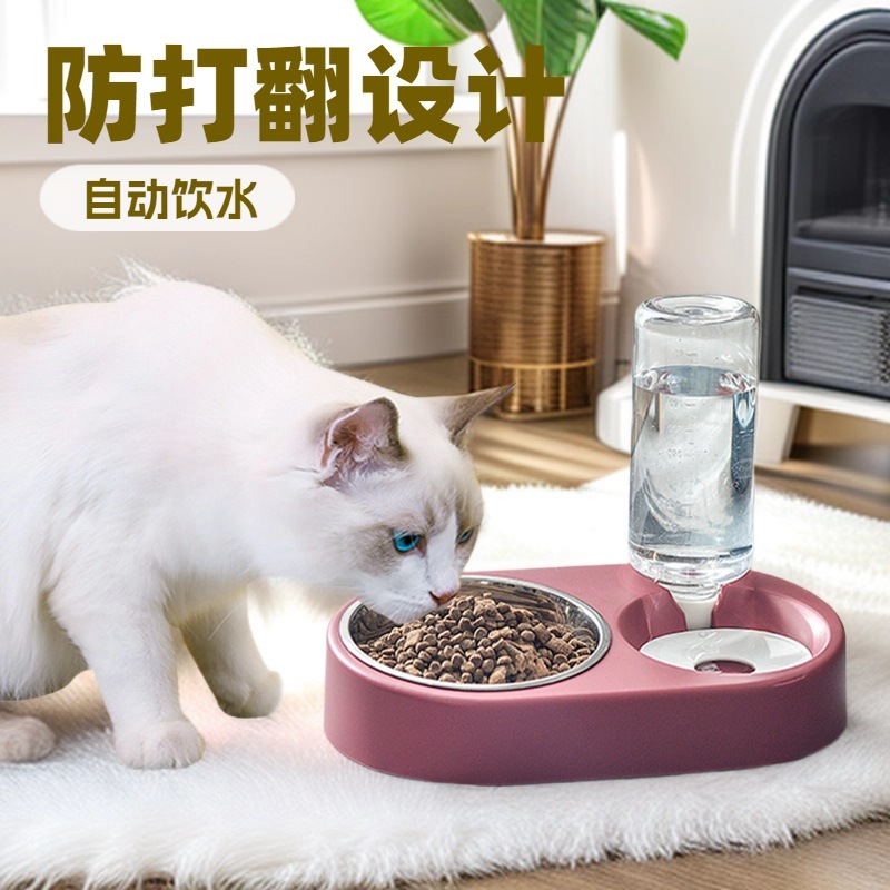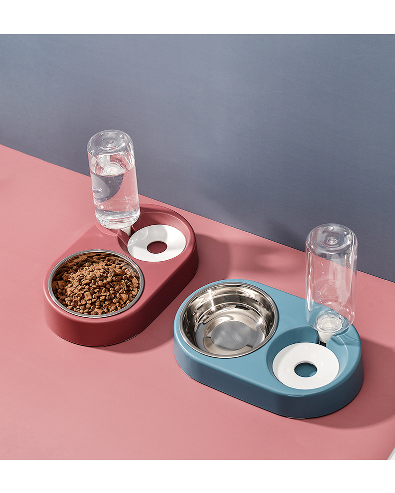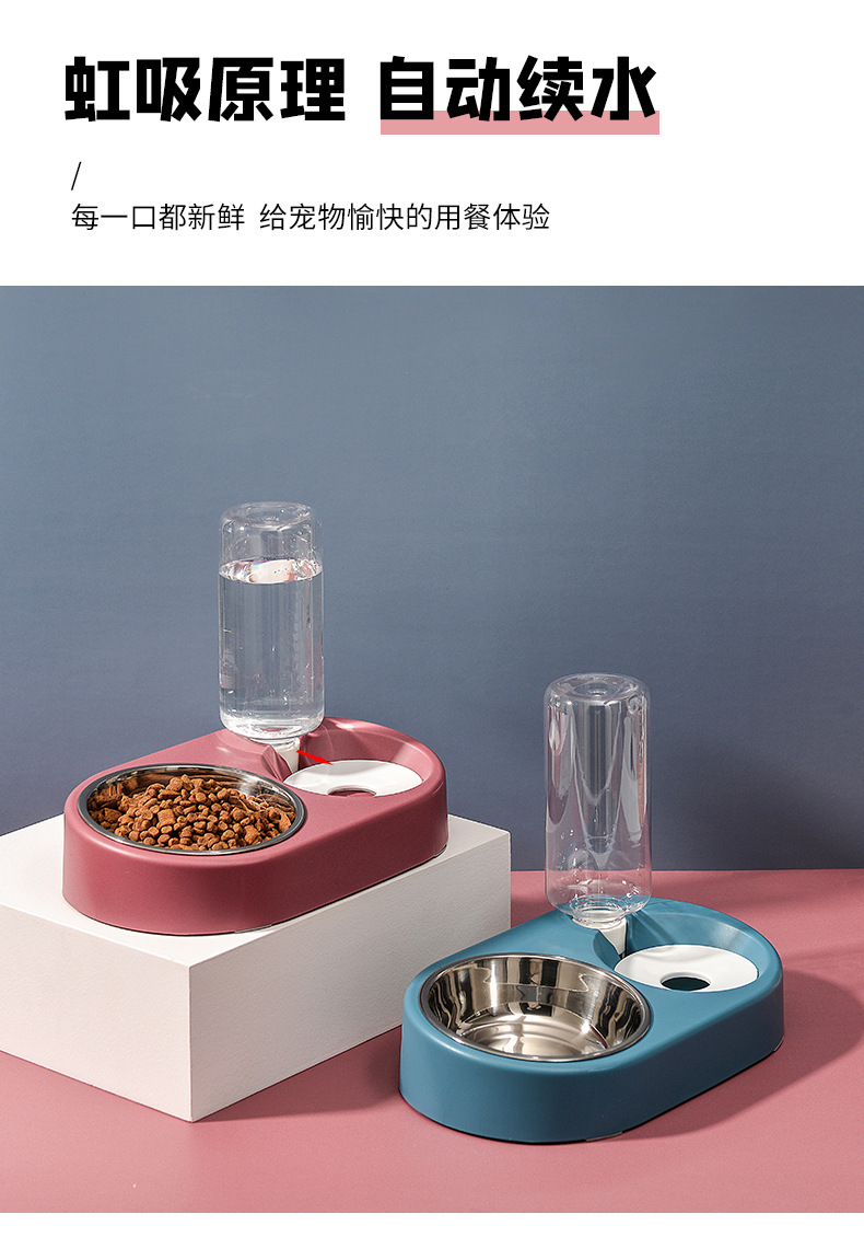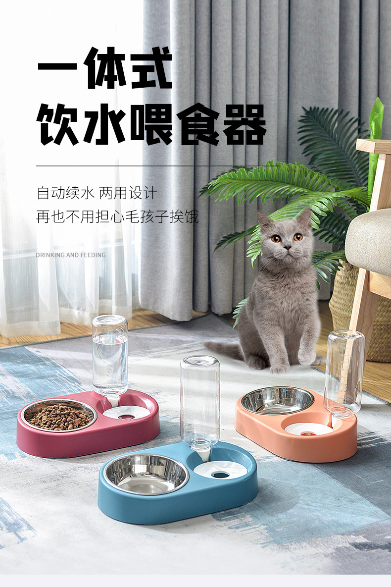 통합형 애완동물 이중 그릇 자동 급수기 고양이 물 디스펜서 개와 고양이는 물 그릇을 뒤집어지는 것을 방지하기 위해 경추를 보호합니다.스토어 가기