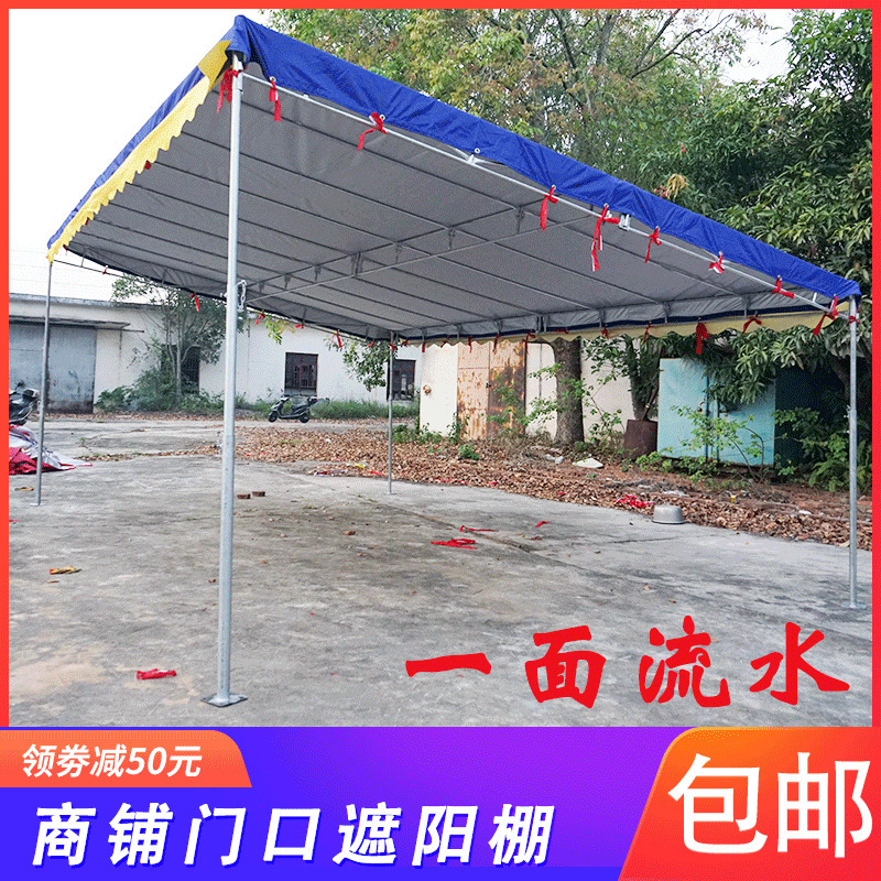 주차장 한쪽은 물이 흐르고, 연회장, 농촌용 차양, 빨간색과 흰색의 축제 가판대, 경사진 상점스토어 가기