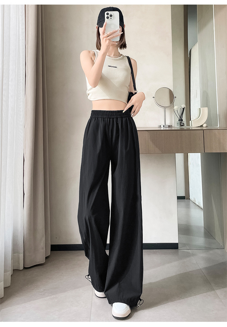 여성용 속건성 와이드 레그 스포츠 바지 2025 여름 얇은 레깅스 스포츠 하이킹 바지 자외선 차단 작업복 스트레이트 캐주얼 바지
