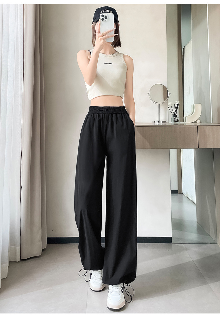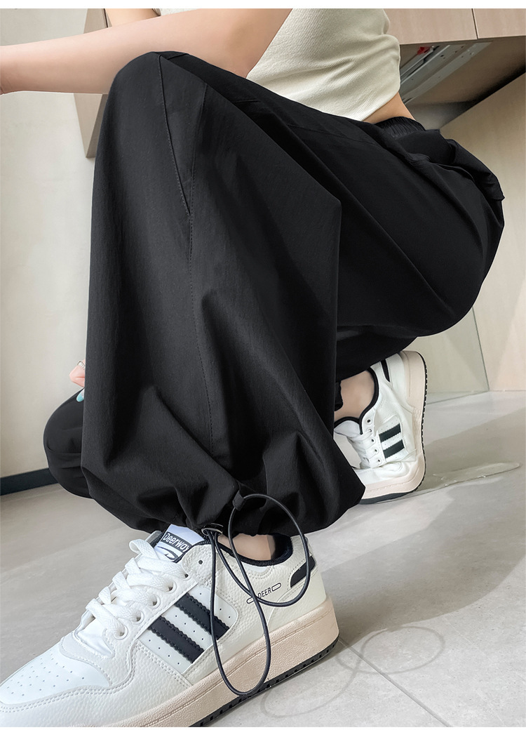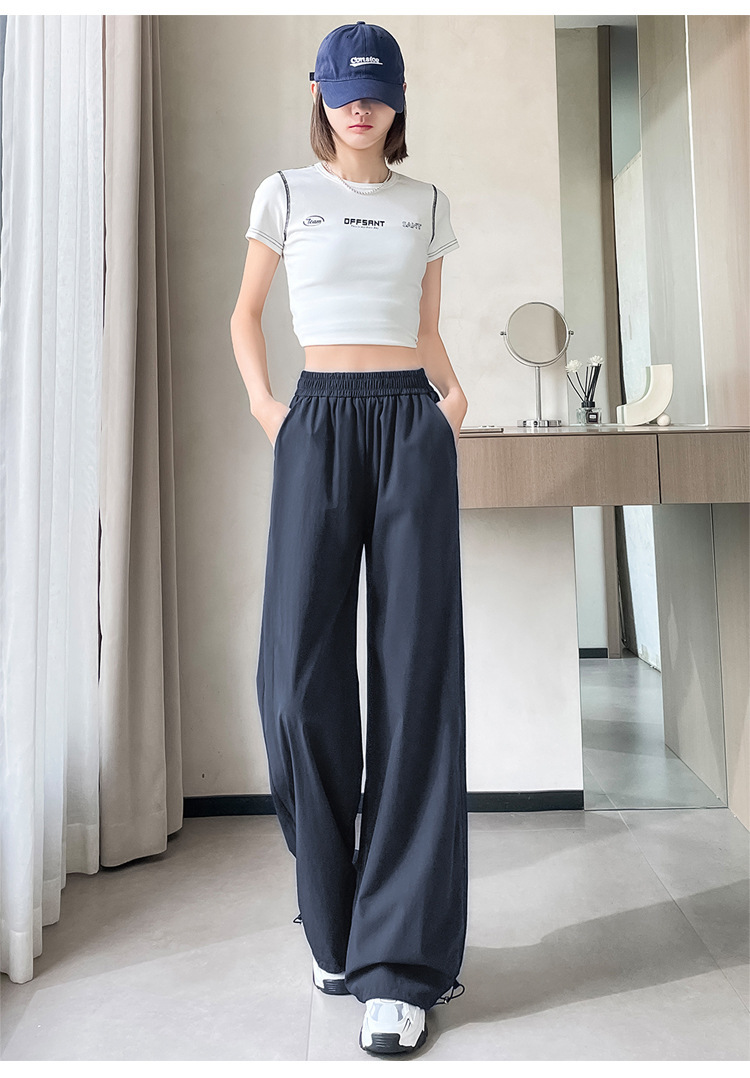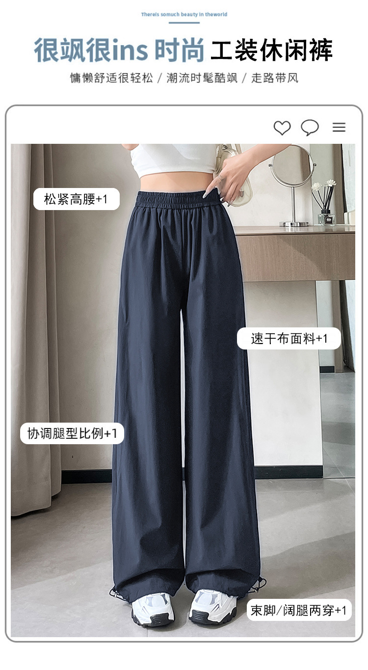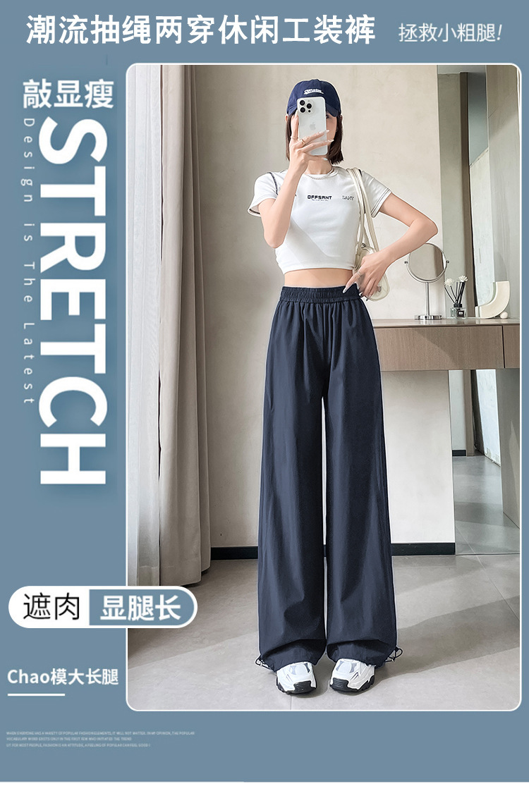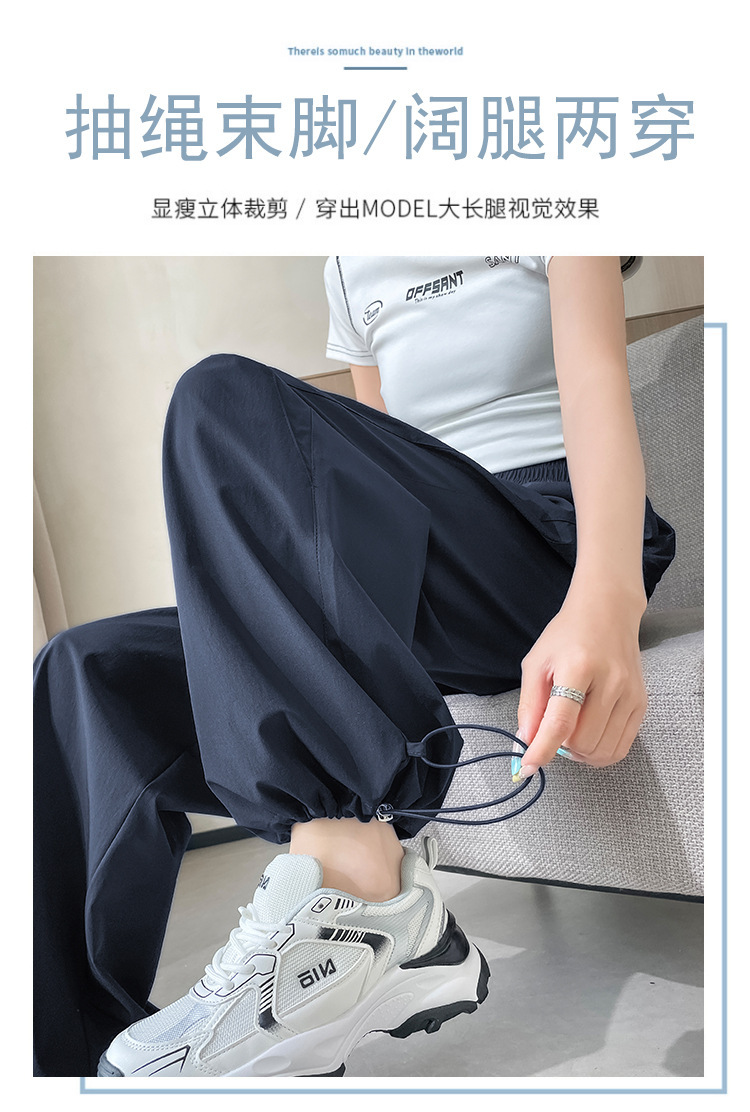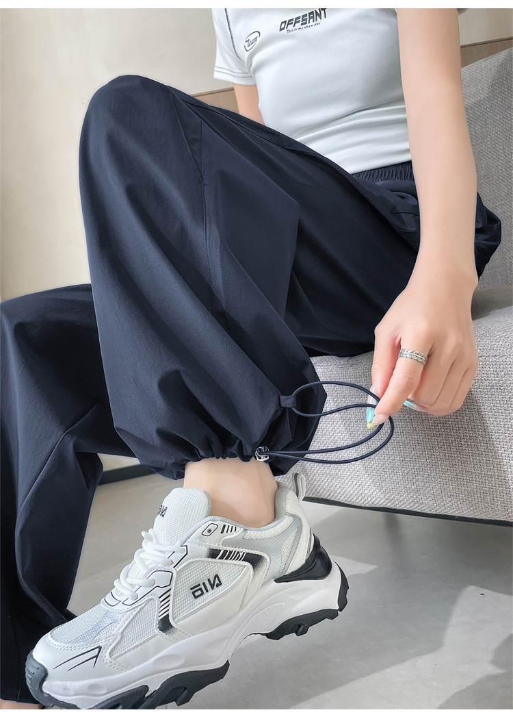 여성용 속건성 와이드 레그 스포츠 바지 2025 여름 얇은 레깅스 스포츠 하이킹 바지 자외선 차단 작업복 스트레이트 캐주얼 바지스토어 가기