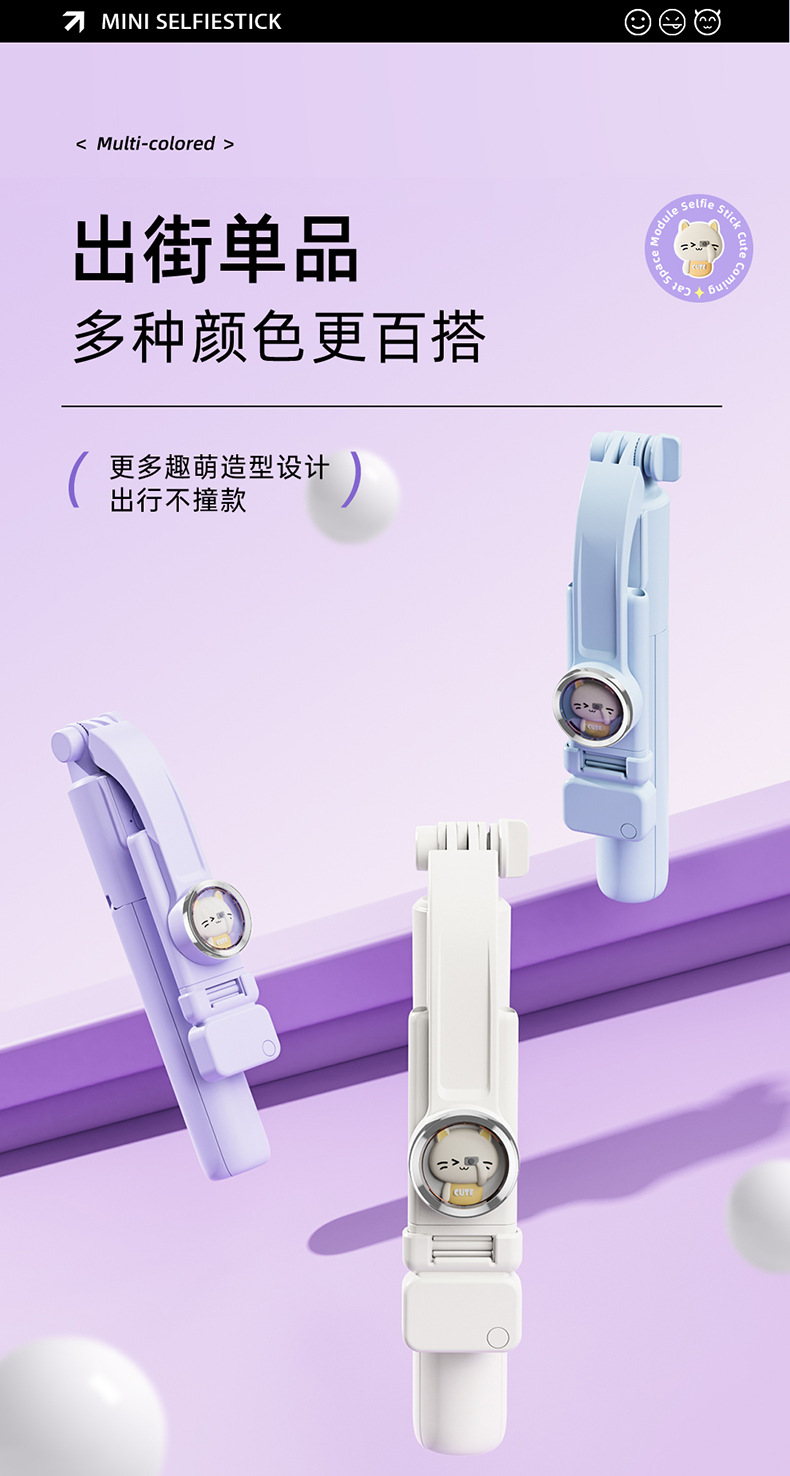 휴대 전화 셀카 스틱 블루투스 도매 삼각대 만화 귀여운 필 라이트 라이브 방송 올인원 휴대용 스탠드