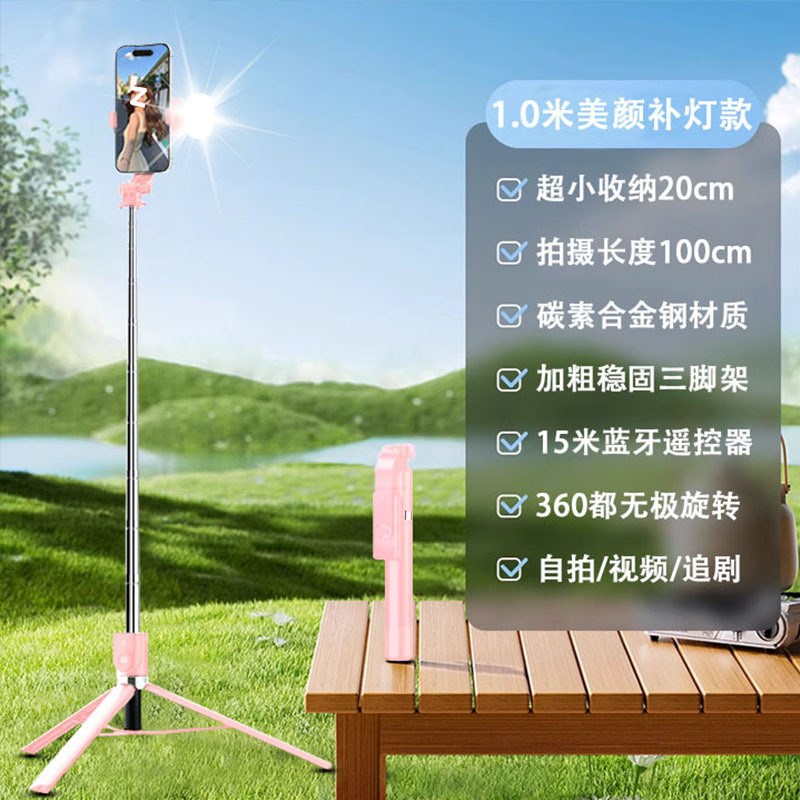 • 1.0m 라이트 없음 [여행 필수품] 삼각대 - 걸리핑크 [올인원 접이식 + 블루투스 셀카]