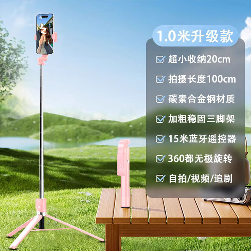 • 1.0m + 필라이트 [여행 필수품] 삼각대 - 걸리핑크 [올인원 접이식 + 블루투스 셀카]