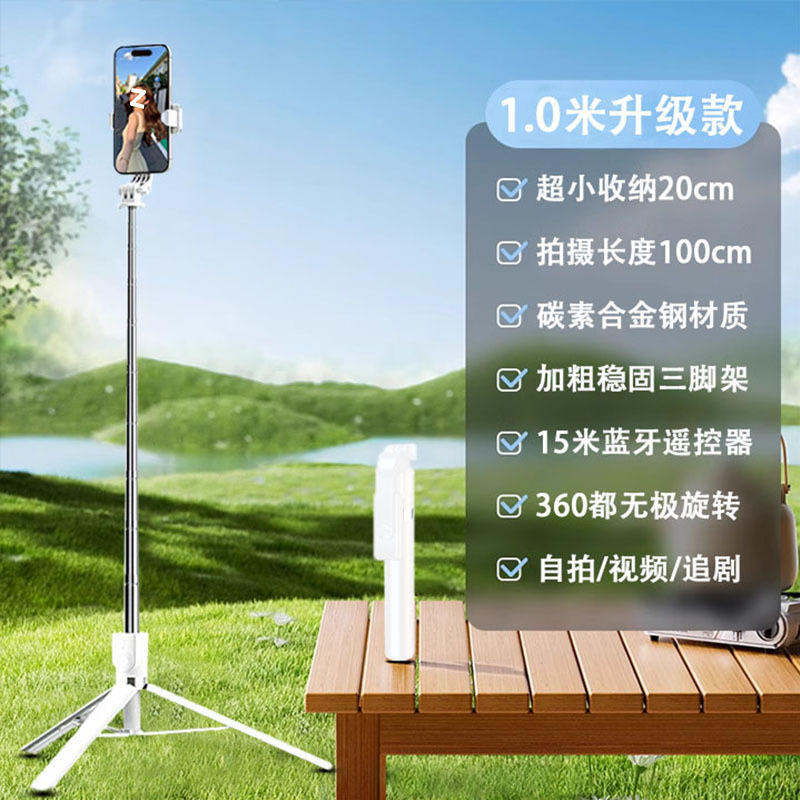 • 1.0m 라이트 없음 [여행 필수품] 삼각대 - 홀리 화이트 [올인원 접이식 + 블루투스 셀카]