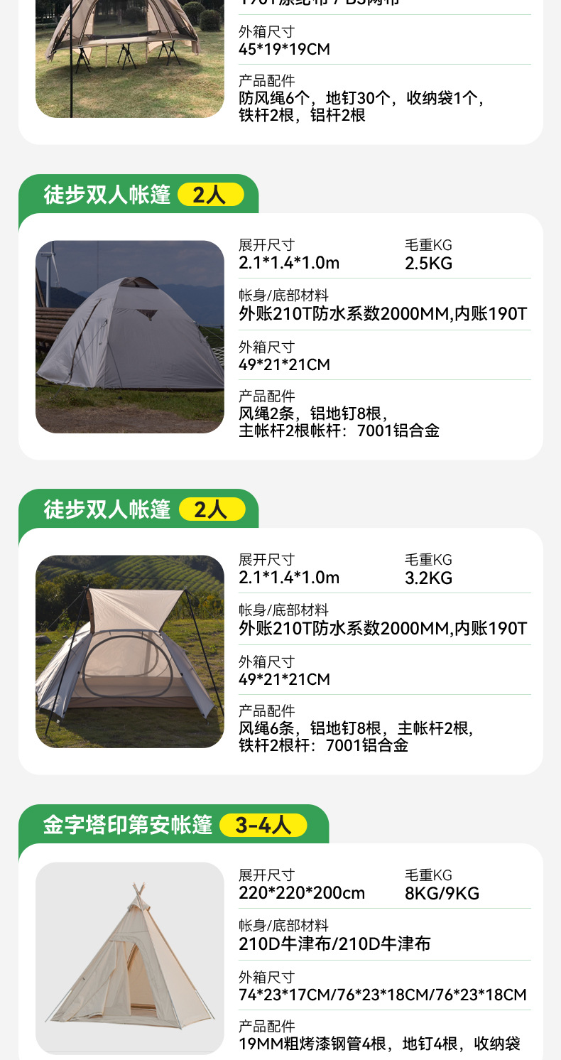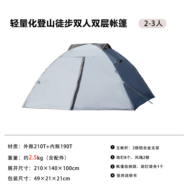 • 현관이 있는 2인용 경량 하이킹 텐트(2-3인용 210*140*100cm)