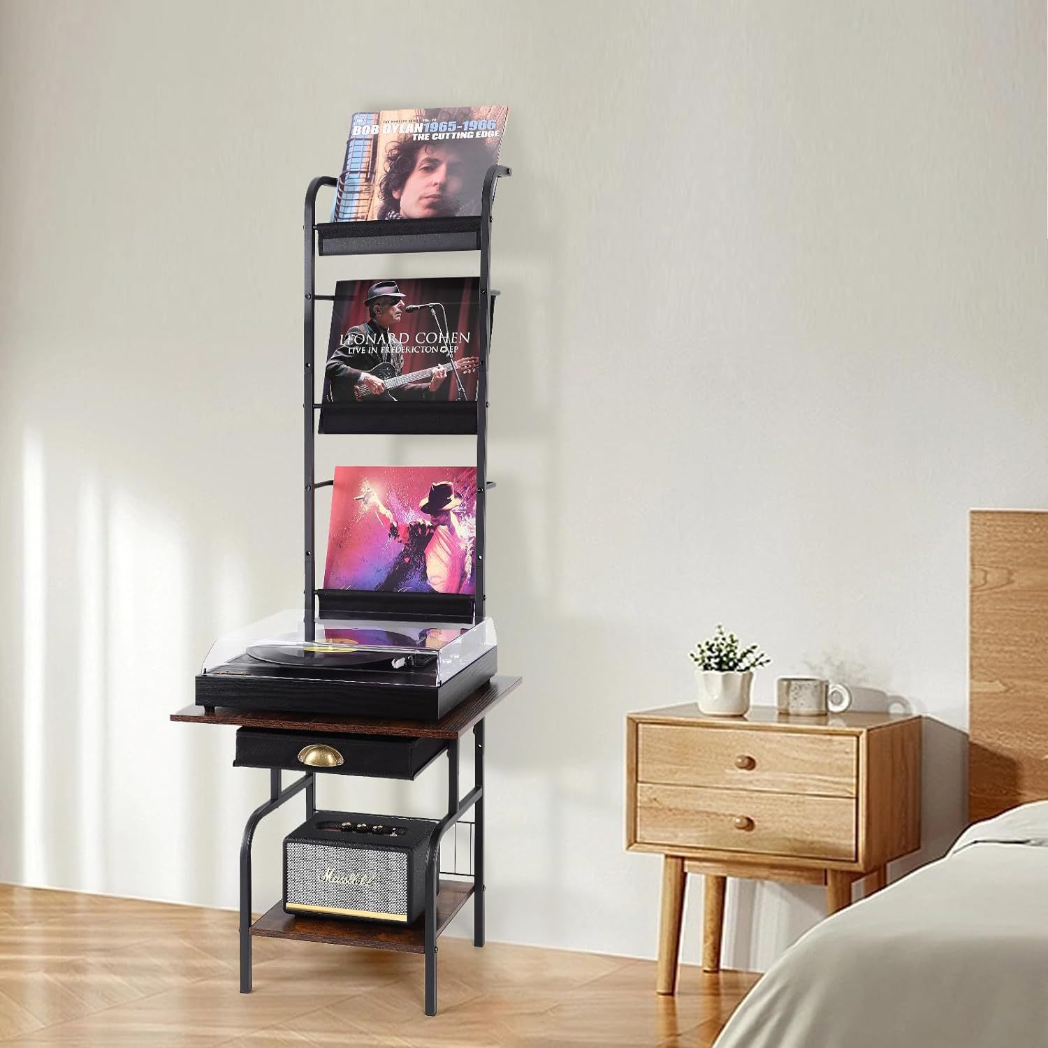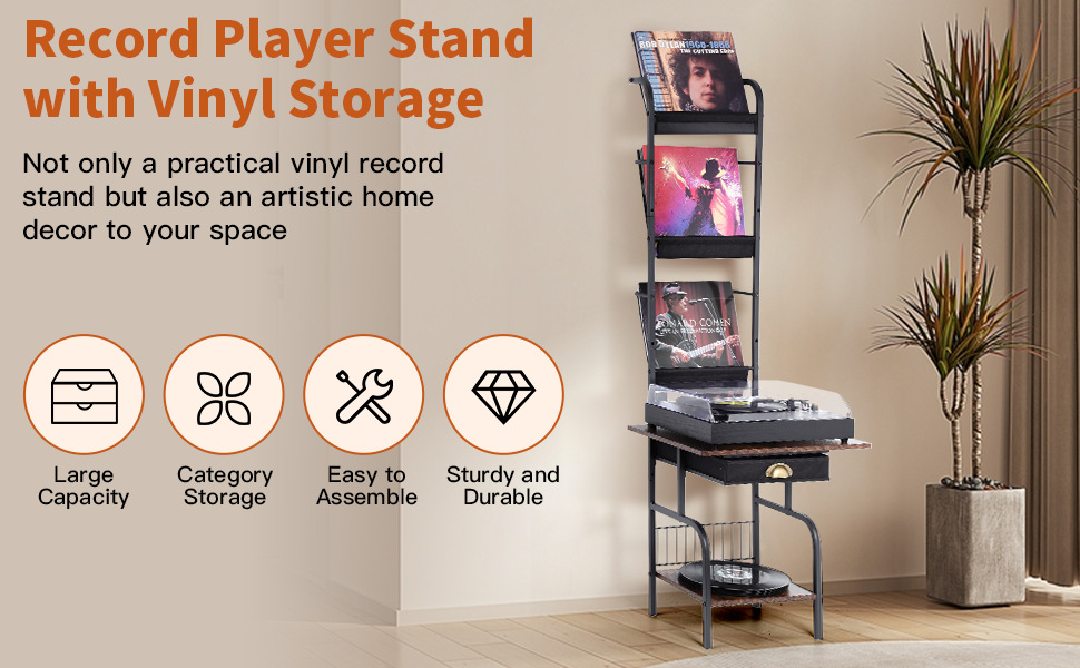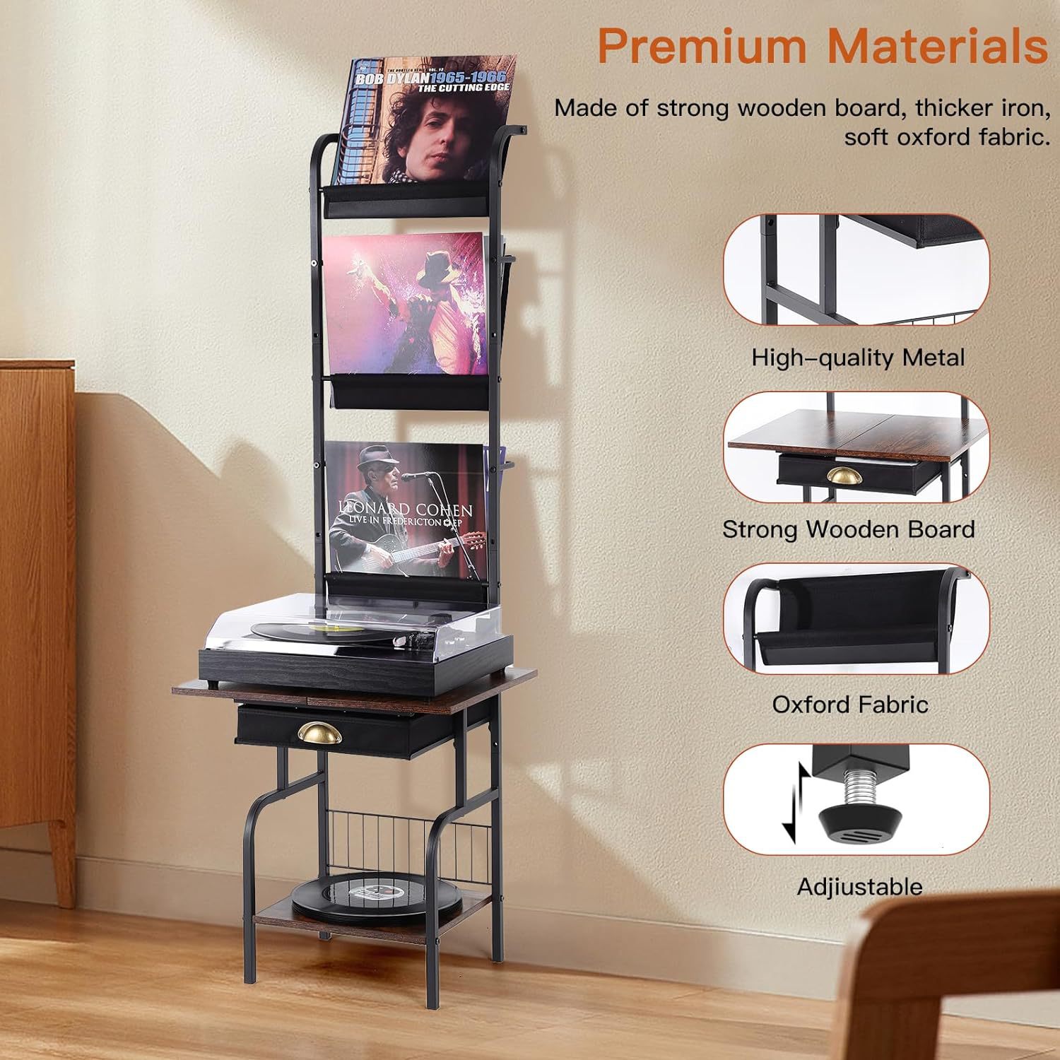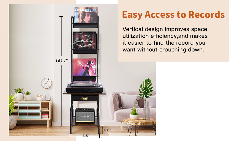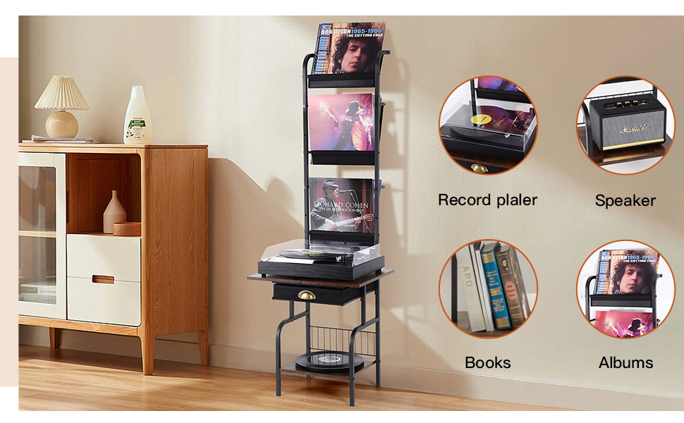 맞춤형 간단한 가정용 비닐 레코드 랙 바닥 철제 나무 CD 서랍 보관 랙 다층 보관 랙