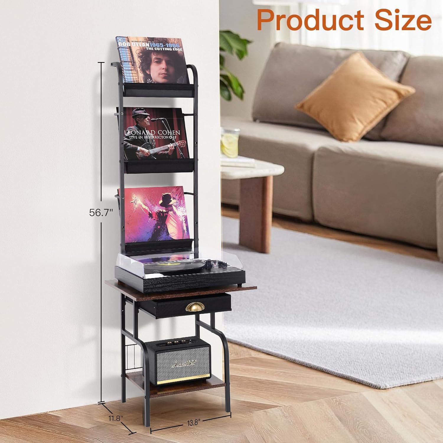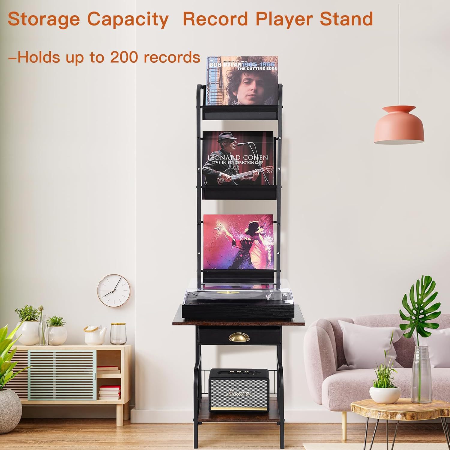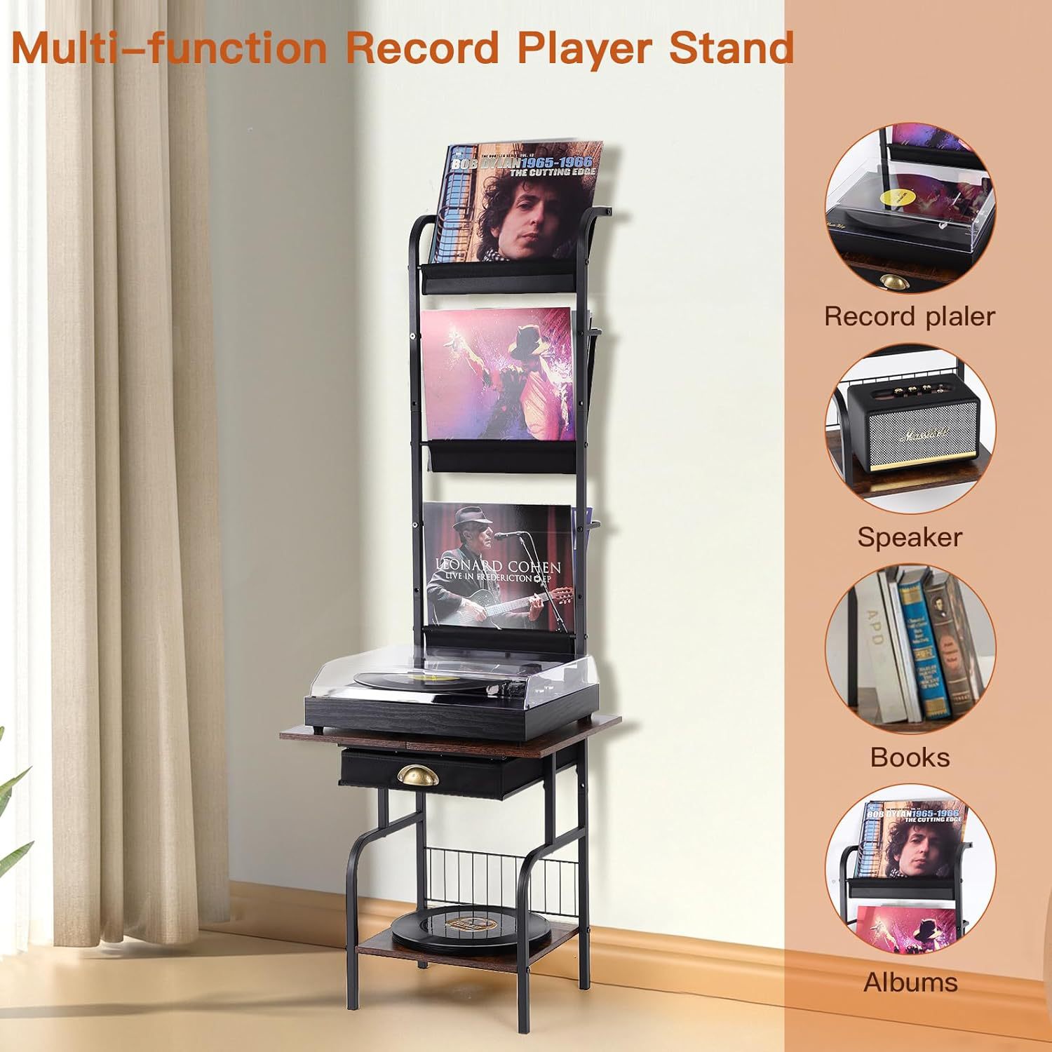 맞춤형 간단한 가정용 비닐 레코드 랙 바닥 철제 나무 CD 서랍 보관 랙 다층 보관 랙