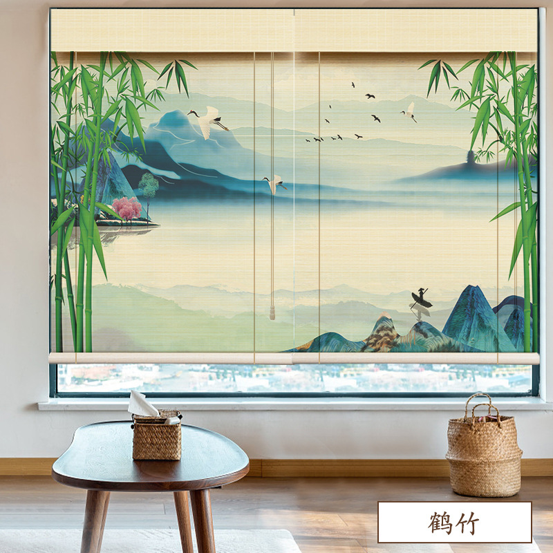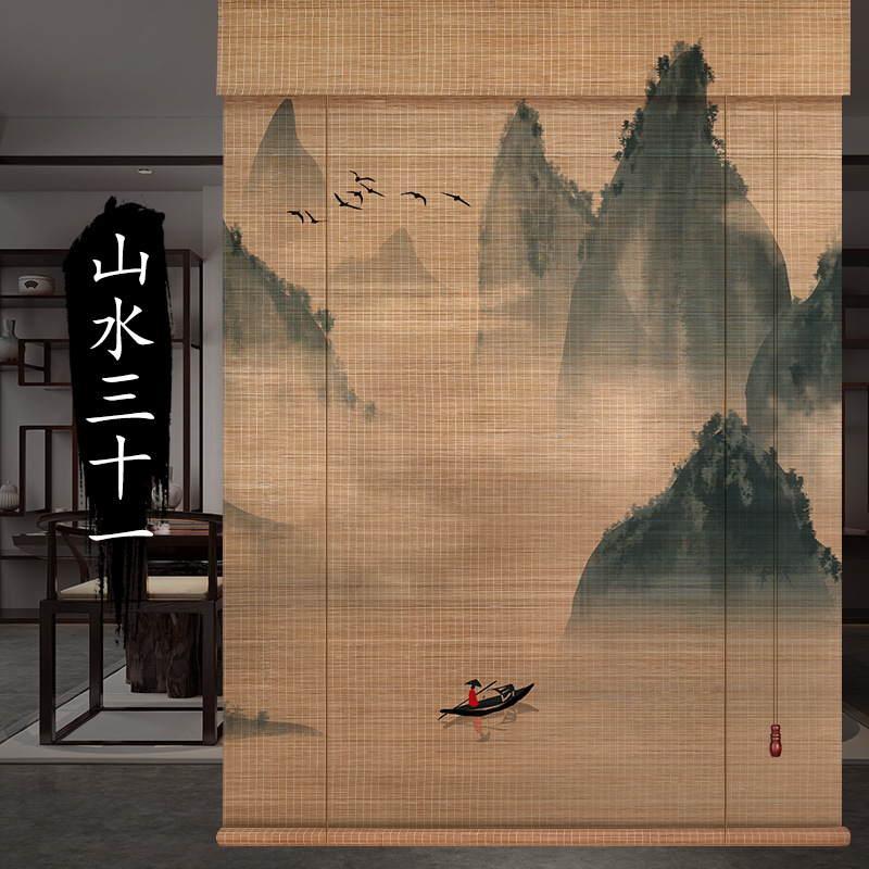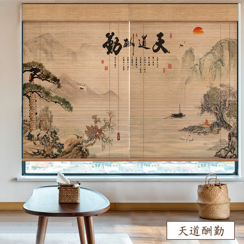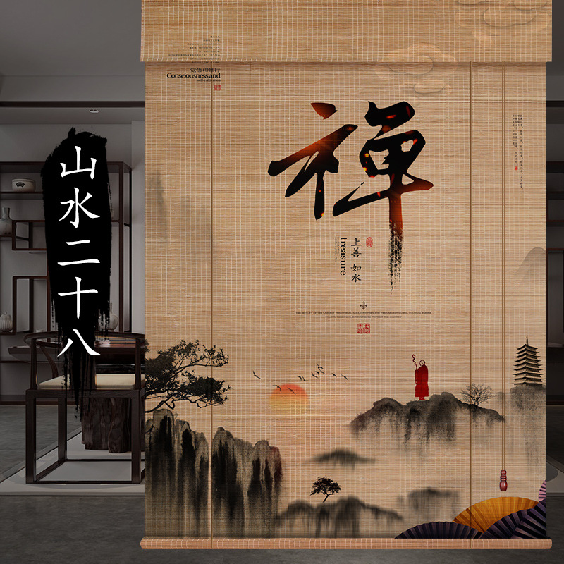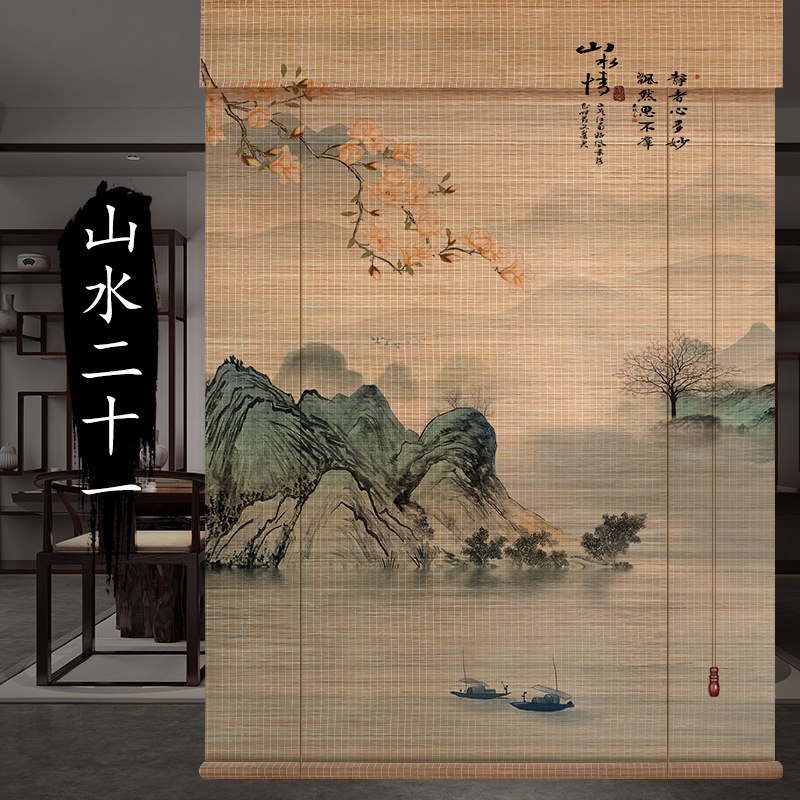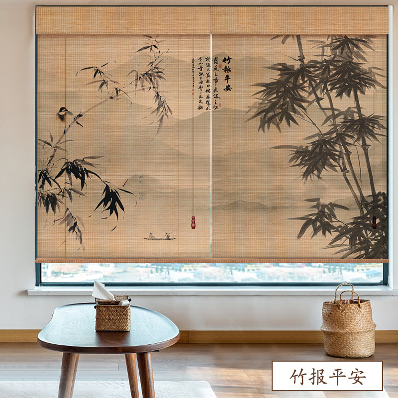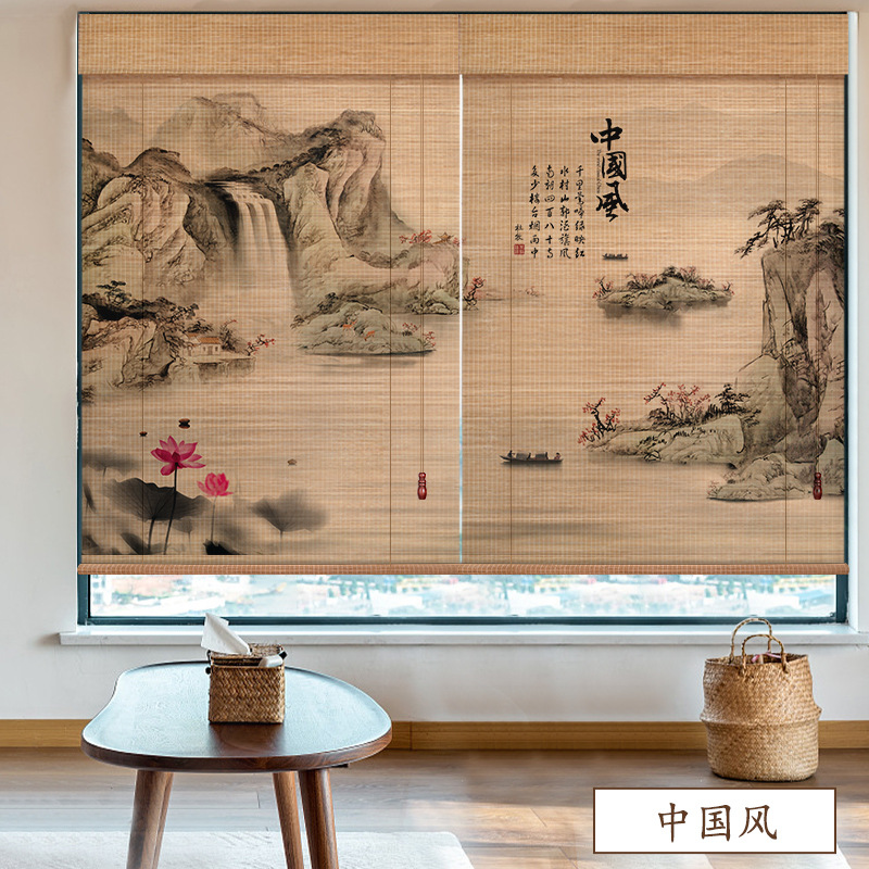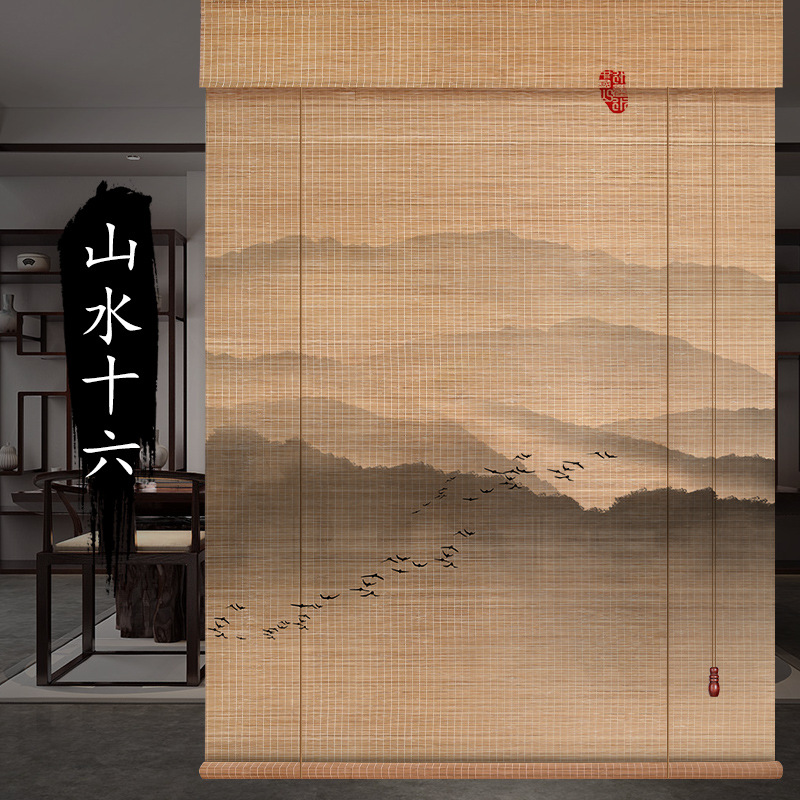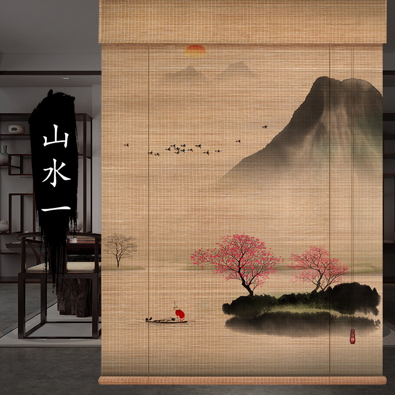 인쇄 된 대나무 커튼 롤러 블라인드 찻집 파티션 도어 커튼 새로운 중국 스타일의 차광 및 차양 국가 스타일 배경 벽 장식 교수형 그림 bjs