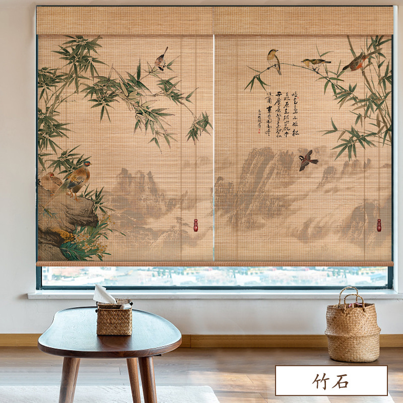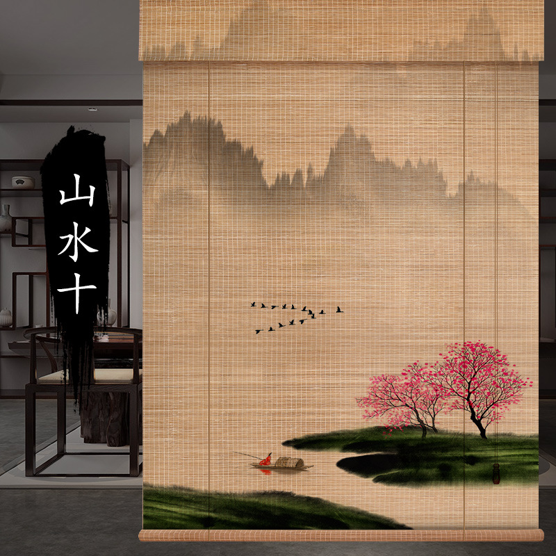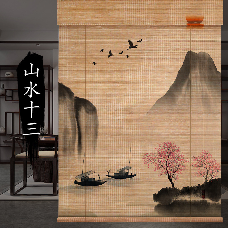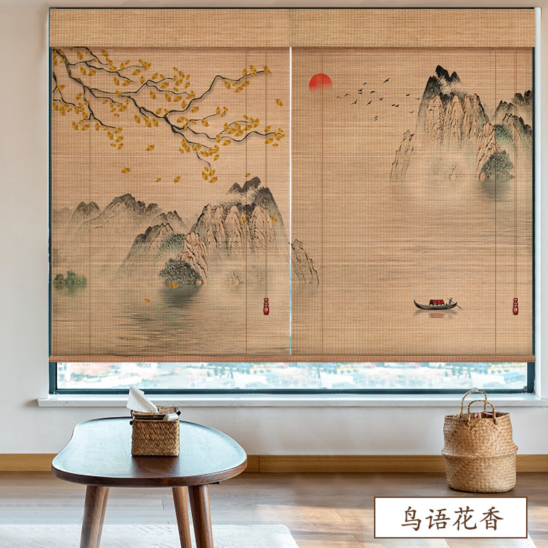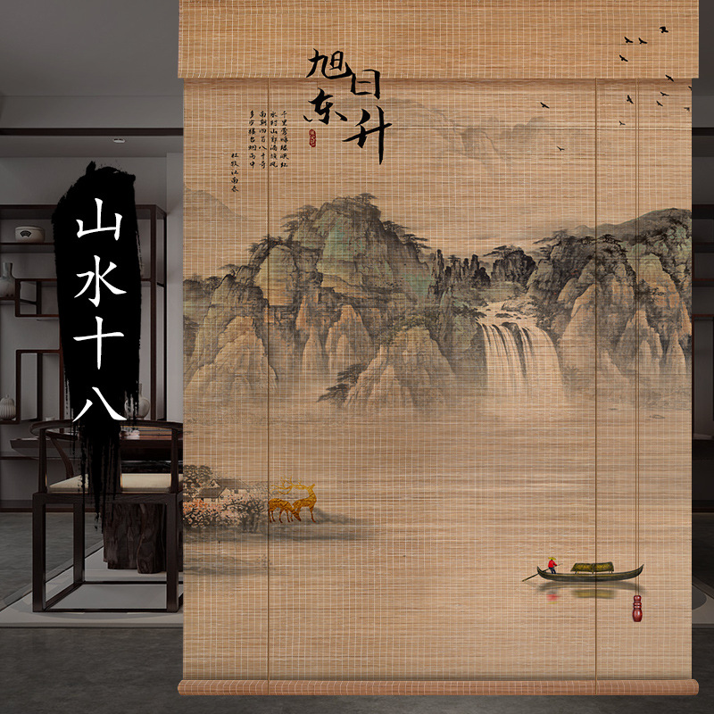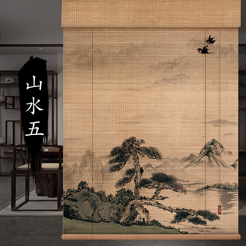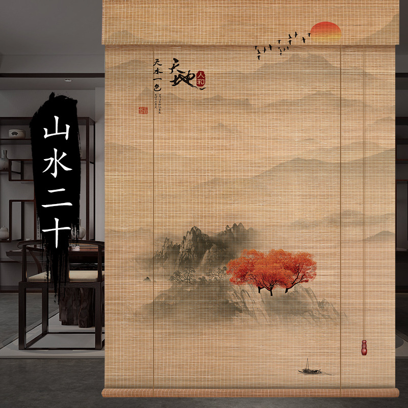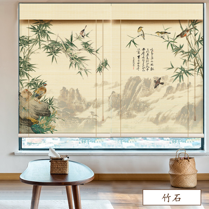 인쇄 된 대나무 커튼 롤러 블라인드 찻집 파티션 도어 커튼 새로운 중국 스타일의 차광 및 차양 국가 스타일 배경 벽 장식 교수형 그림 bjs