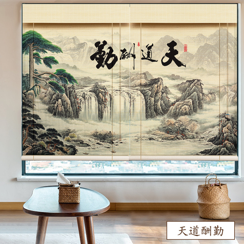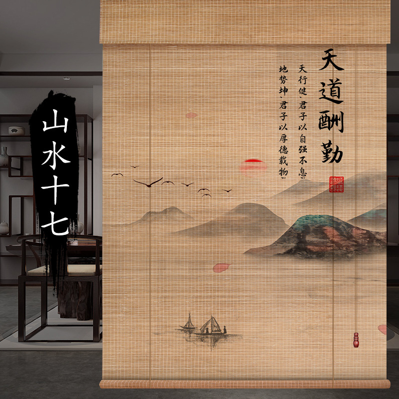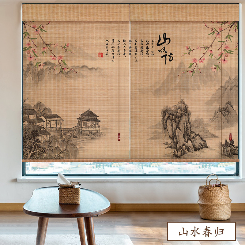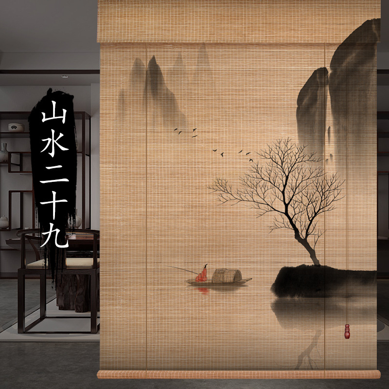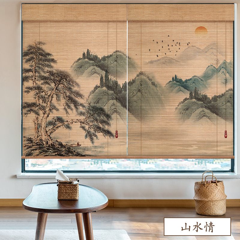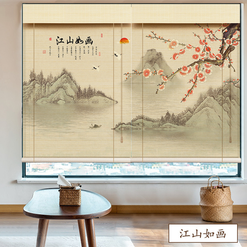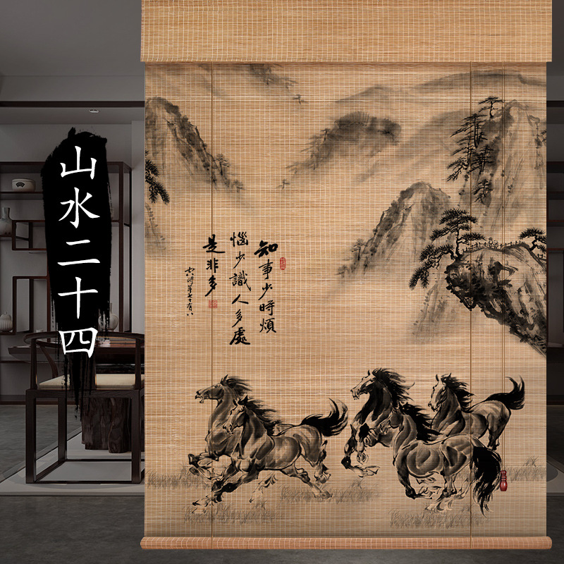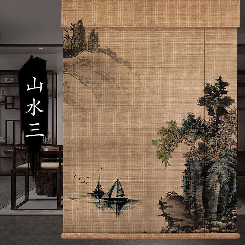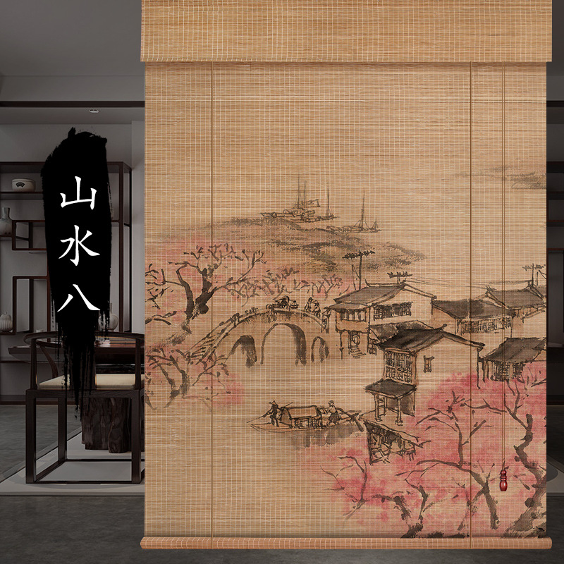 인쇄 된 대나무 커튼 롤러 블라인드 찻집 파티션 도어 커튼 새로운 중국 스타일의 차광 및 차양 국가 스타일 배경 벽 장식 교수형 그림 bjs