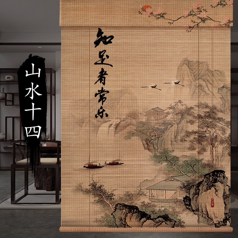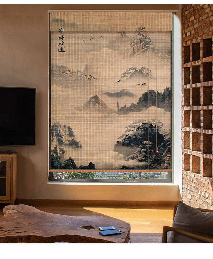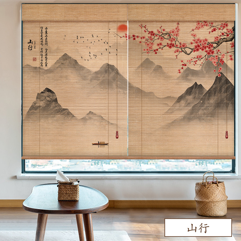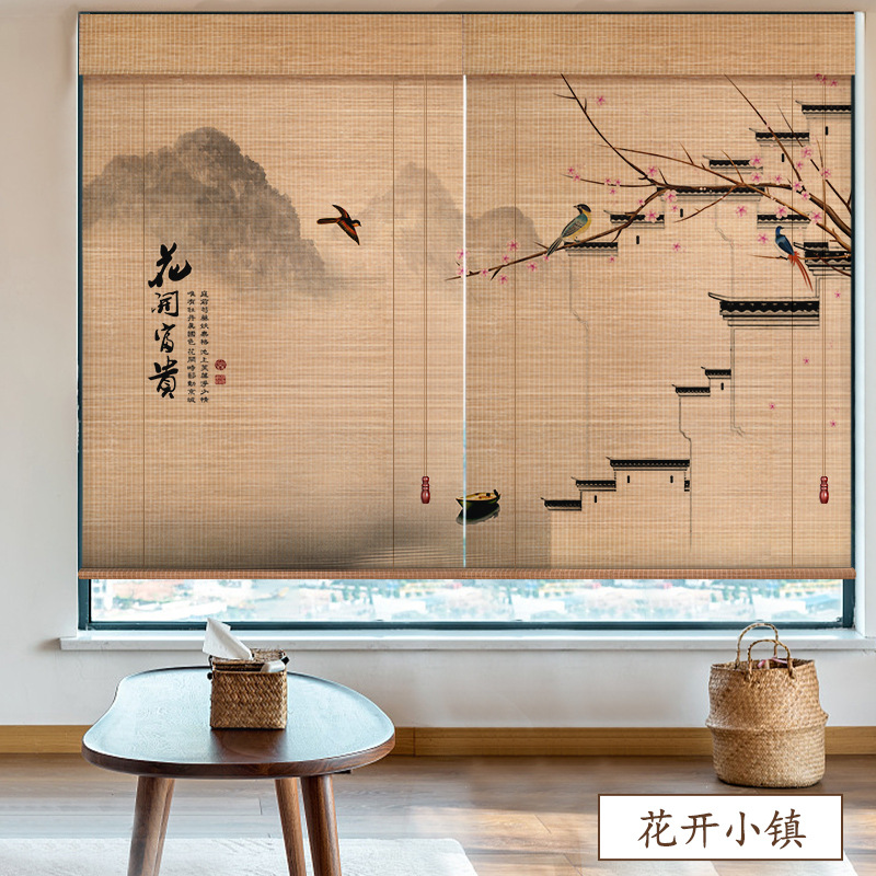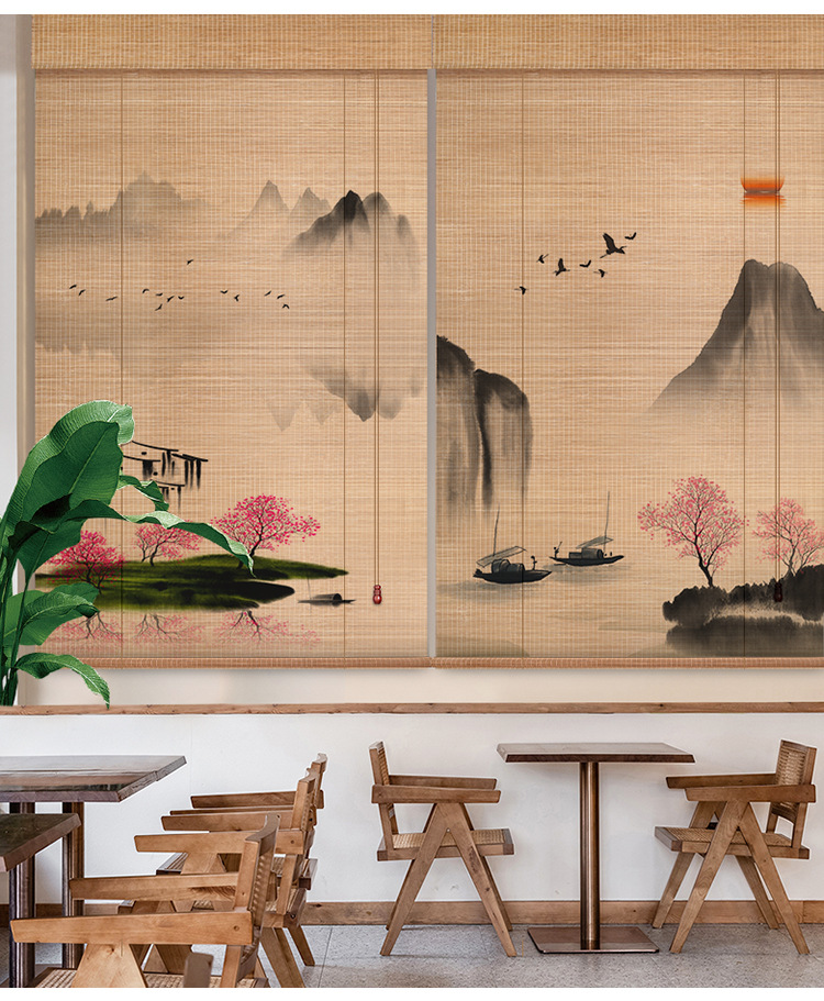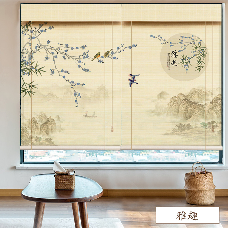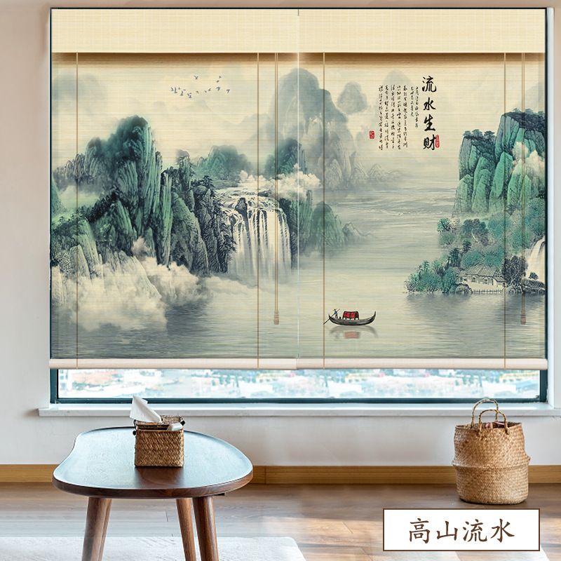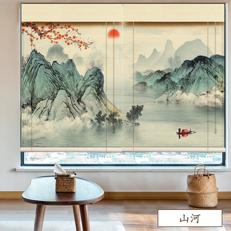인쇄 된 대나무 커튼 롤러 블라인드 찻집 파티션 도어 커튼 새로운 중국 스타일의 차광 및 차양 국가 스타일 배경 벽 장식 교수형 그림 bjs