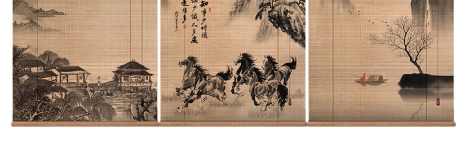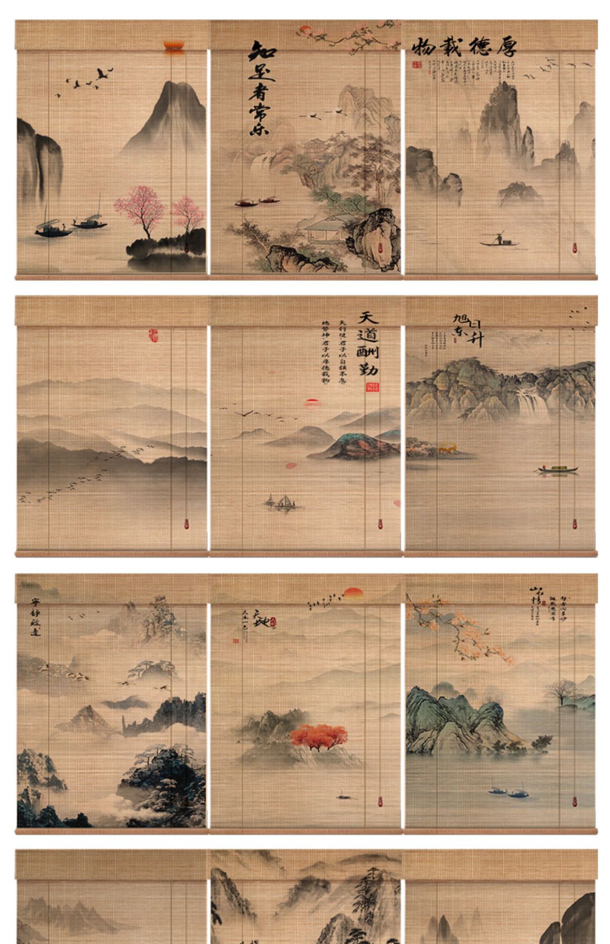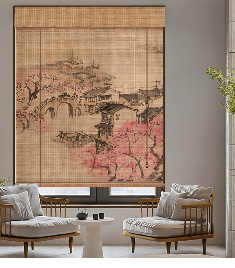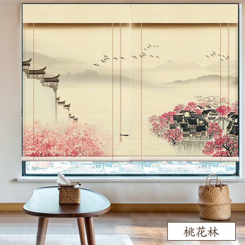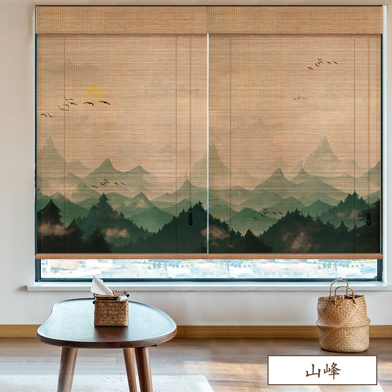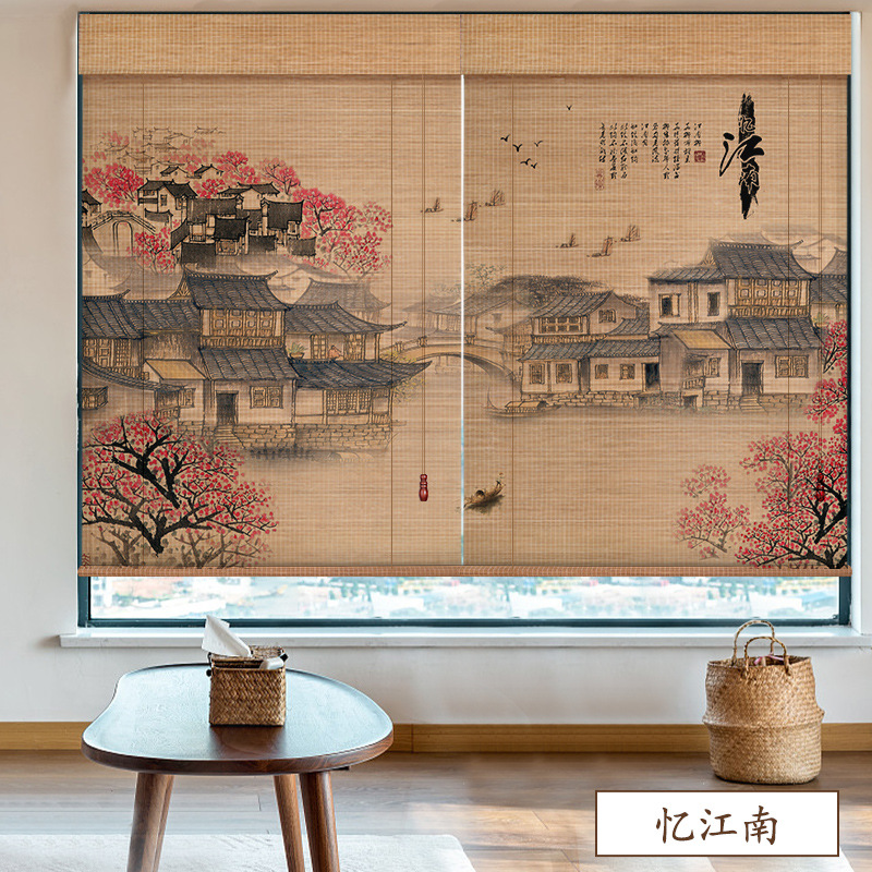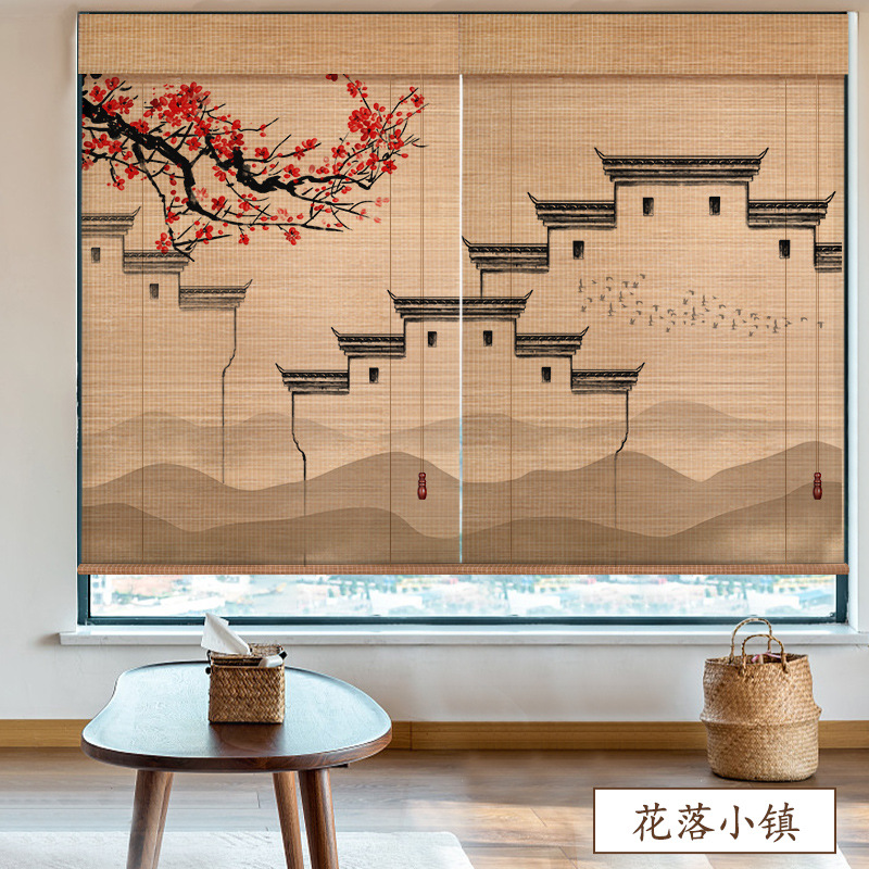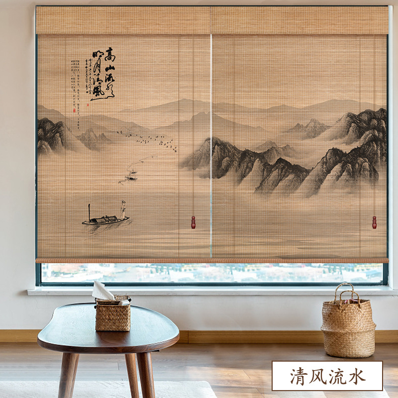 인쇄 된 대나무 커튼 롤러 블라인드 찻집 파티션 도어 커튼 새로운 중국 스타일의 차광 및 차양 국가 스타일 배경 벽 장식 교수형 그림 bjs