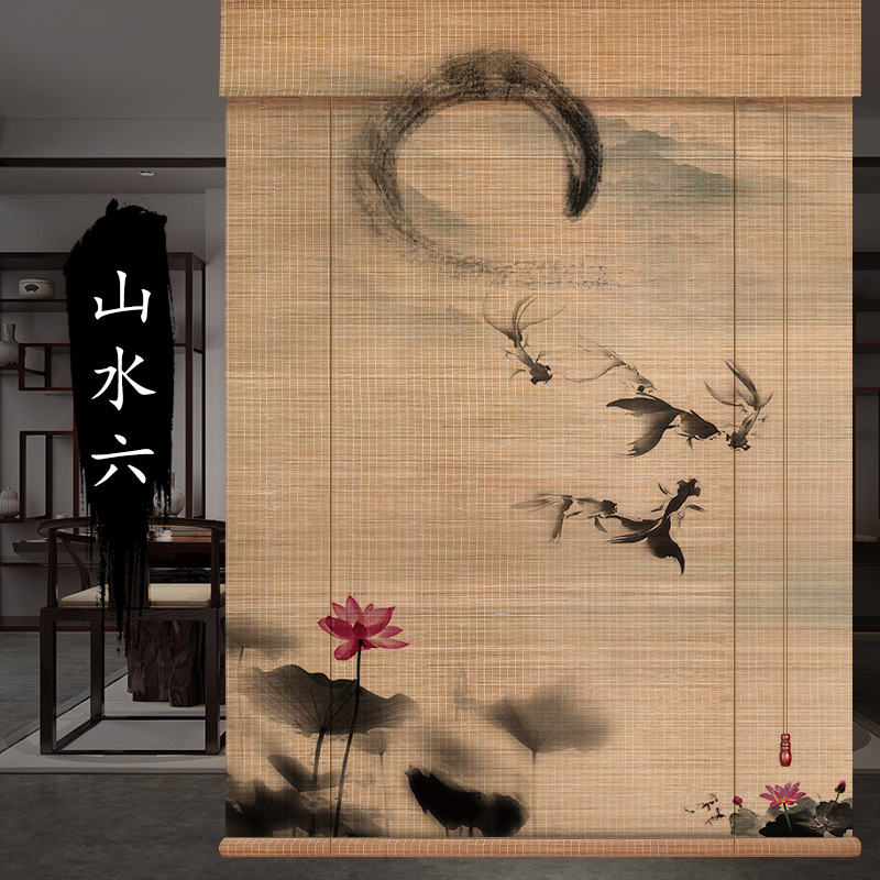 인쇄 된 대나무 커튼 롤러 블라인드 찻집 파티션 도어 커튼 새로운 중국 스타일의 차광 및 차양 국가 스타일 배경 벽 장식 교수형 그림 bjs스토어 가기