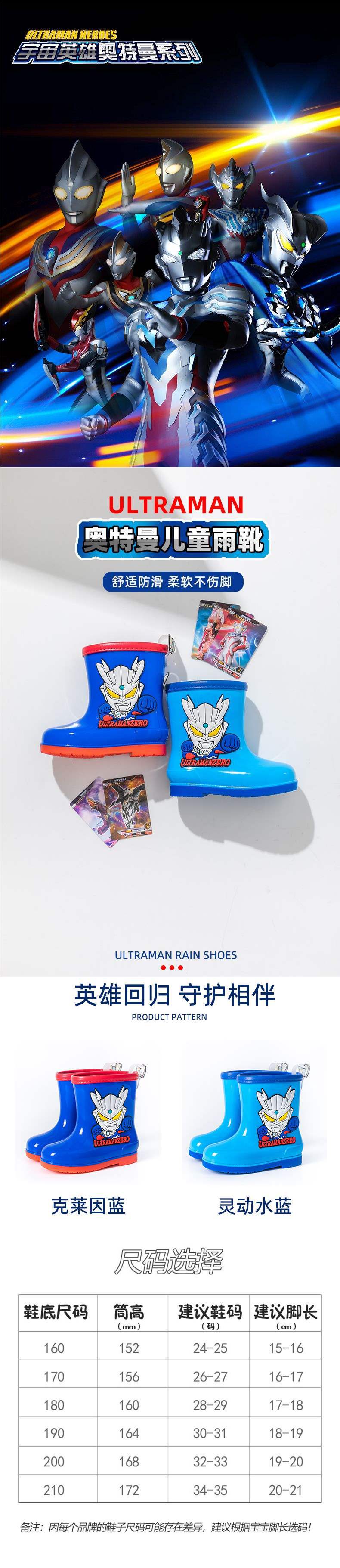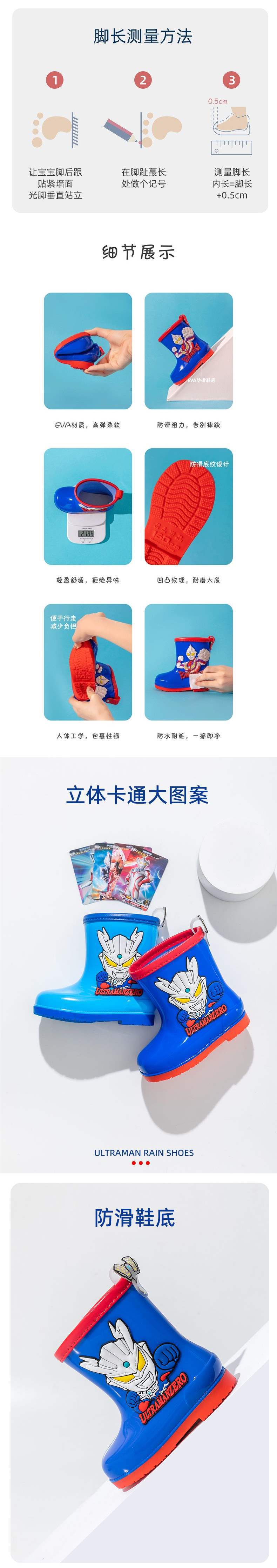 울트라맨 제로 어린이용 미끄럼 방지 장화, 남아용 중대형 어린이용 덧신, 남아용 학생용 워터슈즈 및 장화스토어 가기