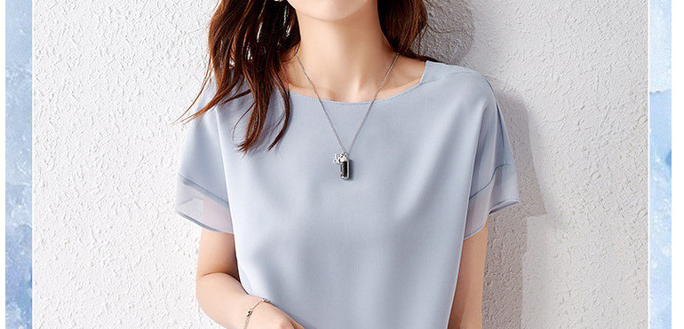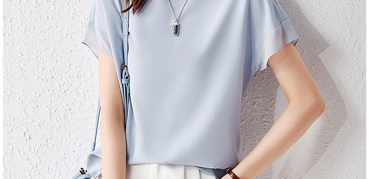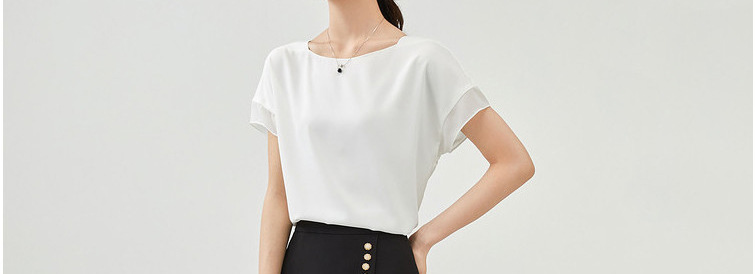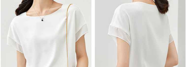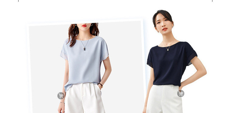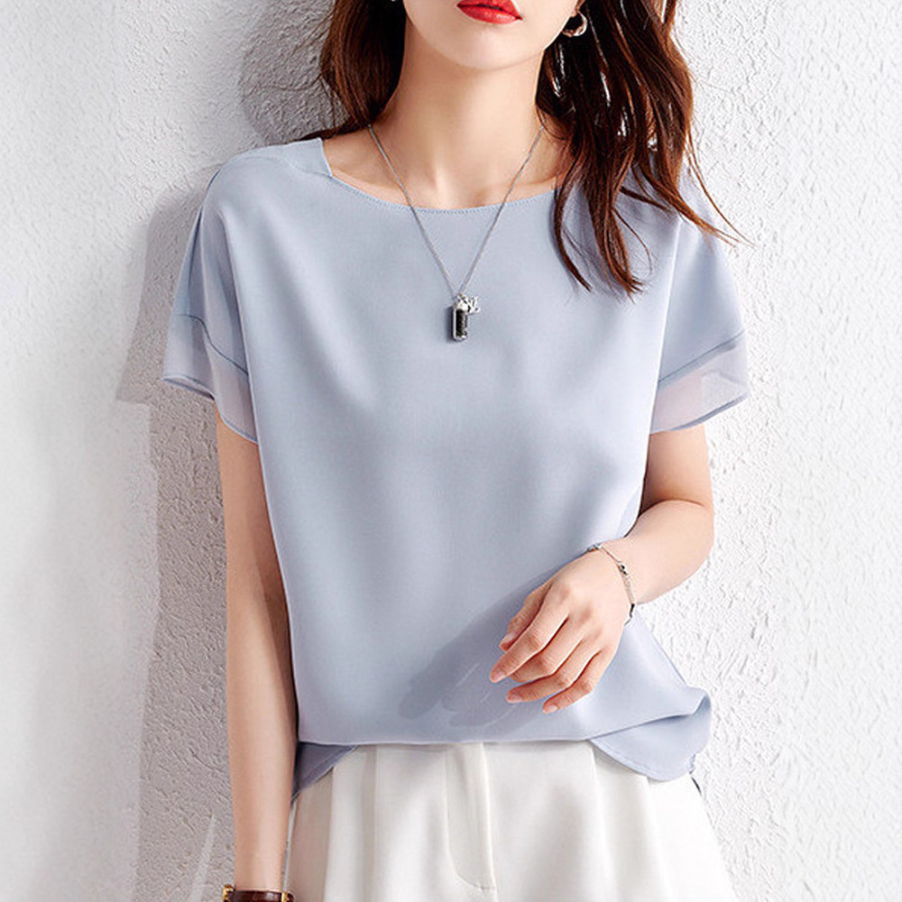 2025 새로운 여름 스타일 라운드 넥 루즈 슬리밍 심플 아름다운 연령 감소 하이 엔드 틈새 쉬폰 셔츠 여성상의스토어 가기