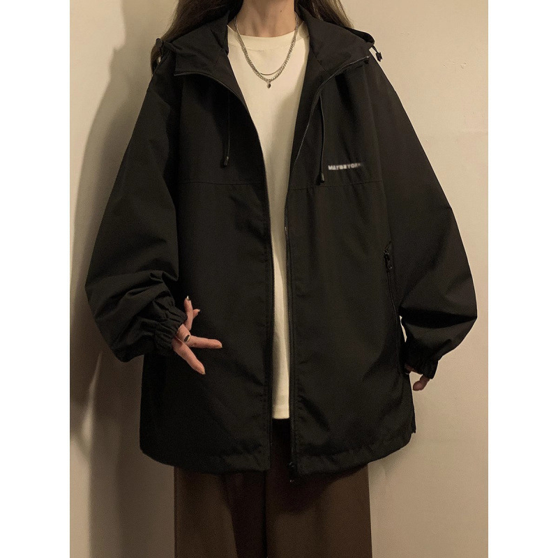 여성용 블랙 후드 재킷, 봄, 가을 스타일, 루즈하고 다재다능한 인 스타일 캐주얼 스포츠 학생 워크 재킷스토어 가기
