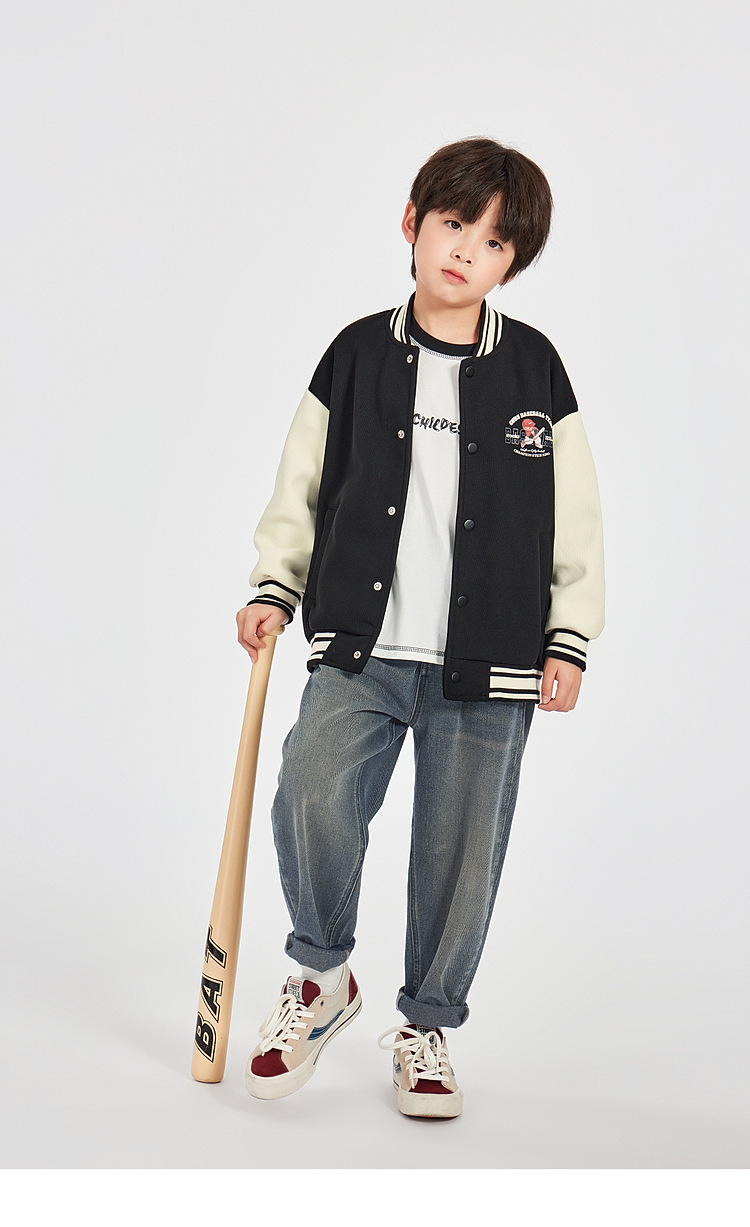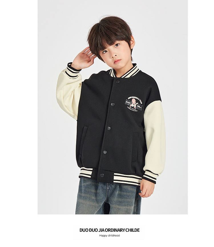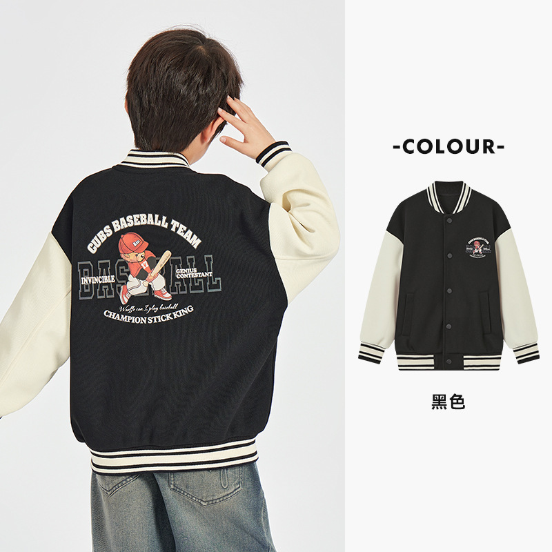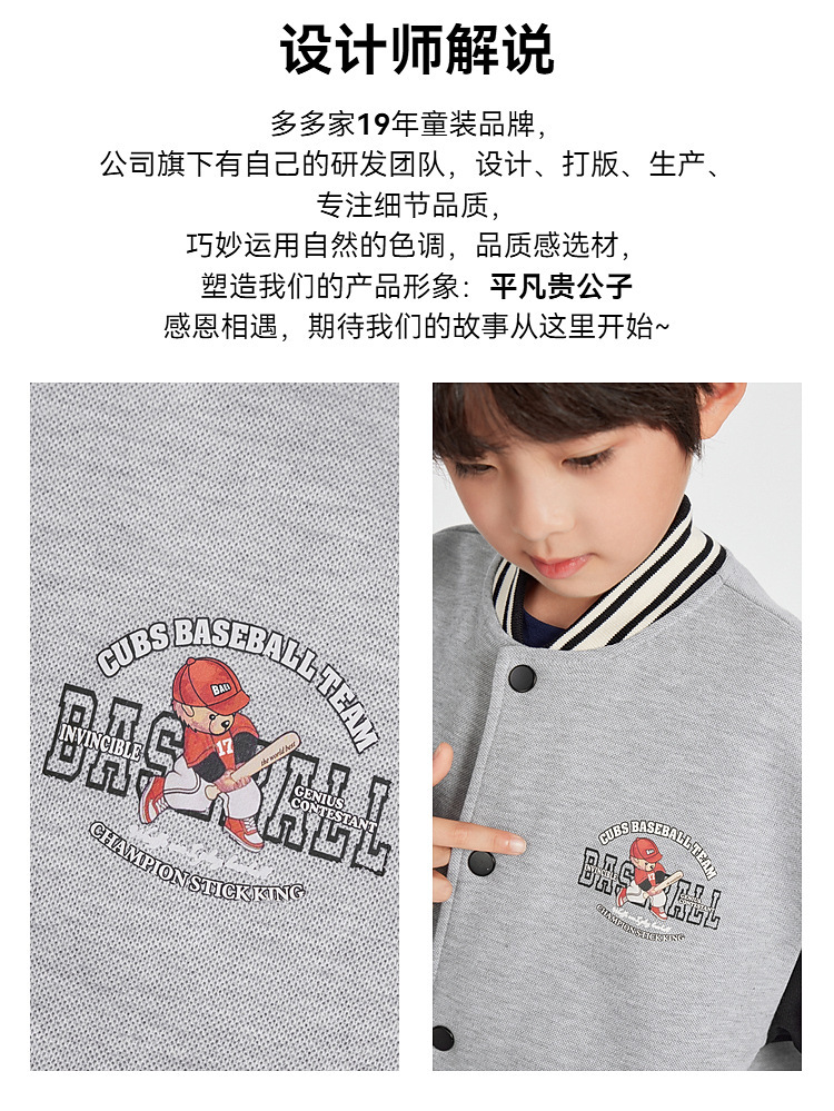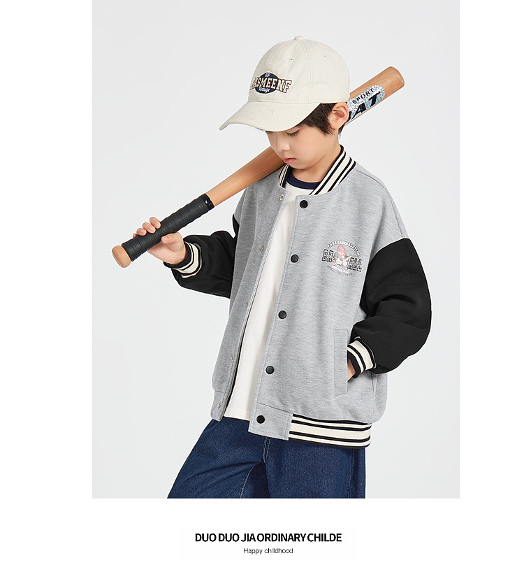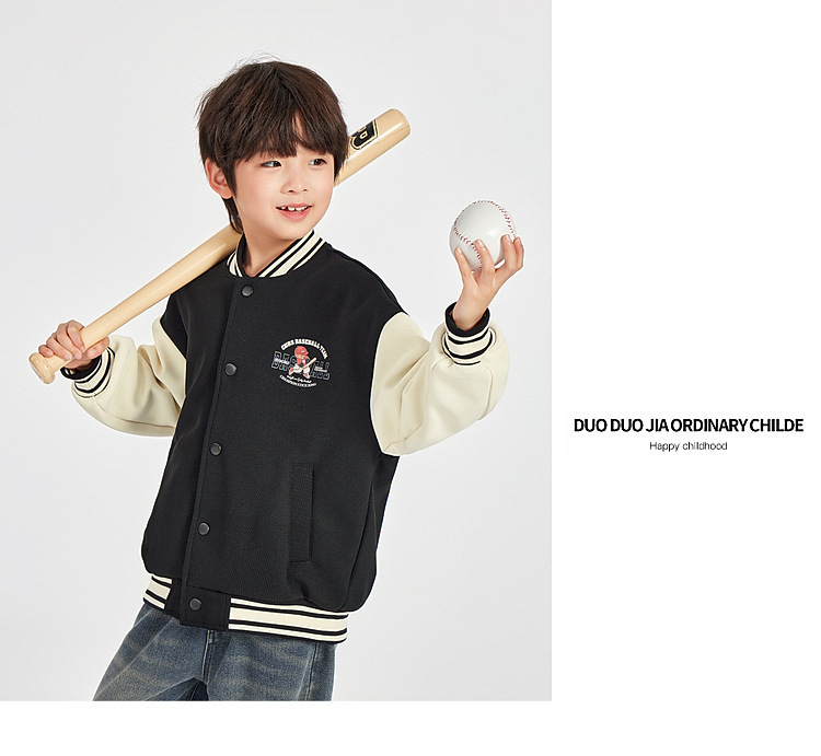 Duojia 소년 야구 유니폼 어린이 봄 재킷 카디건 곰 프린트 캐주얼 재킷 중형 및 대형 아동용 유행상의