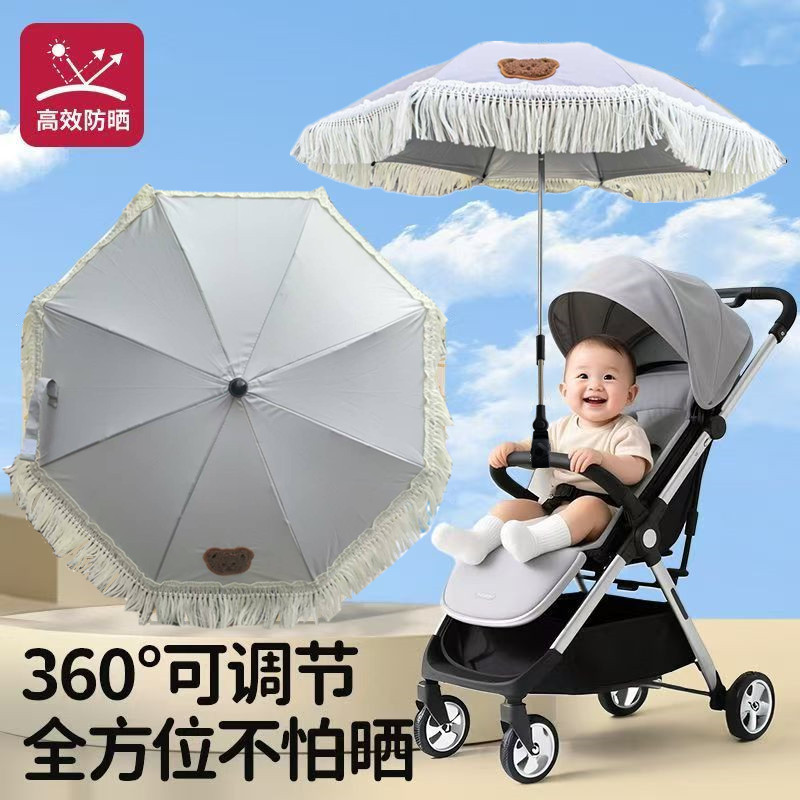 직경 65cm 술 곰 유모차 우산 유모차 클립 우산 야외 강철 파이프 우산 태양 보호 해변 어린이 작은 우산스토어 가기