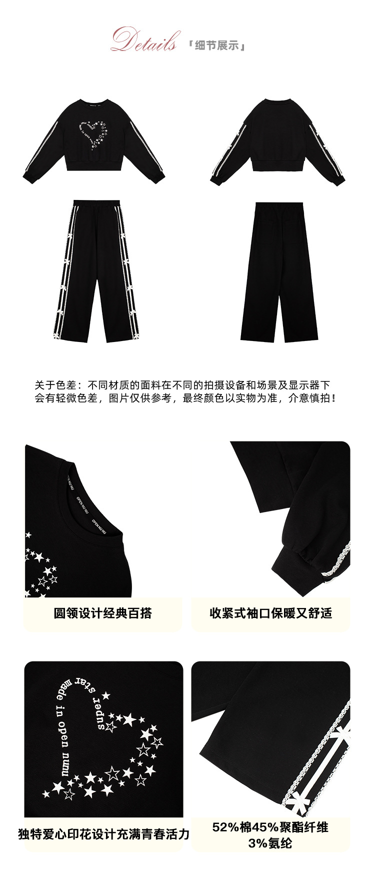 2025 새로운 봄, 가을 소녀 캐주얼 정장 패션 하트 모양의 인쇄 라운드 넥 스웨터 가을 편지 투피스 세트스토어 가기