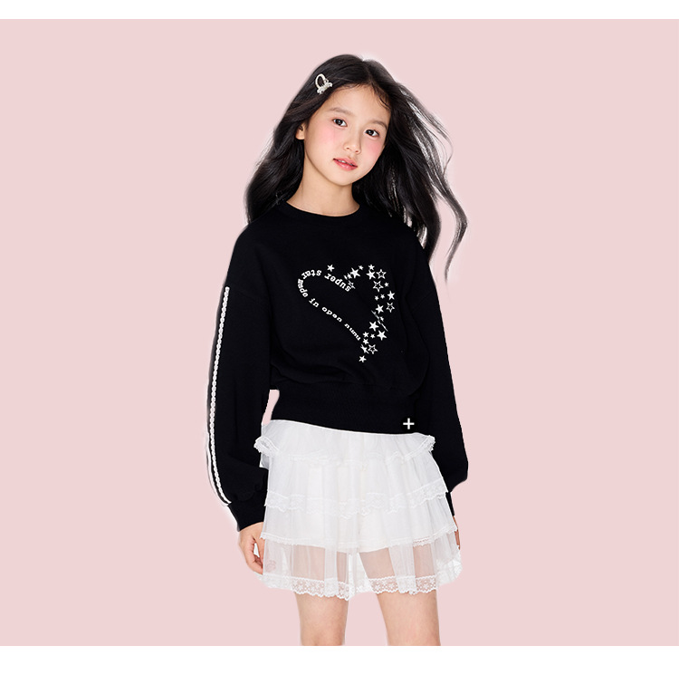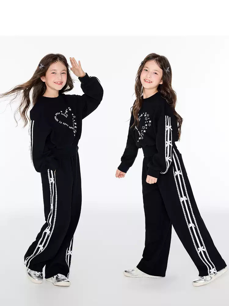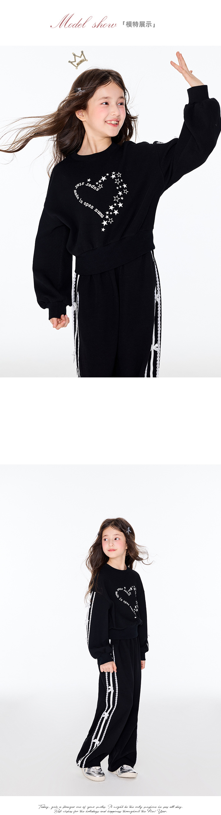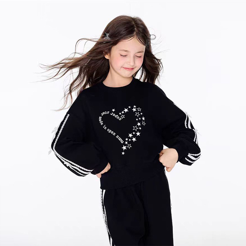 2025 새로운 봄, 가을 소녀 캐주얼 정장 패션 하트 모양의 인쇄 라운드 넥 스웨터 가을 편지 투피스 세트