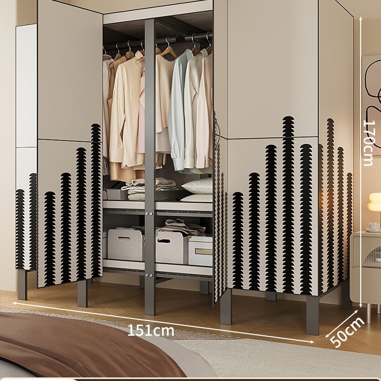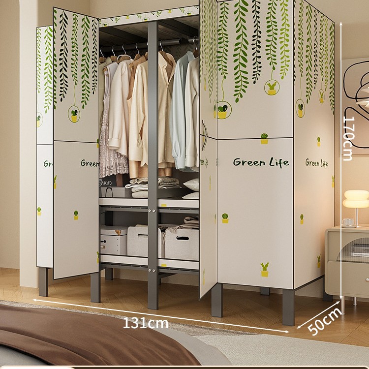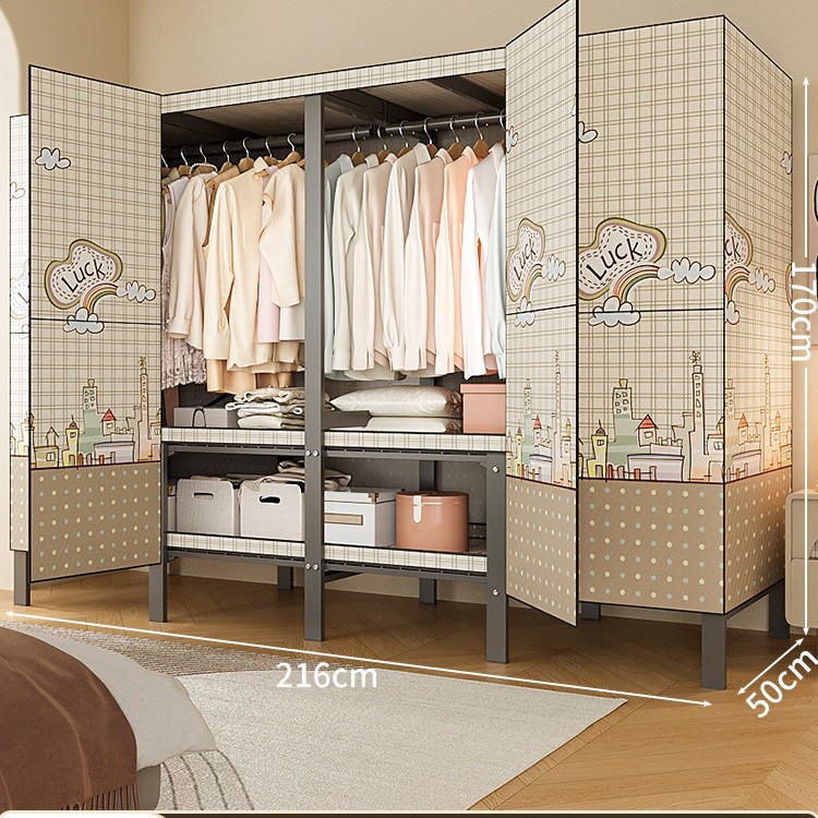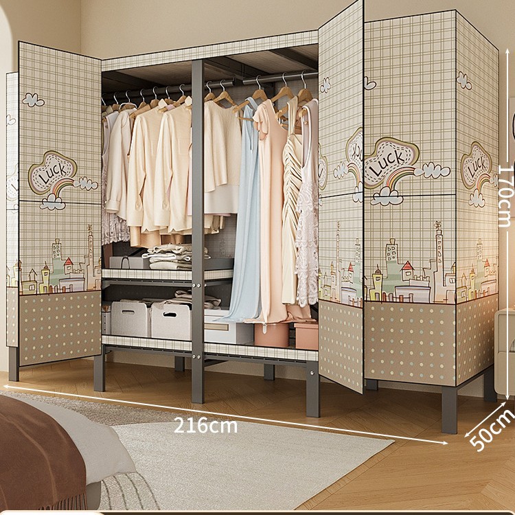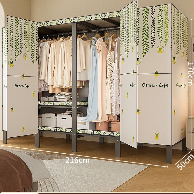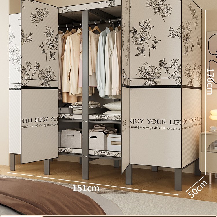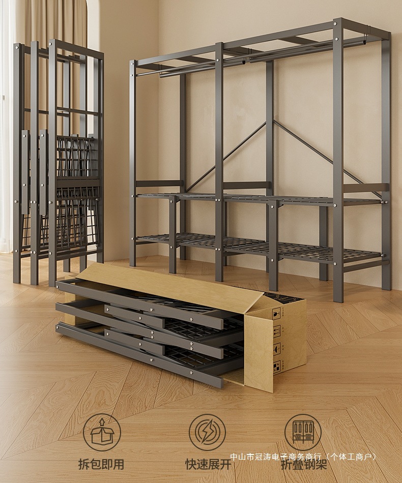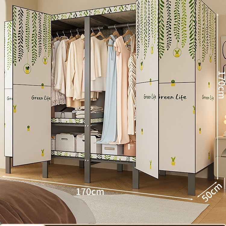 설치가 필요 없는 옷장, 침실, 집 임대, 간단한 조립식 천 옷장, 전체 강철 프레임, 튼튼하고 내구성이 뛰어난 접이식 옷장
