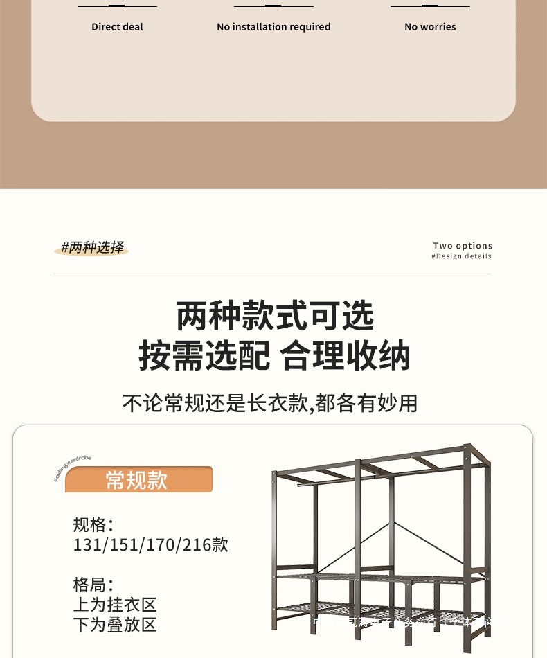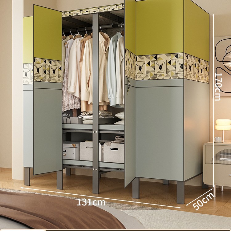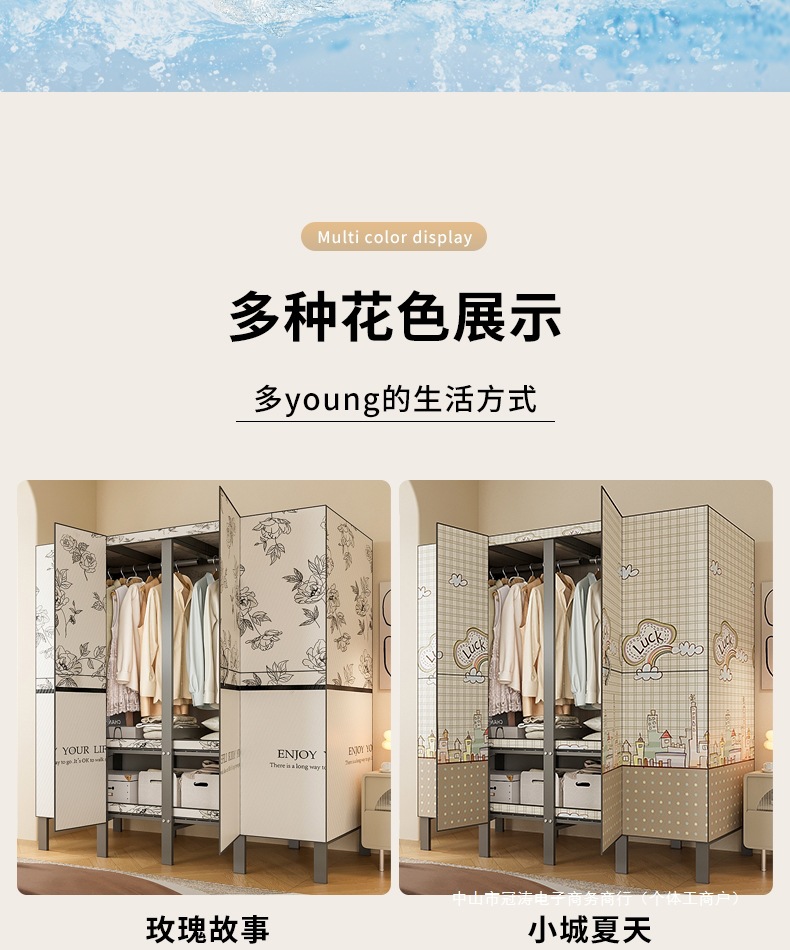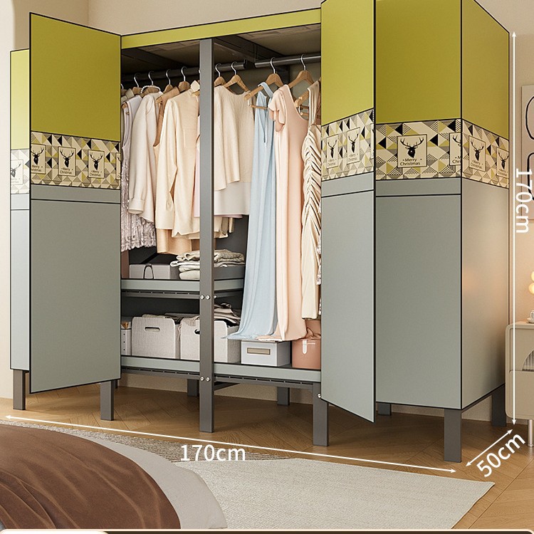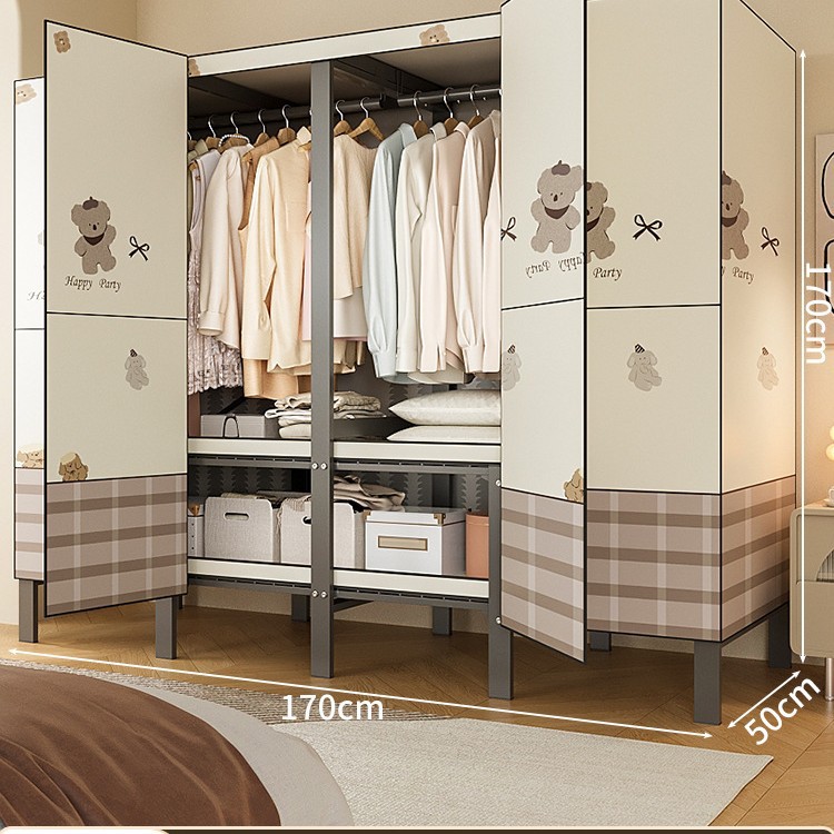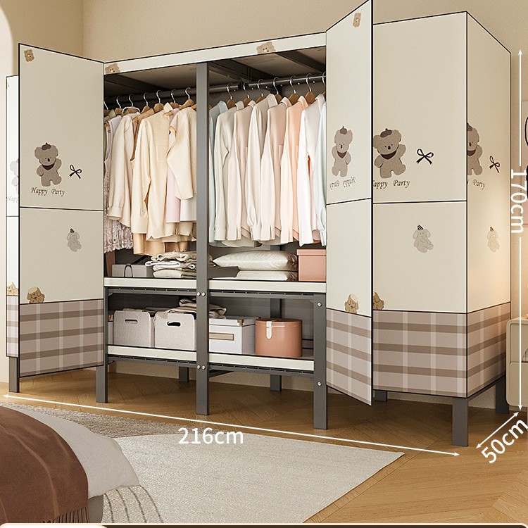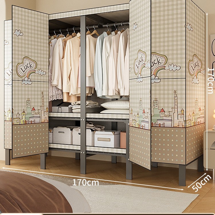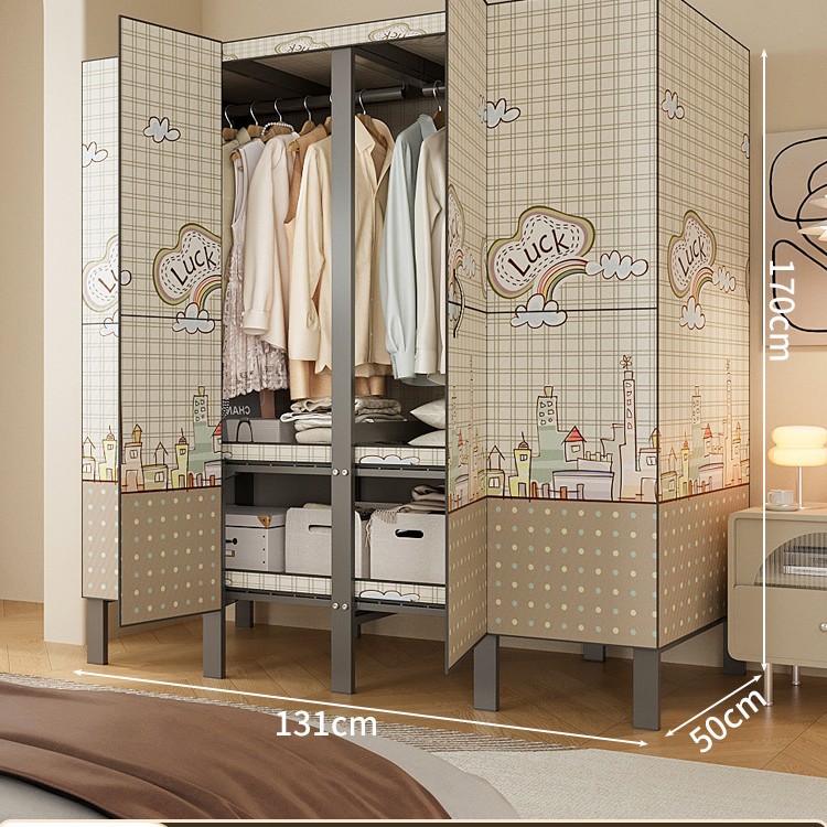 설치가 필요 없는 옷장, 침실, 집 임대, 간단한 조립식 천 옷장, 전체 강철 프레임, 튼튼하고 내구성이 뛰어난 접이식 옷장
