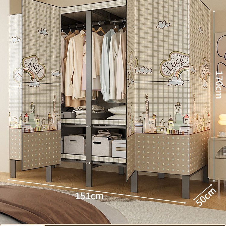 설치가 필요 없는 옷장, 침실, 집 임대, 간단한 조립식 천 옷장, 전체 강철 프레임, 튼튼하고 내구성이 뛰어난 접이식 옷장스토어 가기