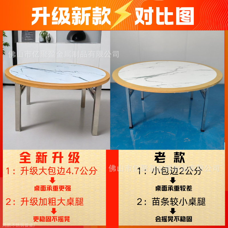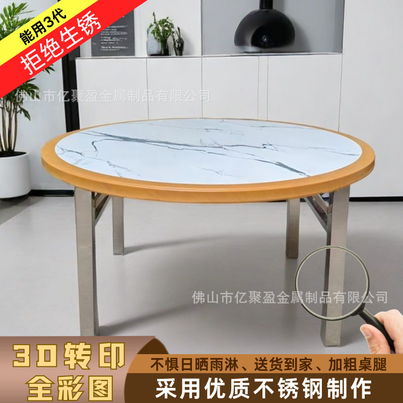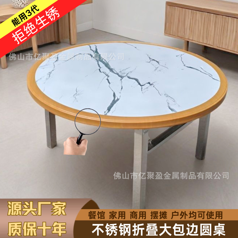 매우 두꺼운 일체형 대형 엣지 스테인레스 스틸 접이식 레스토랑 홈 상업용 호텔 접이식 테이블 호텔 야외 원형 테이블스토어 가기