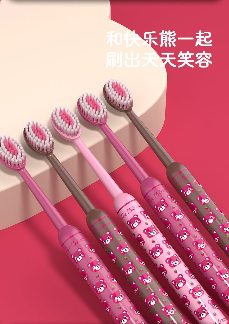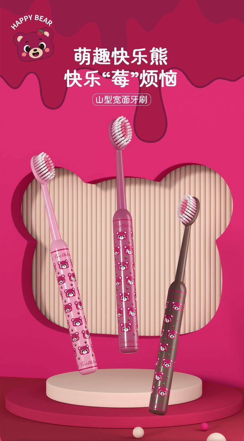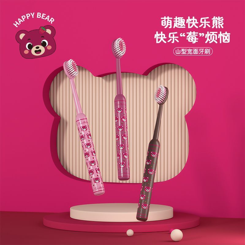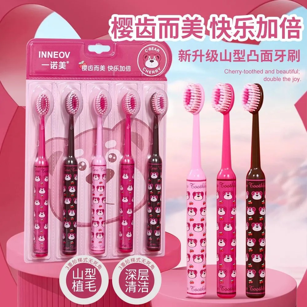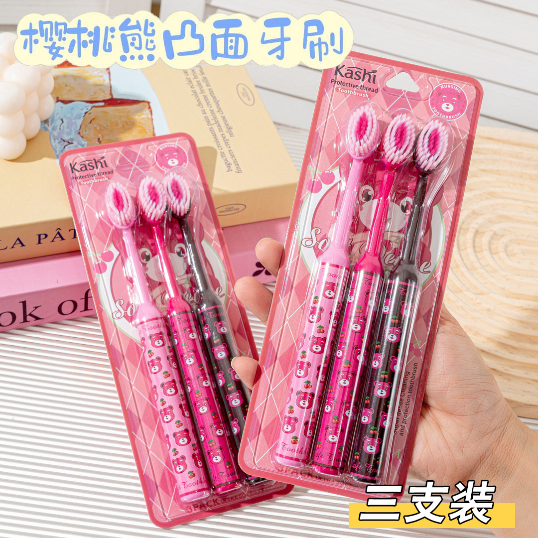 로마 기둥 체리 베어 마운틴 타입 성인용 볼록한 얇고 부드러운 칫솔 3팩, 잇몸 보호, 가정용 소형 헤드 도매