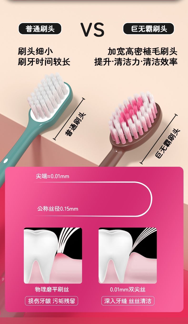 로마 기둥 체리 베어 마운틴 타입 성인용 볼록한 얇고 부드러운 칫솔 3팩, 잇몸 보호, 가정용 소형 헤드 도매스토어 가기