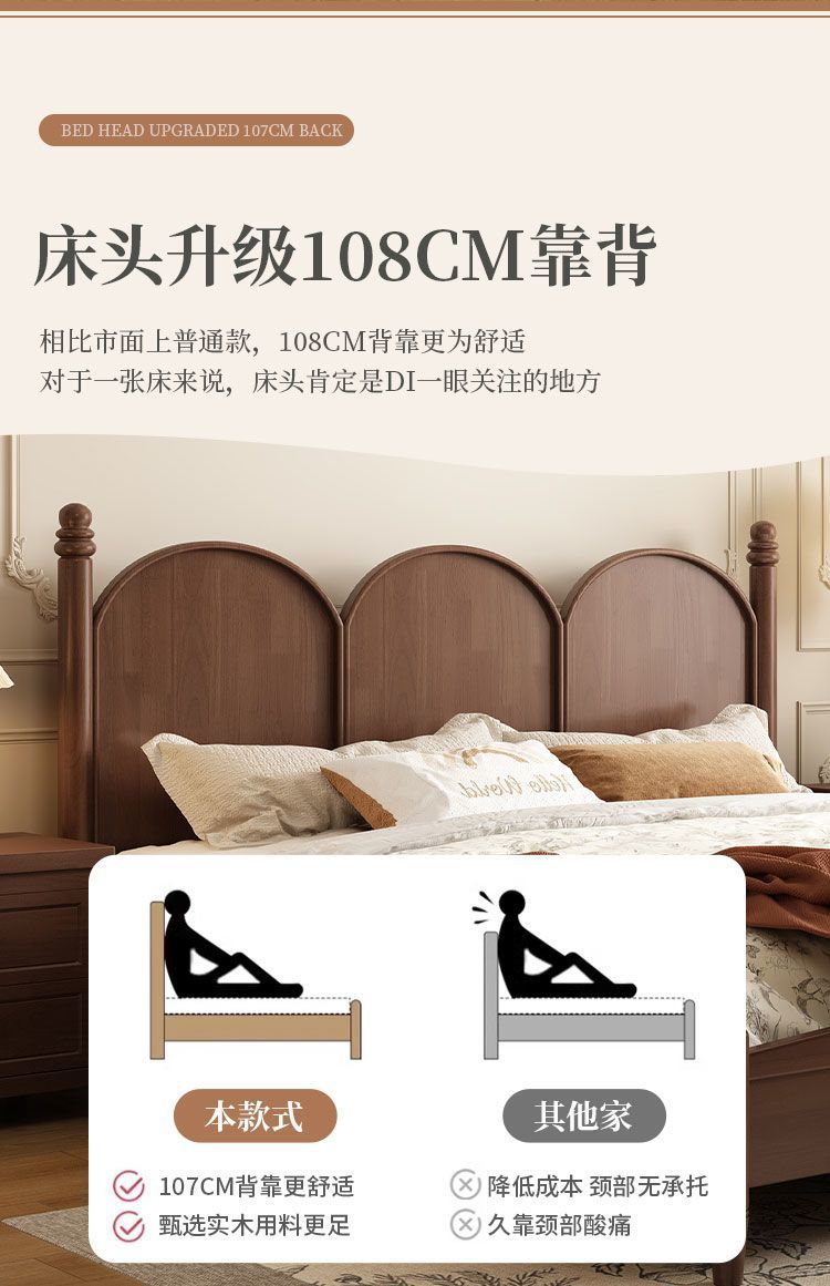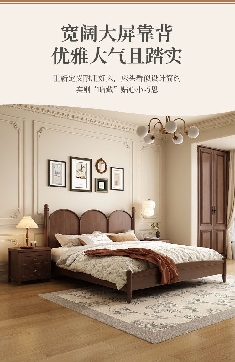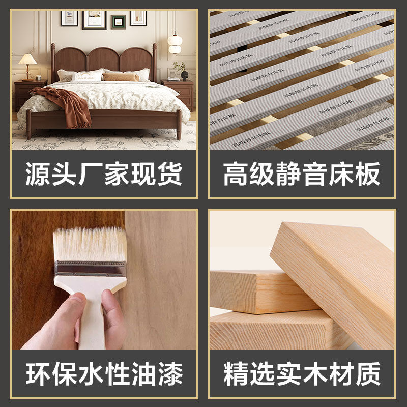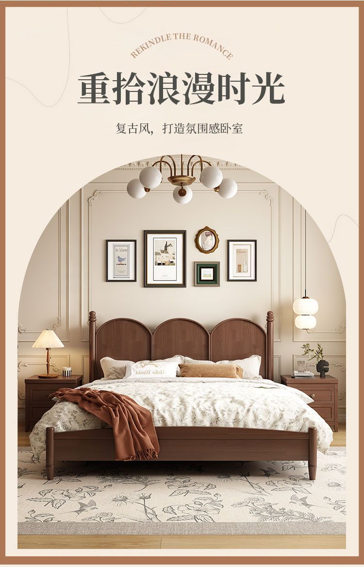 레트로 아메리칸 원목 침대 더블 침대 1.68m 모던 심플 중세 스타일 아파트 임대 하우스 홈스테이 침대스토어 가기