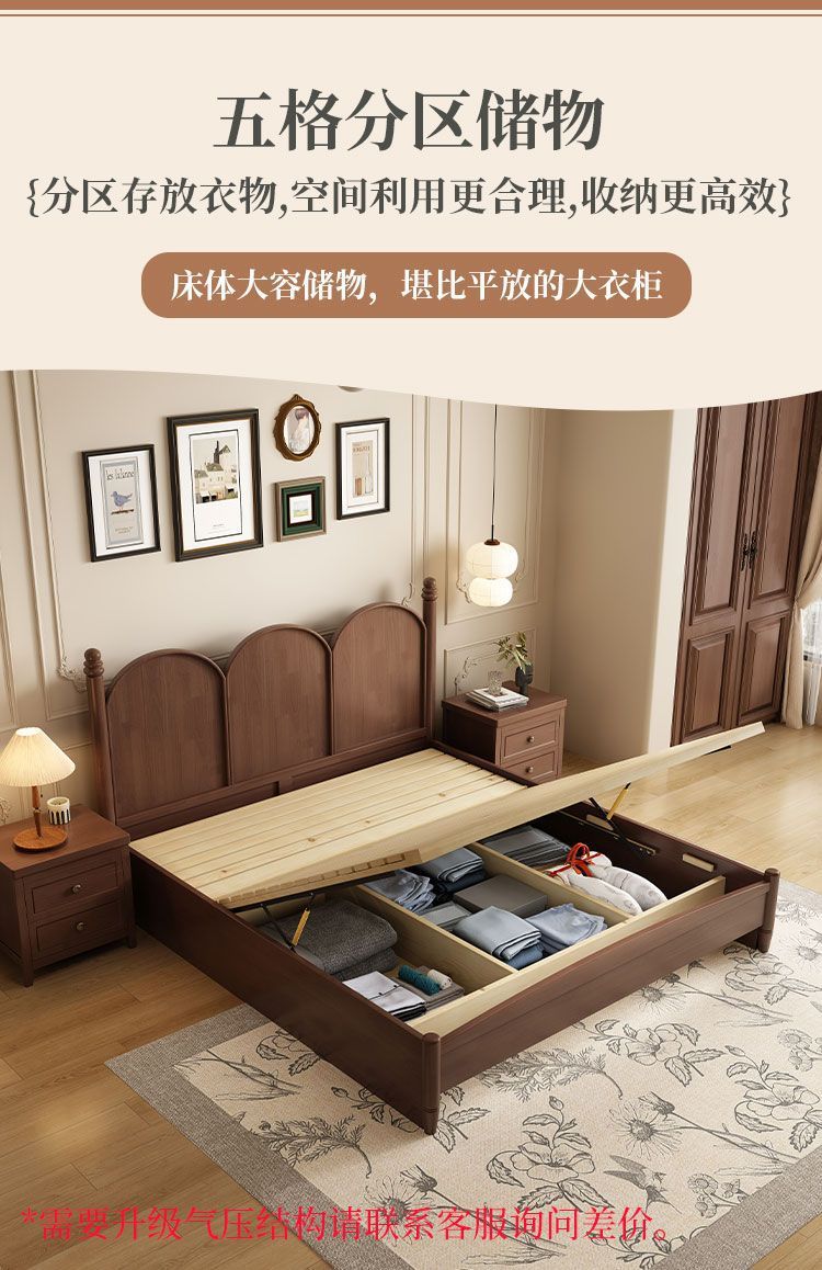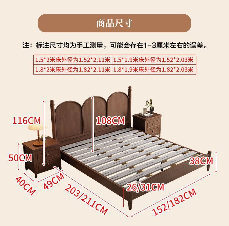레트로 아메리칸 원목 침대 더블 침대 1.68m 모던 심플 중세 스타일 아파트 임대 하우스 홈스테이 침대