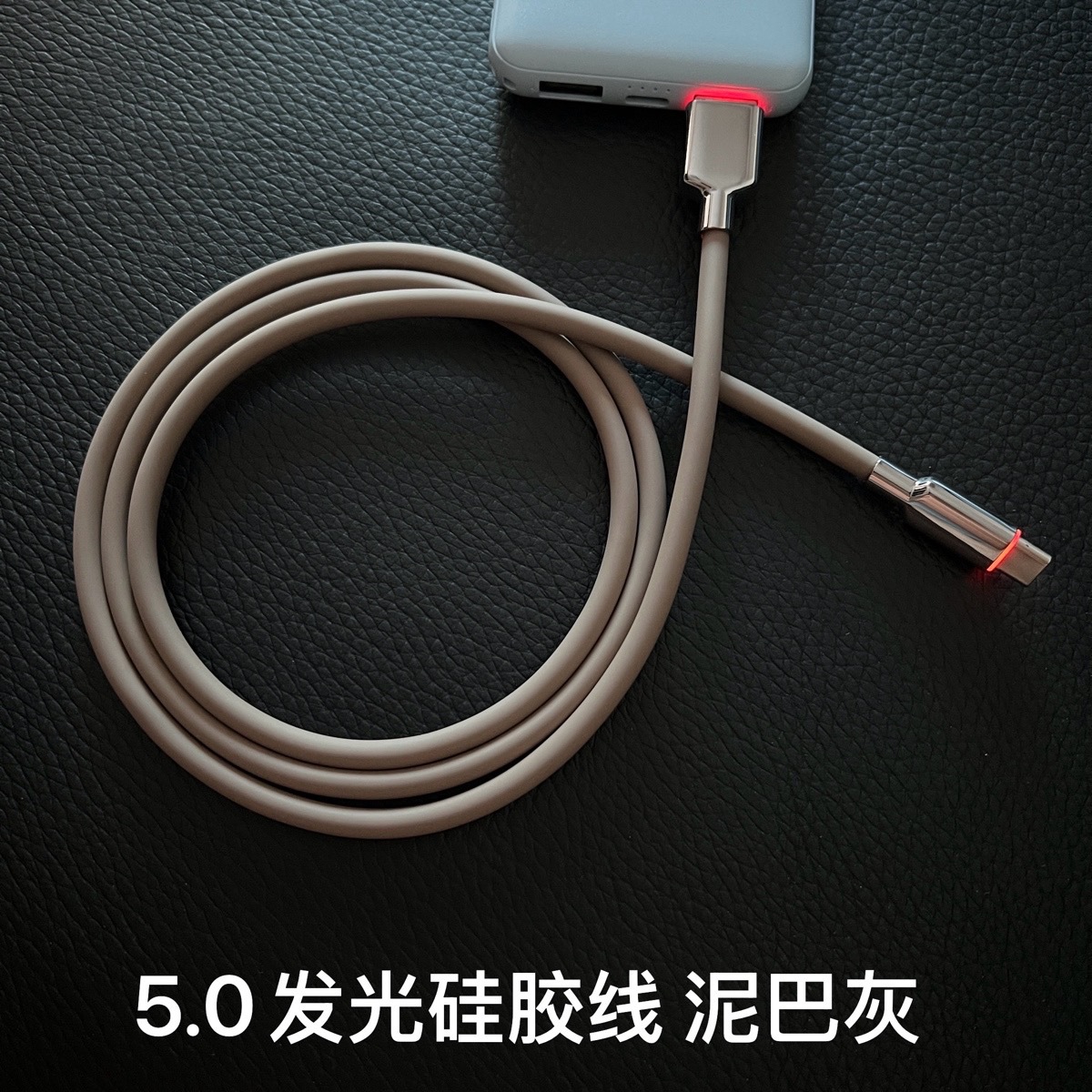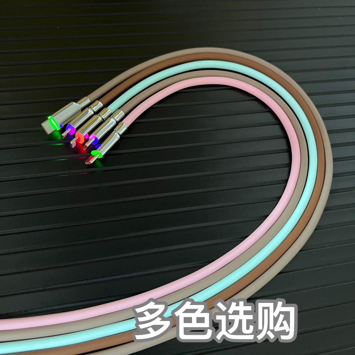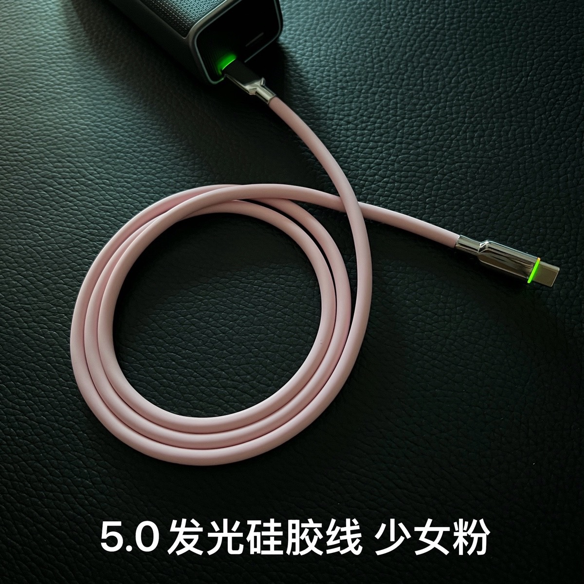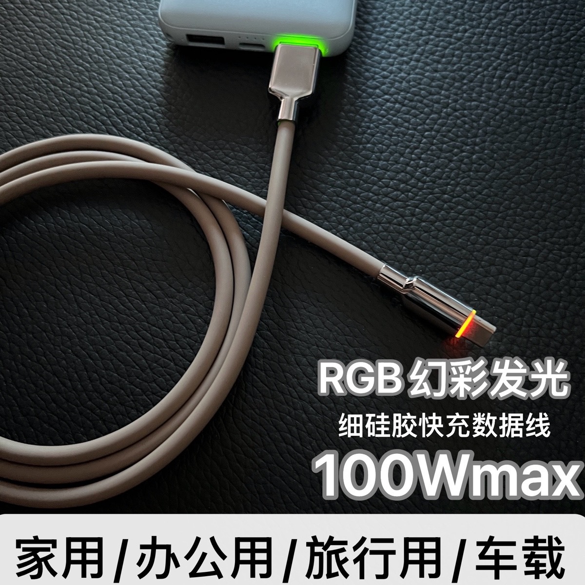 RGB 발광 5.0mm 액체 연질 실리콘 데이터 케이블 Huawei Apple 15/16 휴대폰에 적합한 100W 고속 충전 케이블