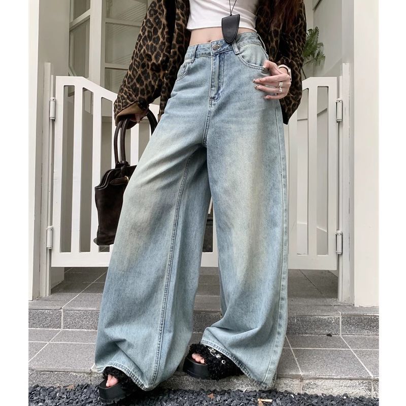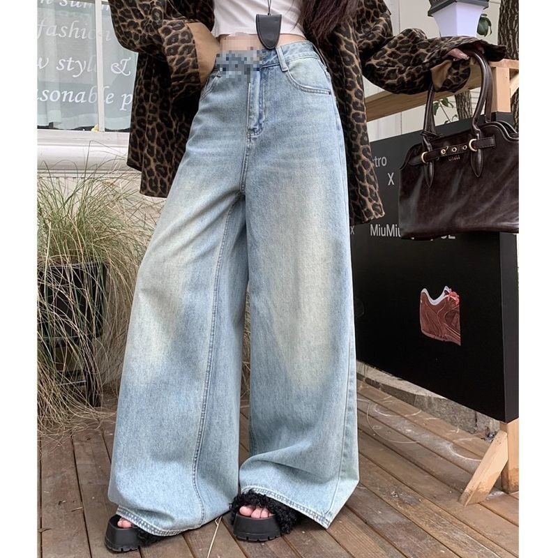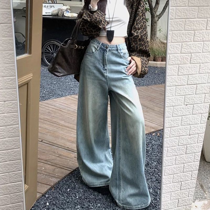 가을 핫걸을 위한 하이 스트리트 하이웨이스트 슬리밍 바닥 길이 팬츠, 여성용 다용도 디자인 워싱 와이드 레그 레트로 청바지, 새로운 스타일스토어 가기