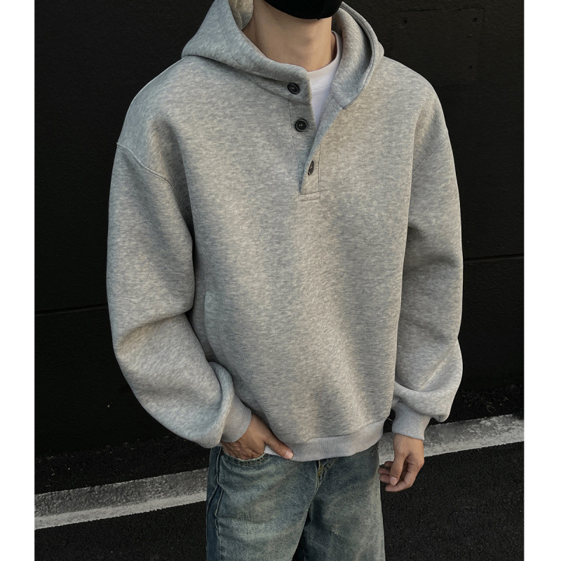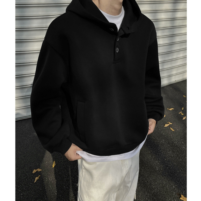 가을 틈새 트렌디 브랜드 루즈한 게으른 스타일 커플 재킷 여성과 남성을 위한 헤비급 더블 레이어 칼라 버튼 후드 벨벳 스웨트셔츠
