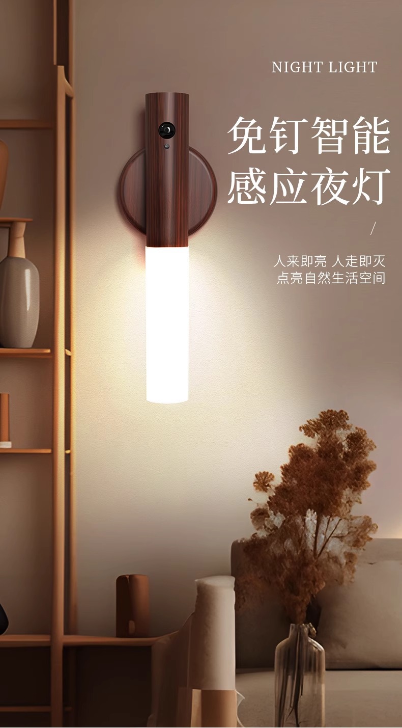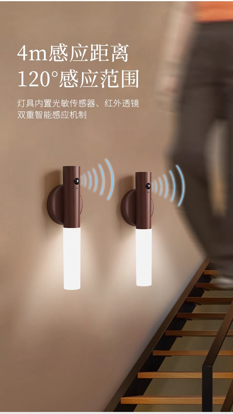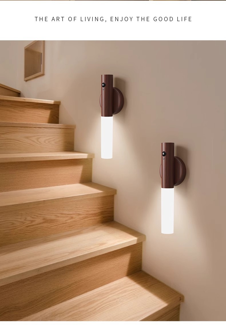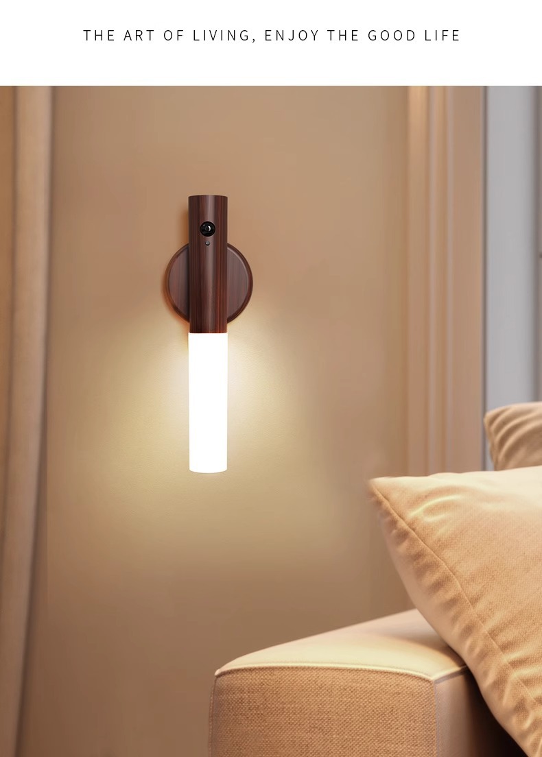 집에 들어오는 사람들을 위한 나무 막대 감지등, 스마트 인체 감지 야간 조명, 충전식 현관 조명, 침대 옆 벽 조명