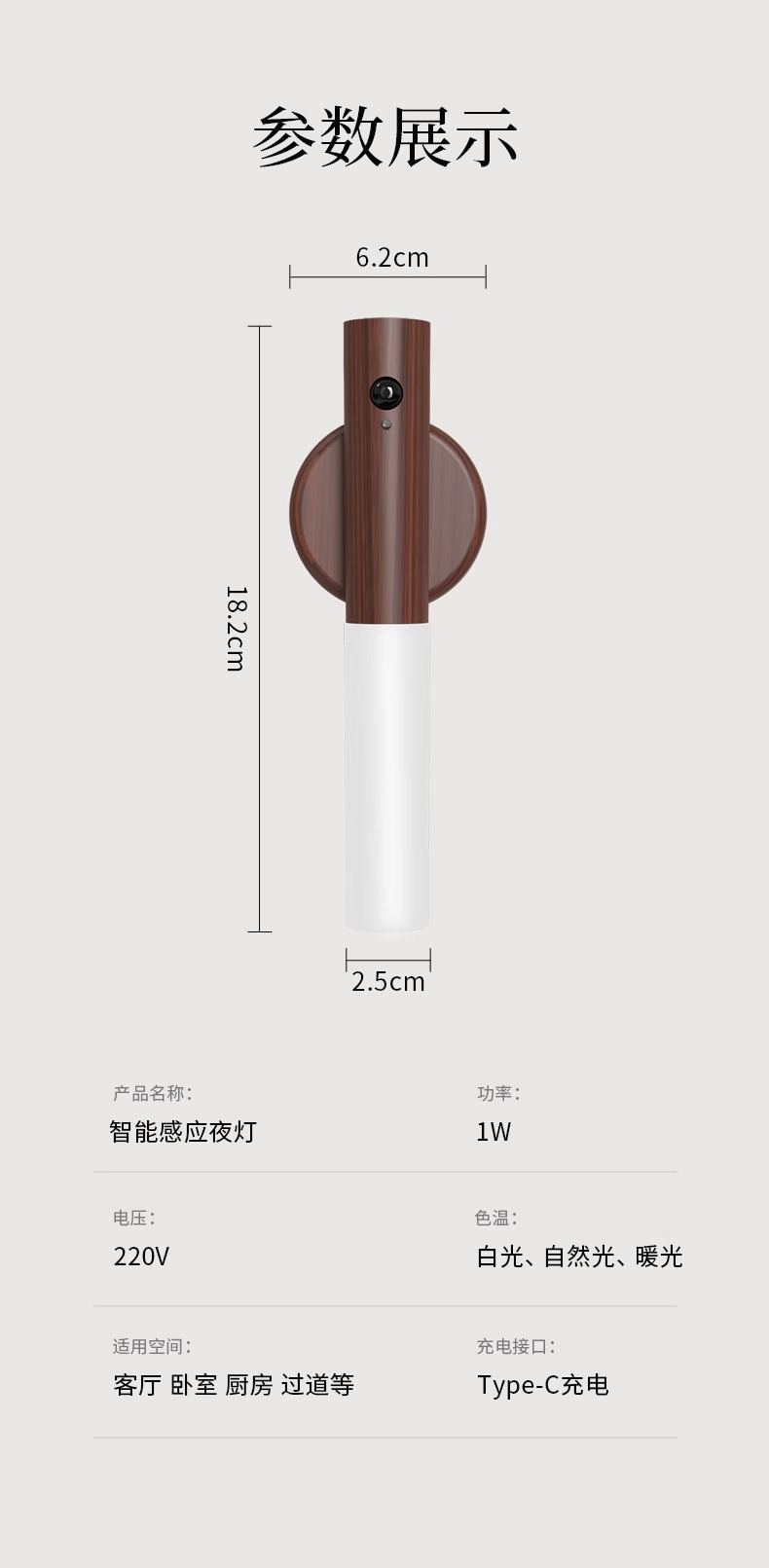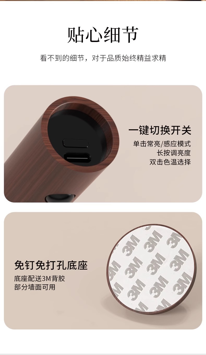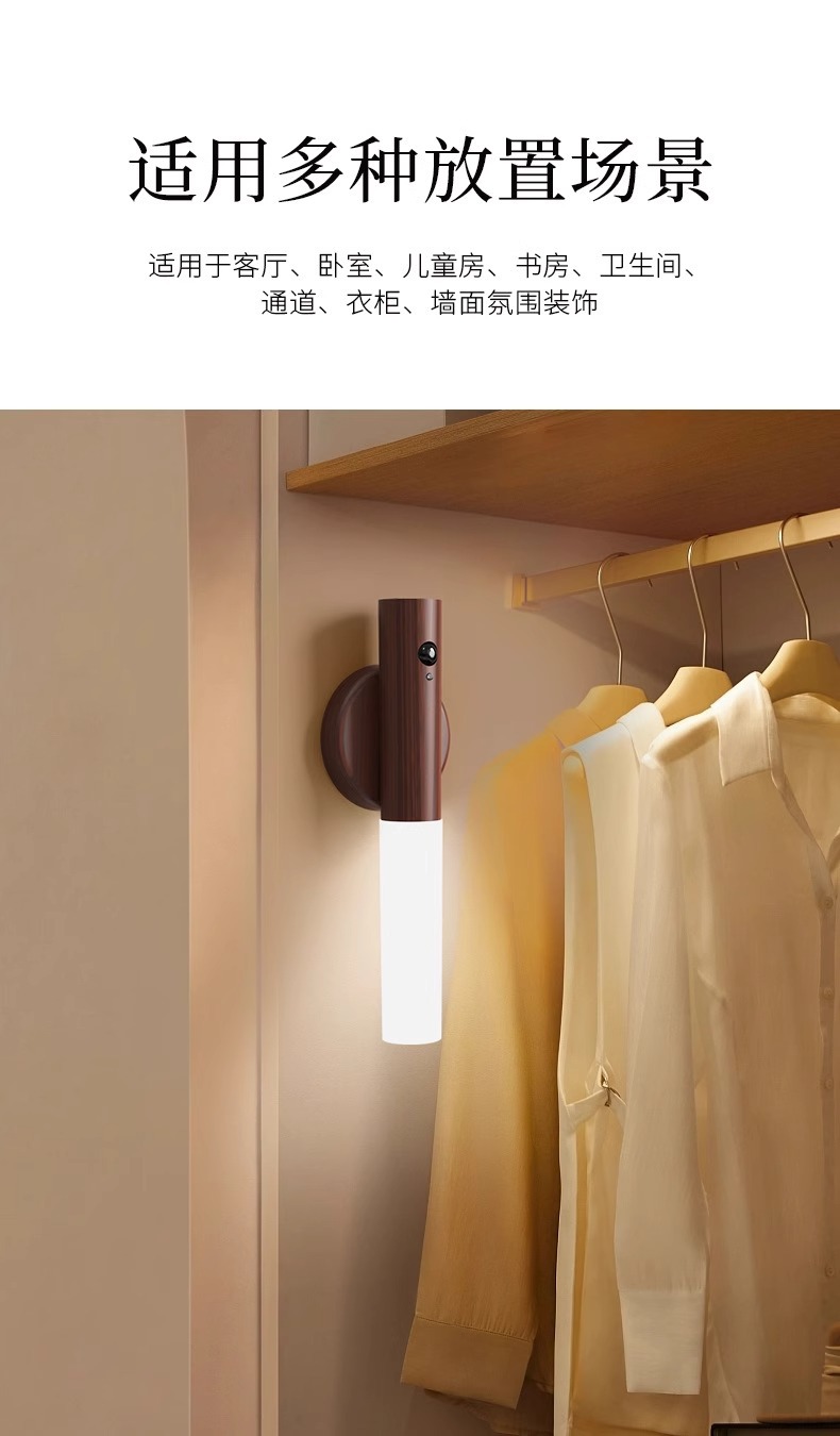 집에 들어오는 사람들을 위한 나무 막대 감지등, 스마트 인체 감지 야간 조명, 충전식 현관 조명, 침대 옆 벽 조명