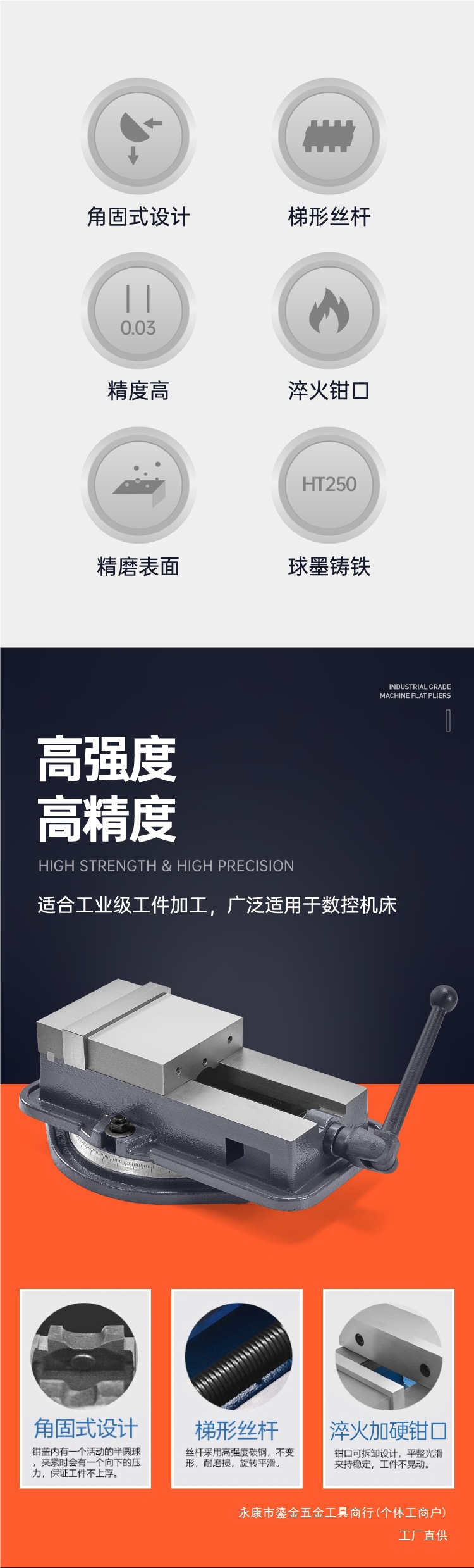 Taiquan 각도 고정형 평구치, 정밀 바이스, CNC 중부하 밀링머신용 특수 평구치, 6inch 금도금