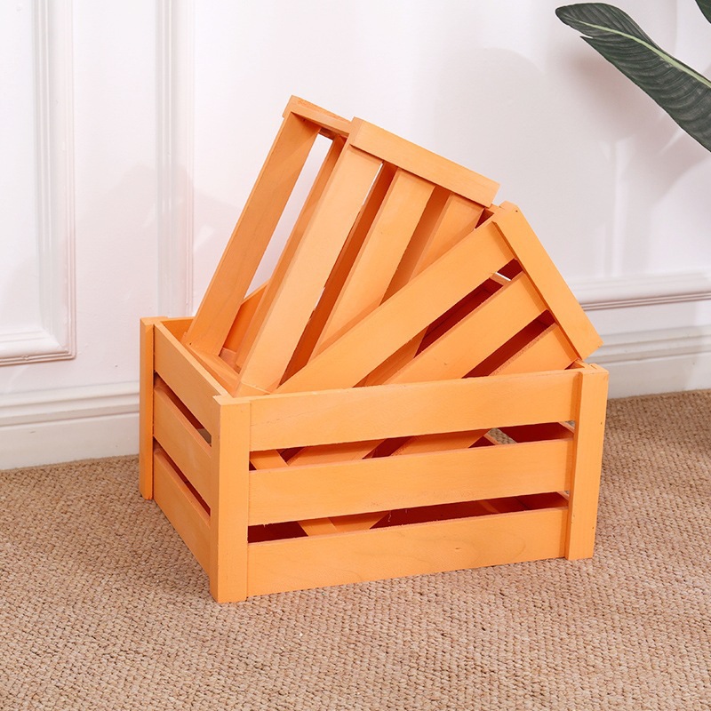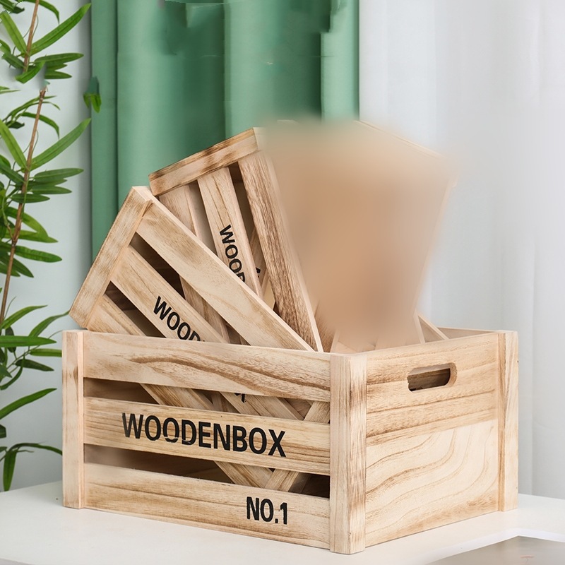 단단한 나무 프레임 상자 보관 나무 상자 슈퍼마켓 디스플레이 직사각형 나무 상자 장식 소품 나무 바구니 사용자 정의
