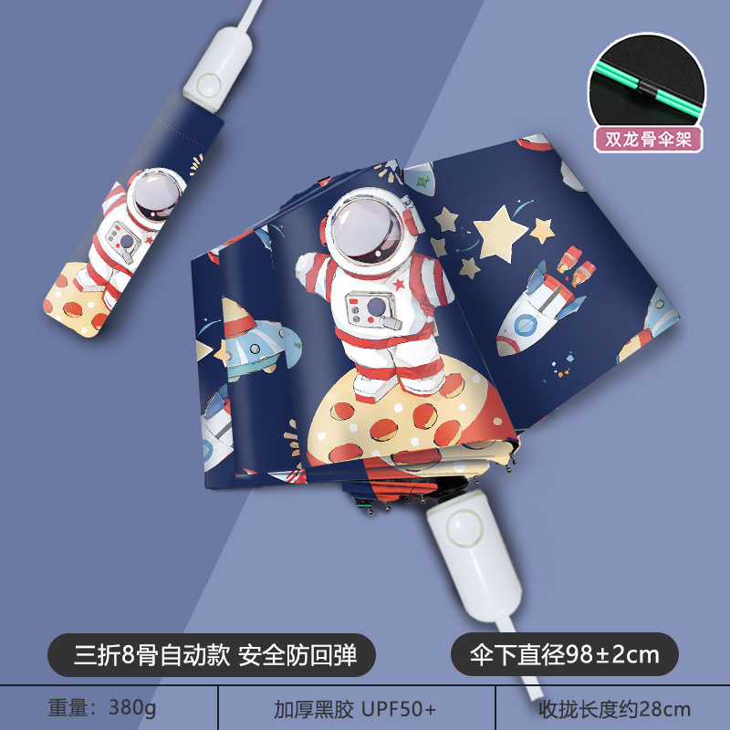 8본 자동 우산, 블랙 코팅, 햇빛과 비 모두를 막아주는 자외선 차단 우산, 시나몬롤 캐릭터, 어린이용, 도매, 자외선 차단스토어 가기