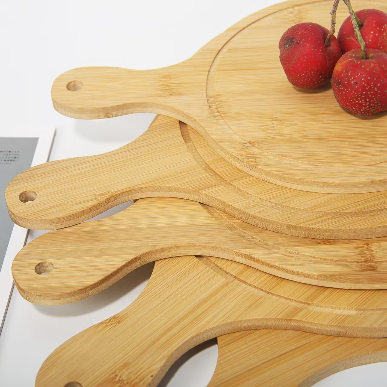 스팟 나무 원형 피자 트레이 빵 디저트 트레이 손잡이가있는 단단한 나무 스테이크 트레이 스시 케이크 트레이