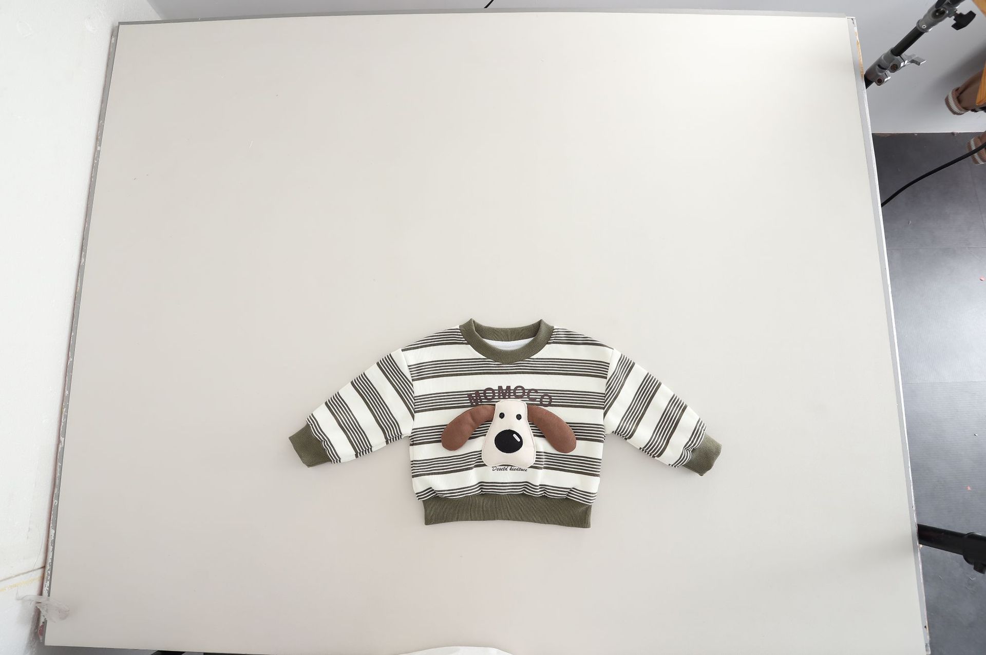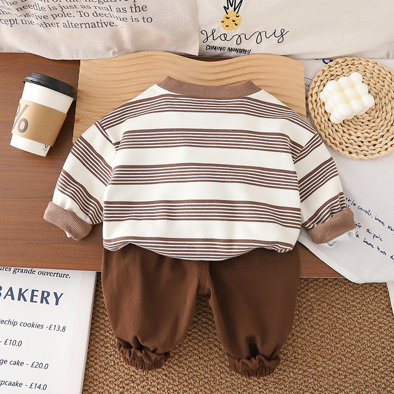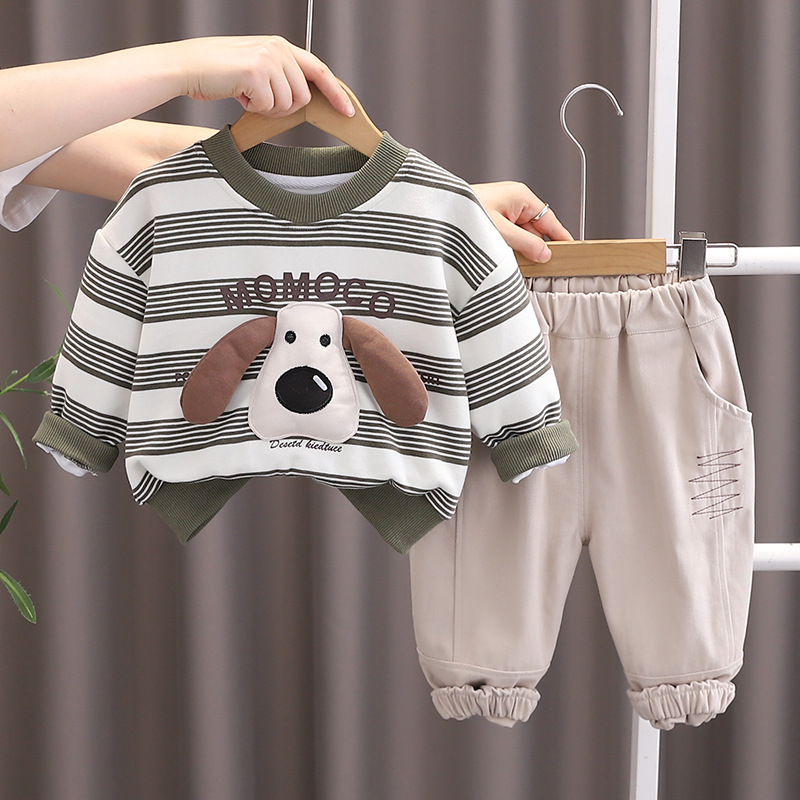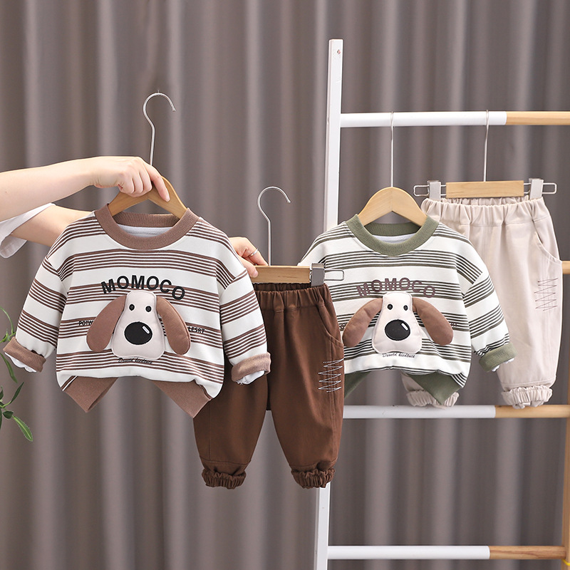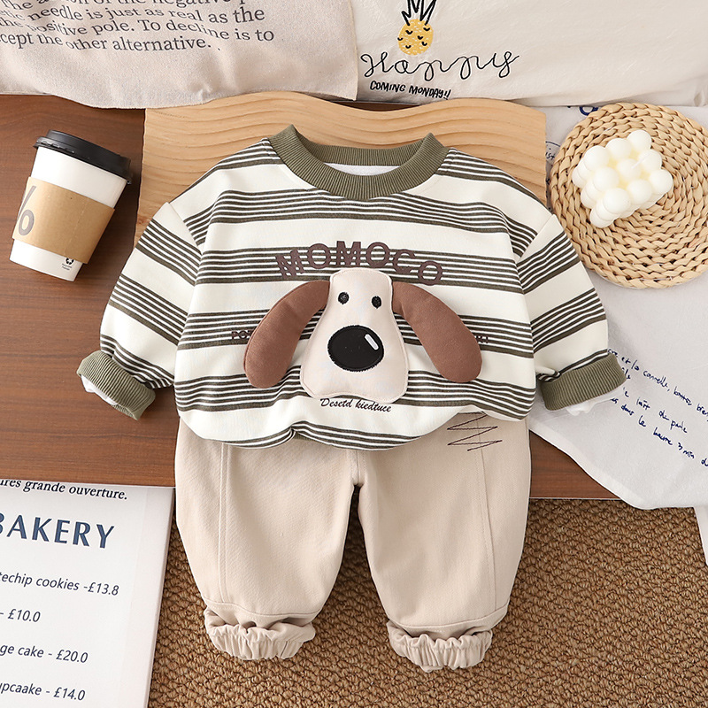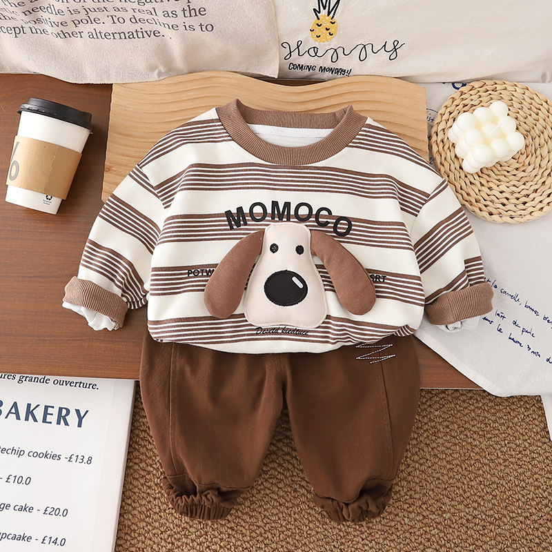 2025 겨울 신작 어린이 라운드 넥 스트라이프 한국 스타일 아동 의류 강아지 펜던트 투피스 세트 소스 공장 도매스토어 가기