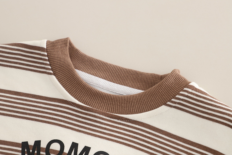 2025 겨울 신작 어린이 라운드 넥 스트라이프 한국 스타일 아동 의류 강아지 펜던트 투피스 세트 소스 공장 도매