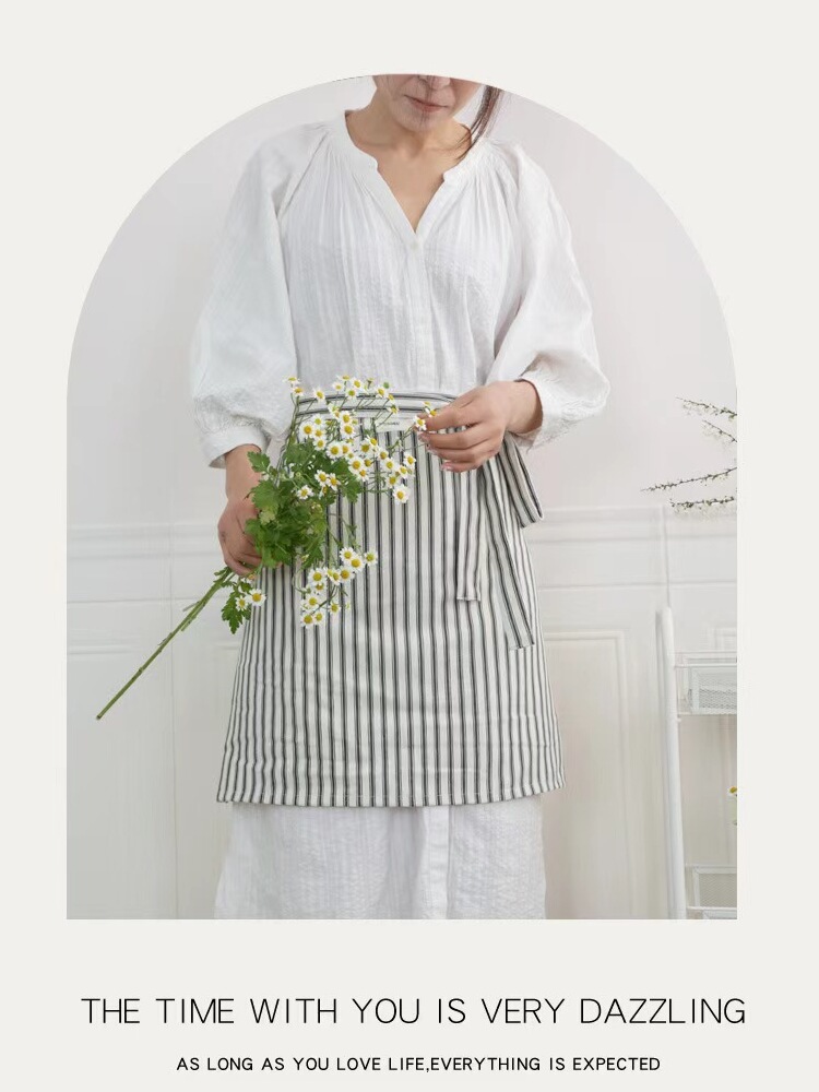 스트라이프 하프 길이 레이스 업 베이킹 앞치마 코튼 주방 가사 문학 커피 숍 꽃무늬 방오 앞치마스토어 가기