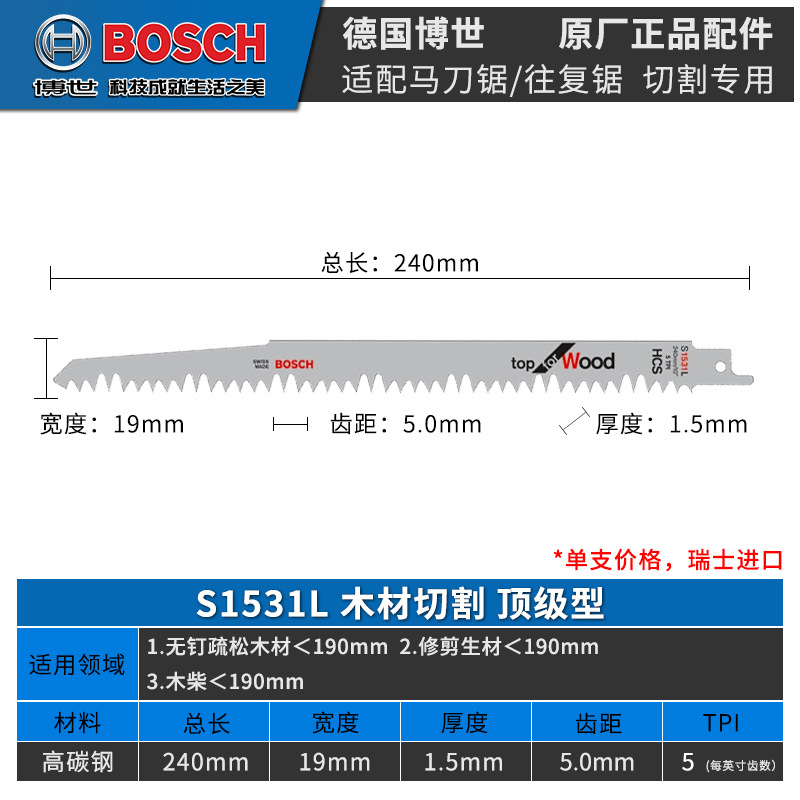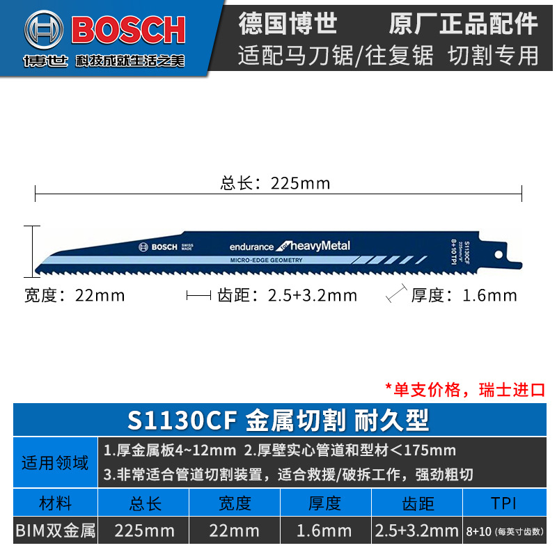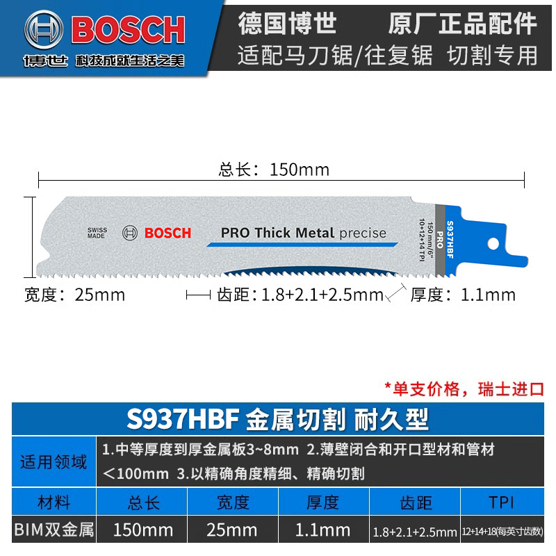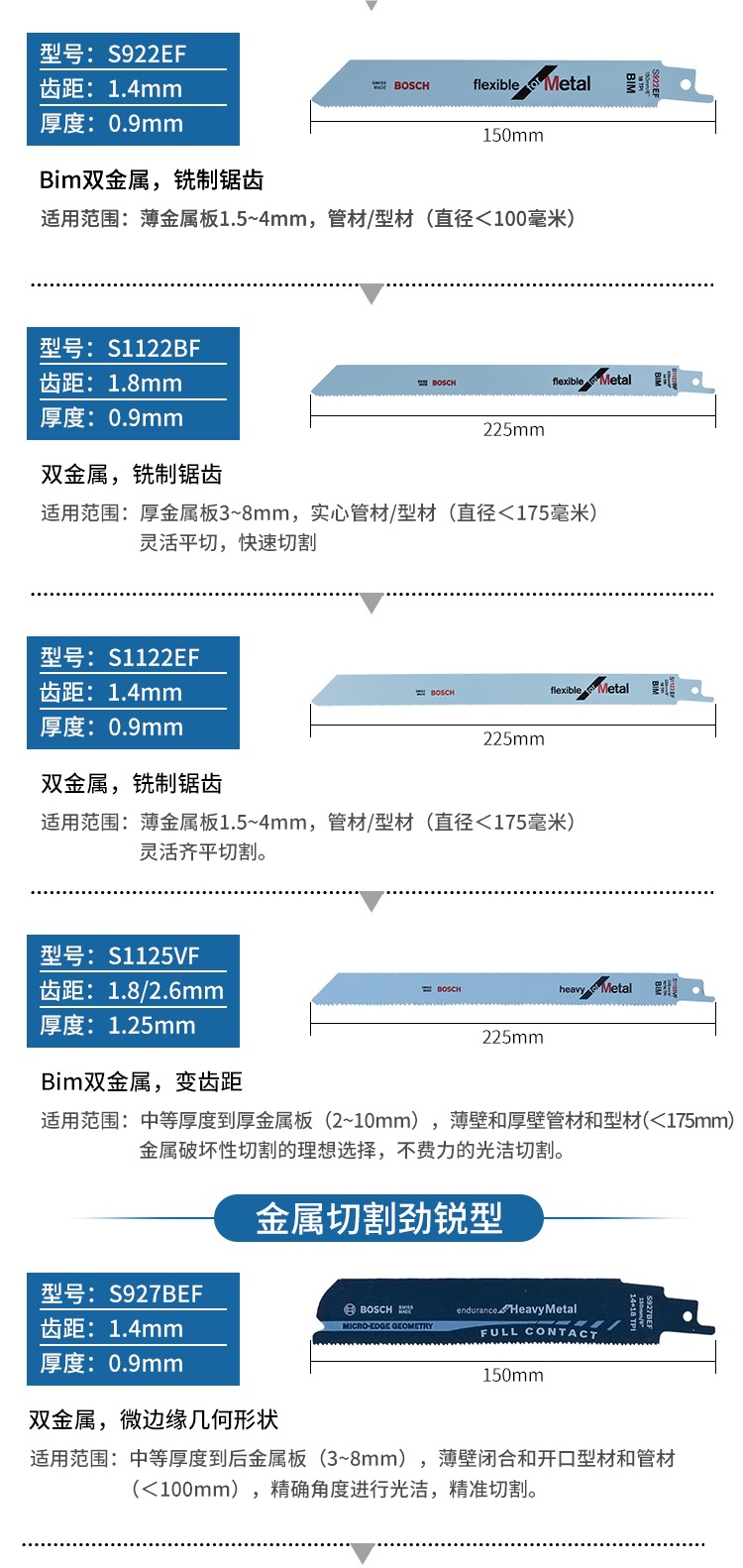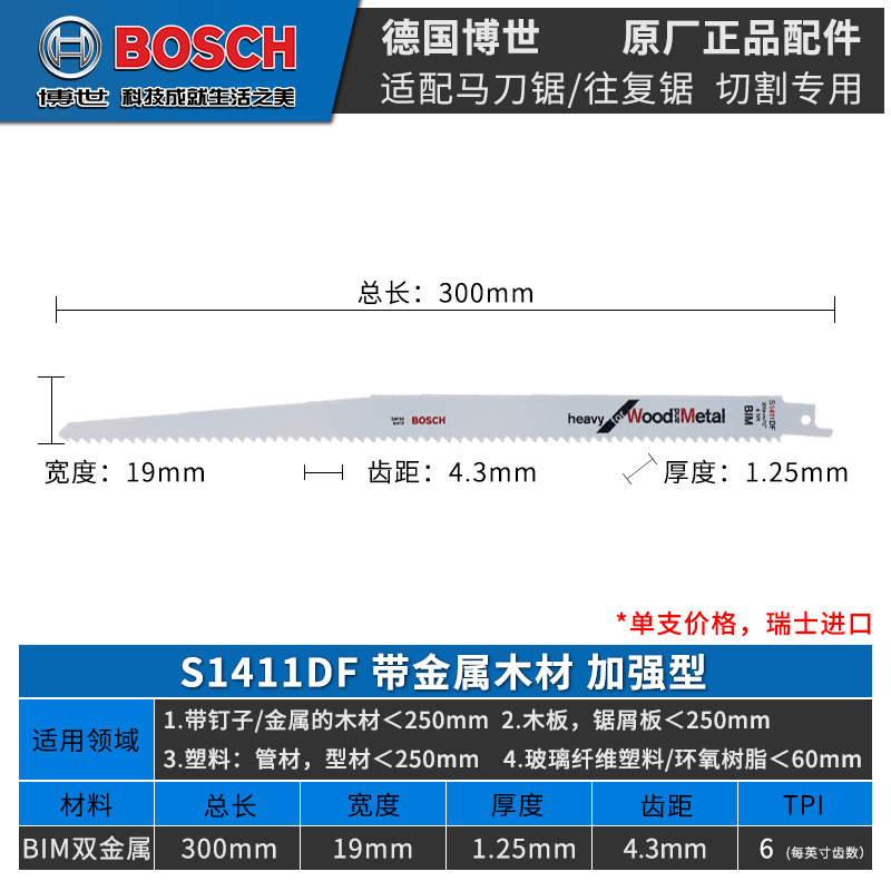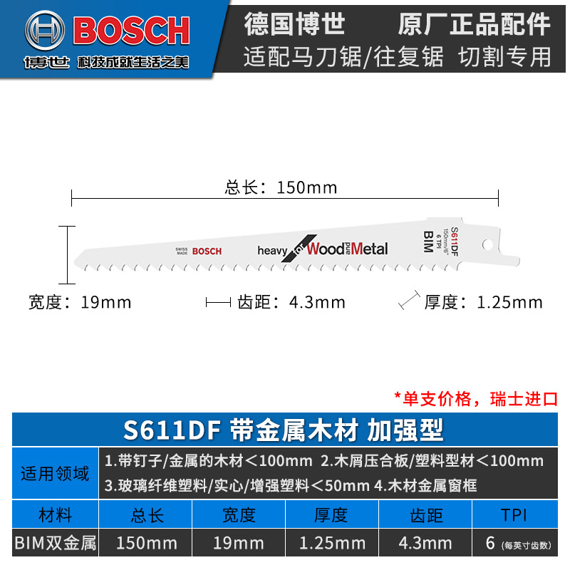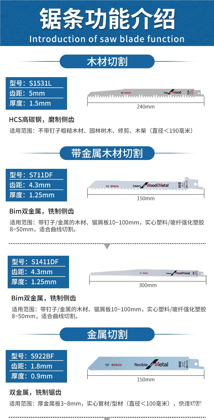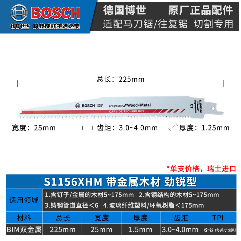 보쉬 마도우 톱날 왕복톱날 전동 목재 합금 드릴톱날 두꺼운 금속 절단용