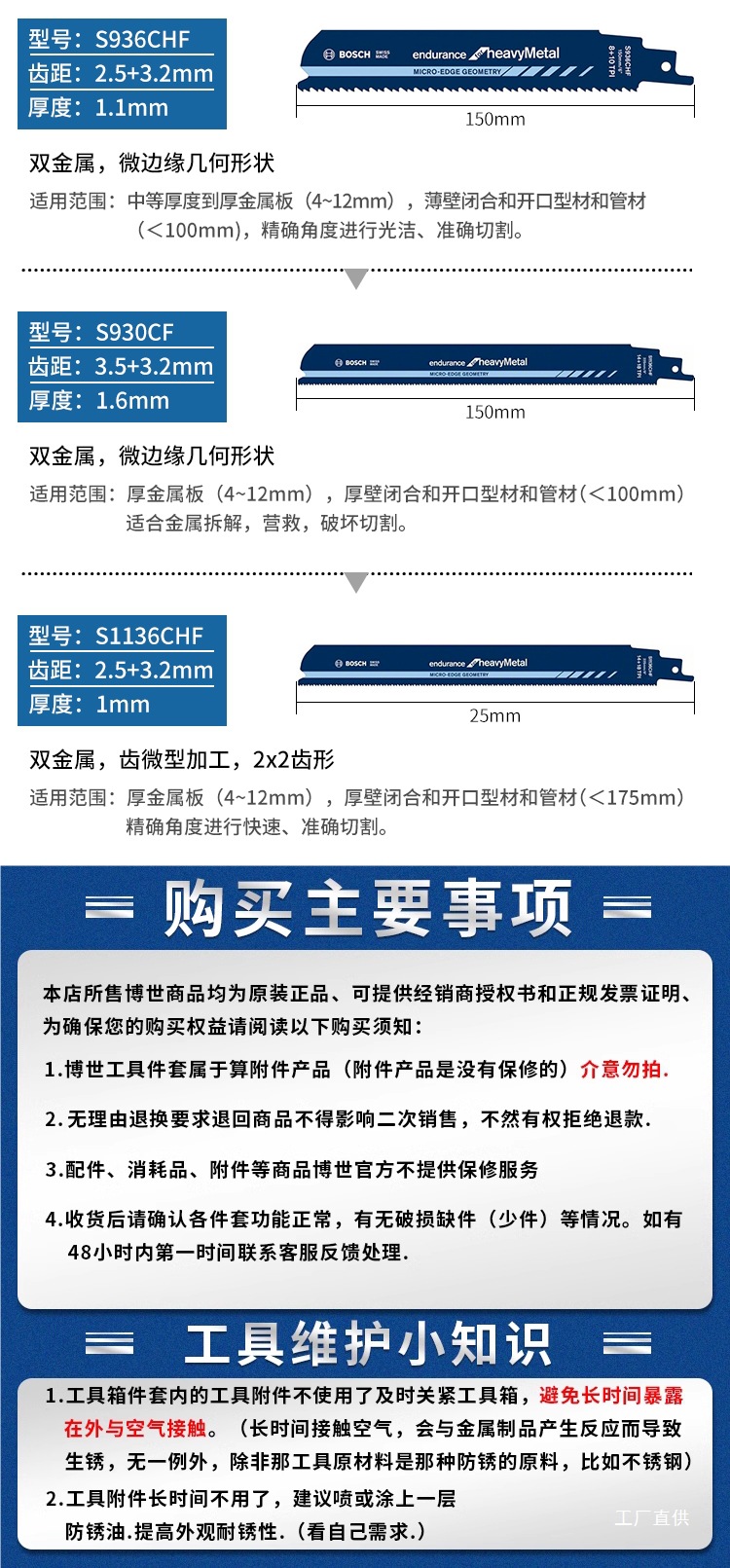 보쉬 마도우 톱날 왕복톱날 전동 목재 합금 드릴톱날 두꺼운 금속 절단용스토어 가기