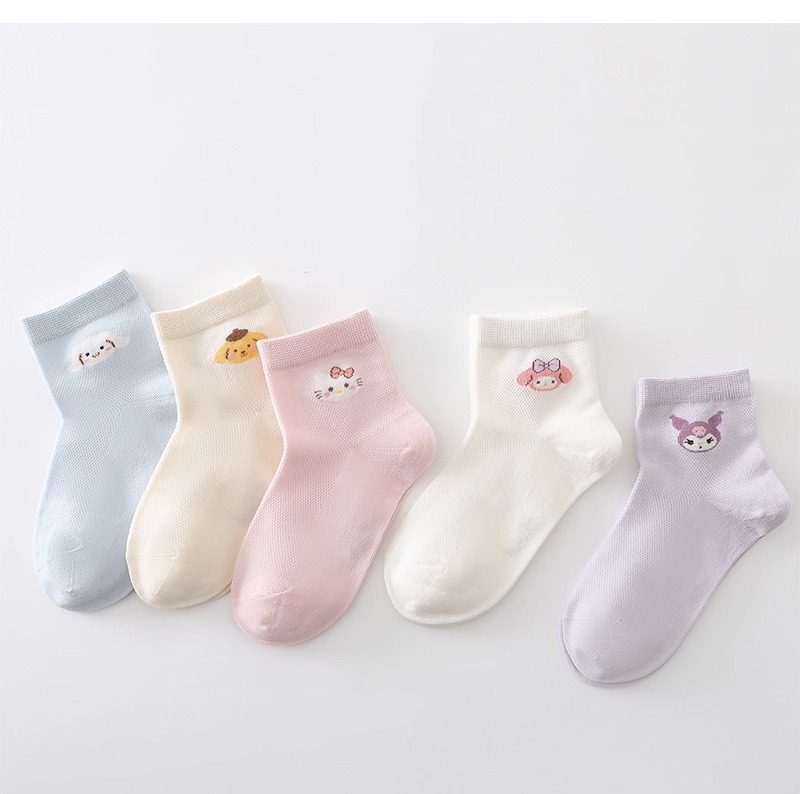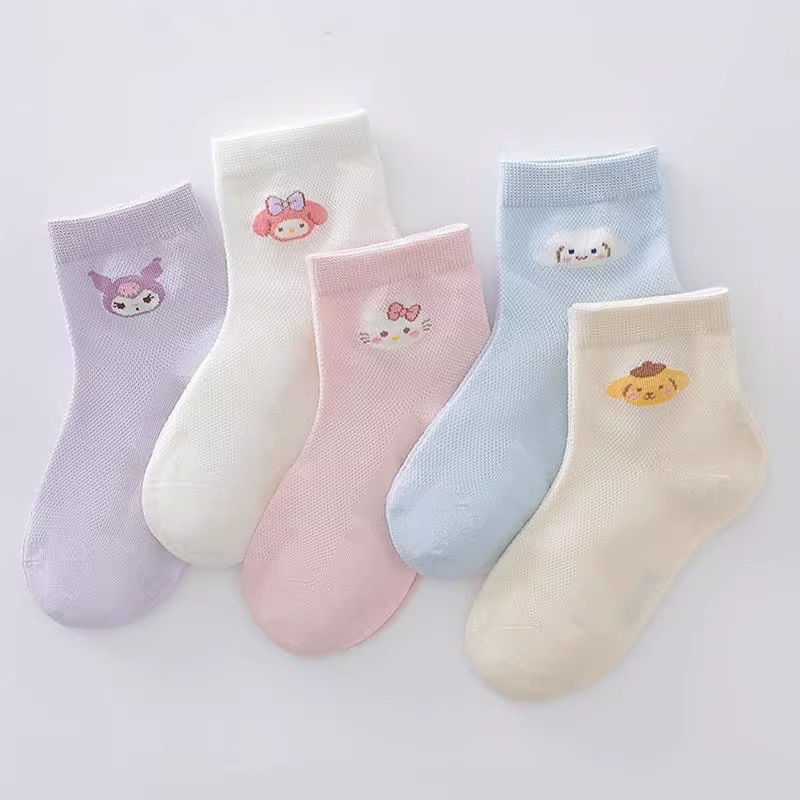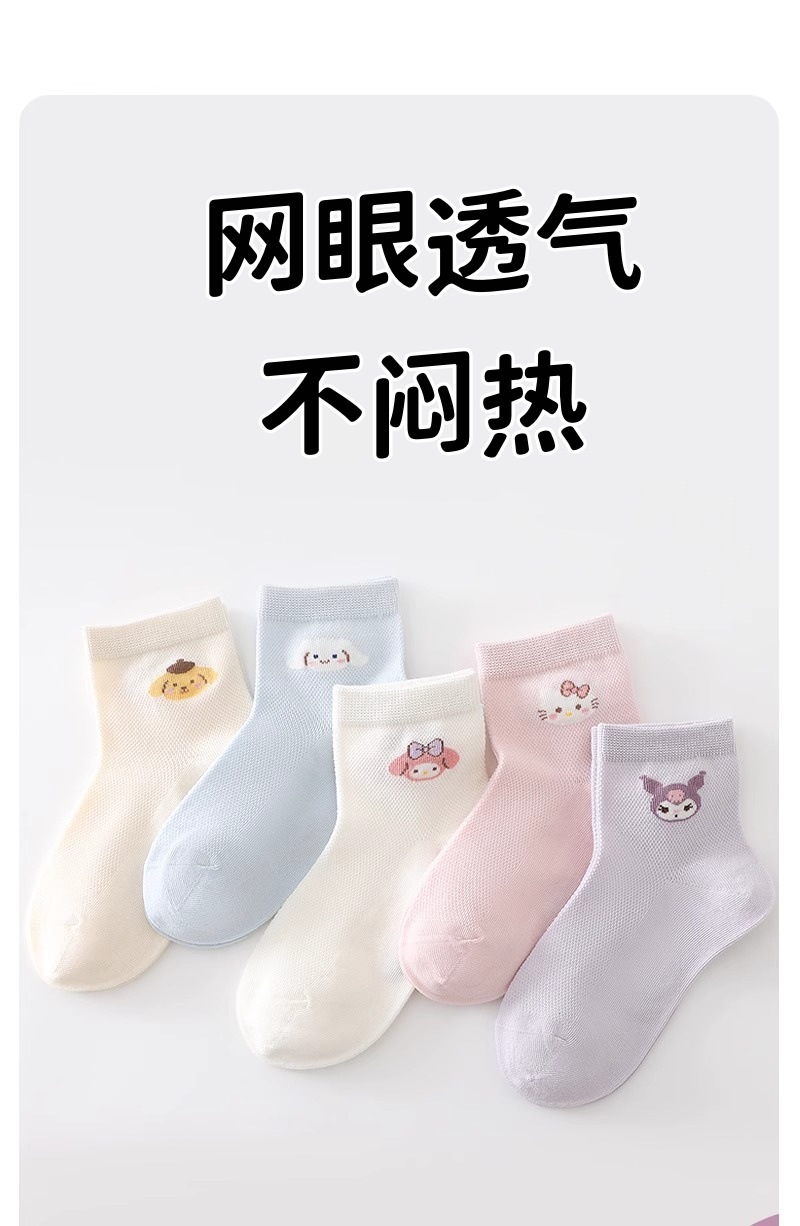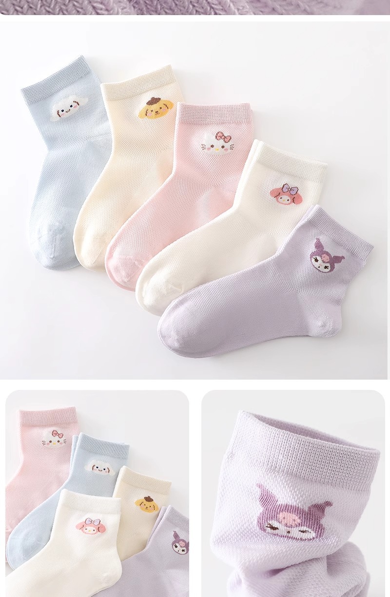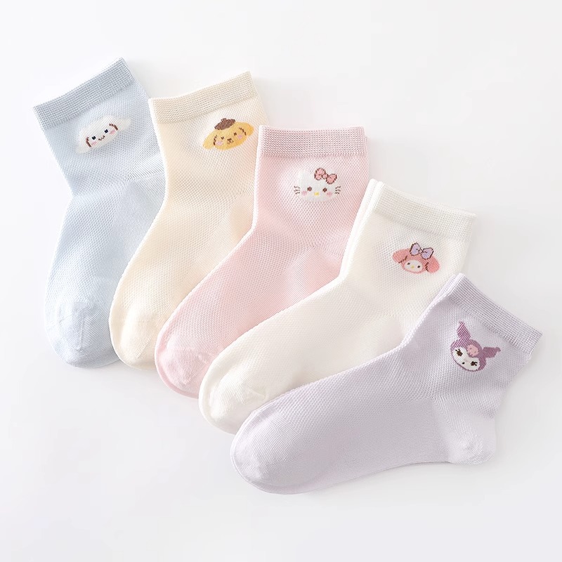 Sanrio 어린이 양말 소녀 여름 얇은 여름 메쉬 통기성 만화 케이트 어린 소녀 양말 Kuromi스토어 가기