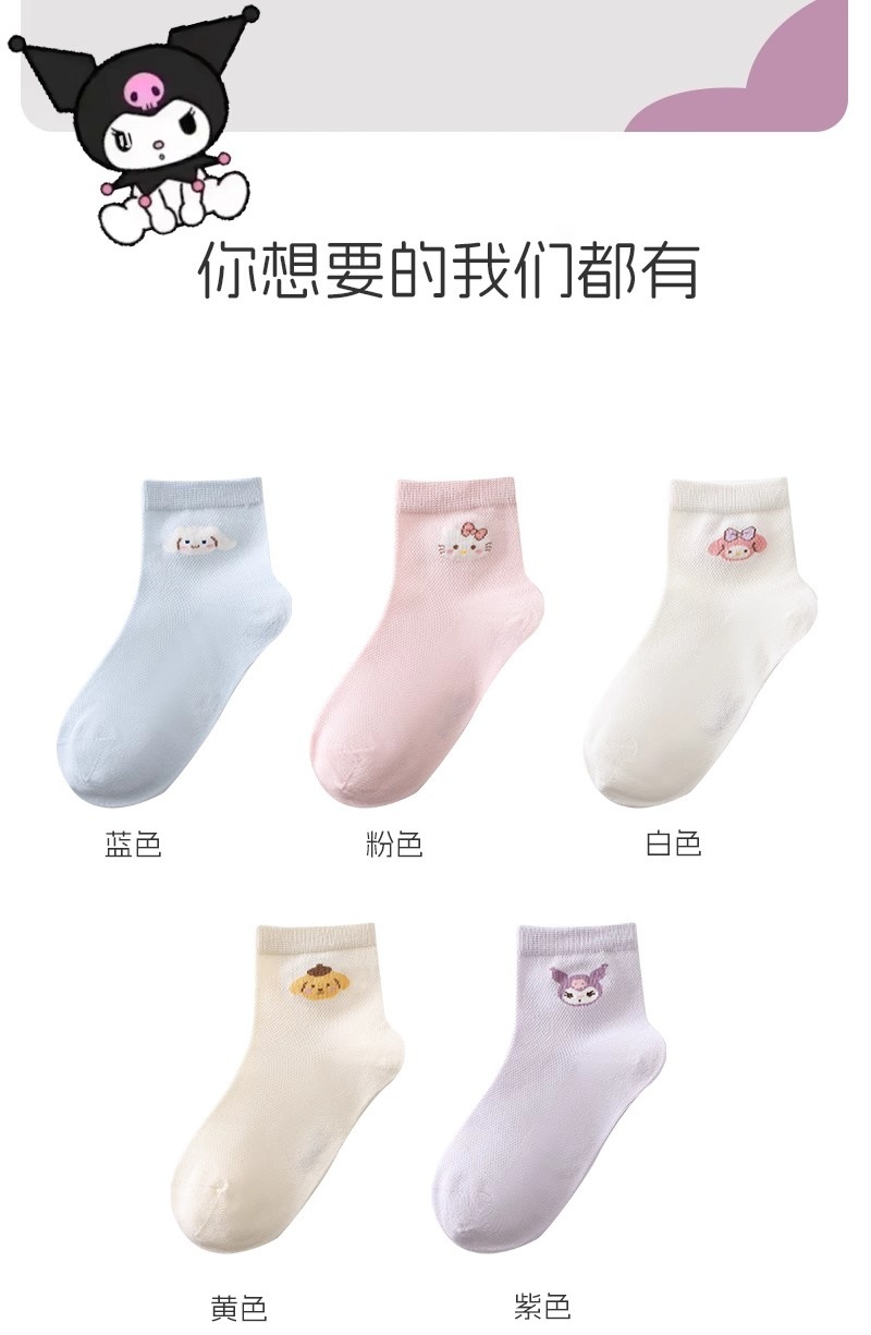 Sanrio 어린이 양말 소녀 여름 얇은 여름 메쉬 통기성 만화 케이트 어린 소녀 양말 Kuromi
