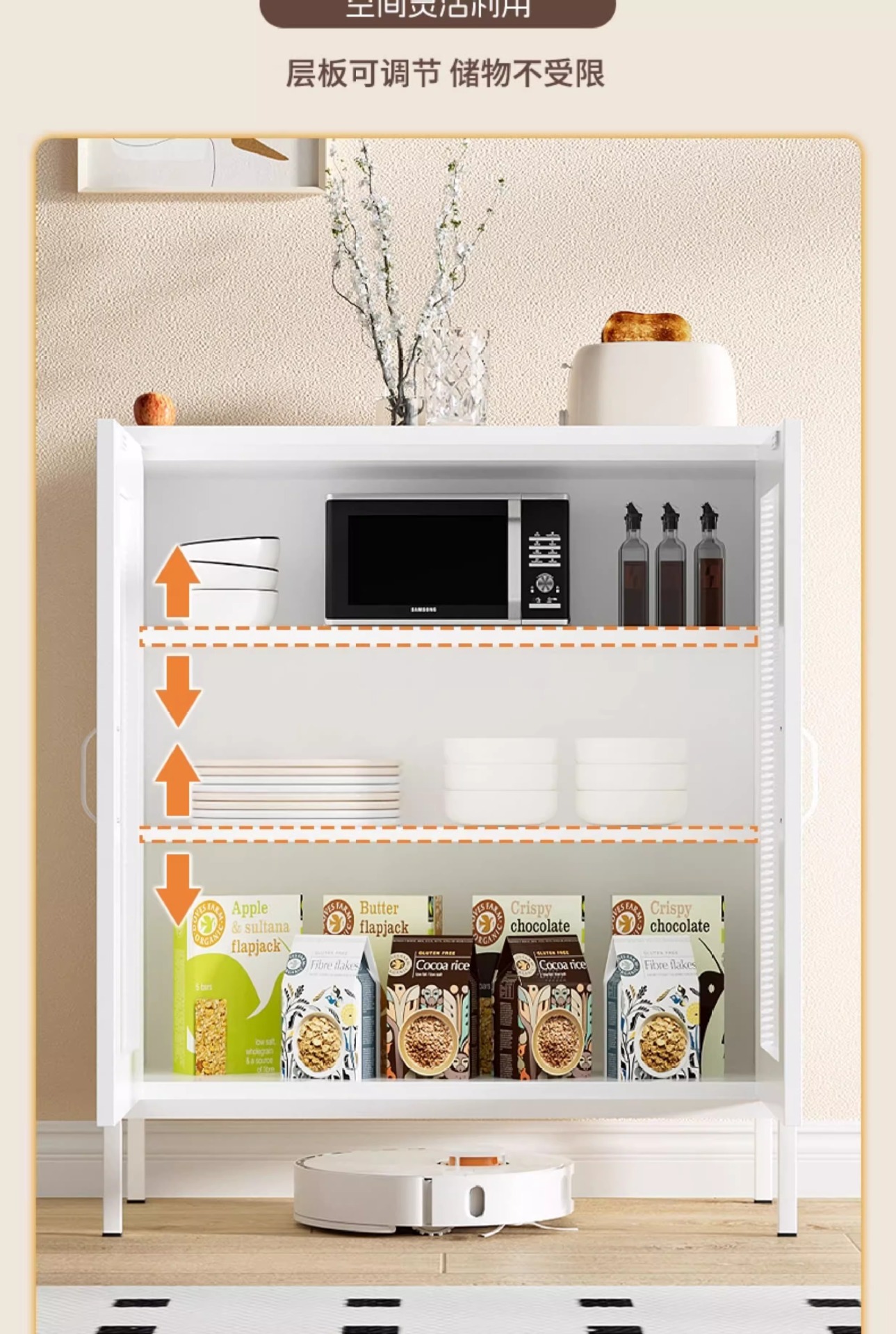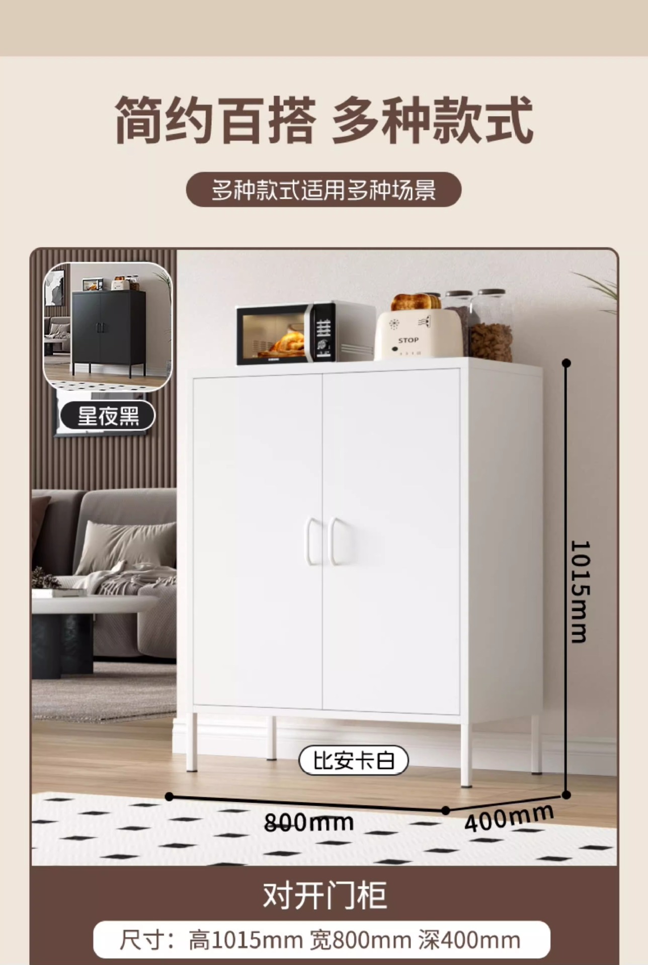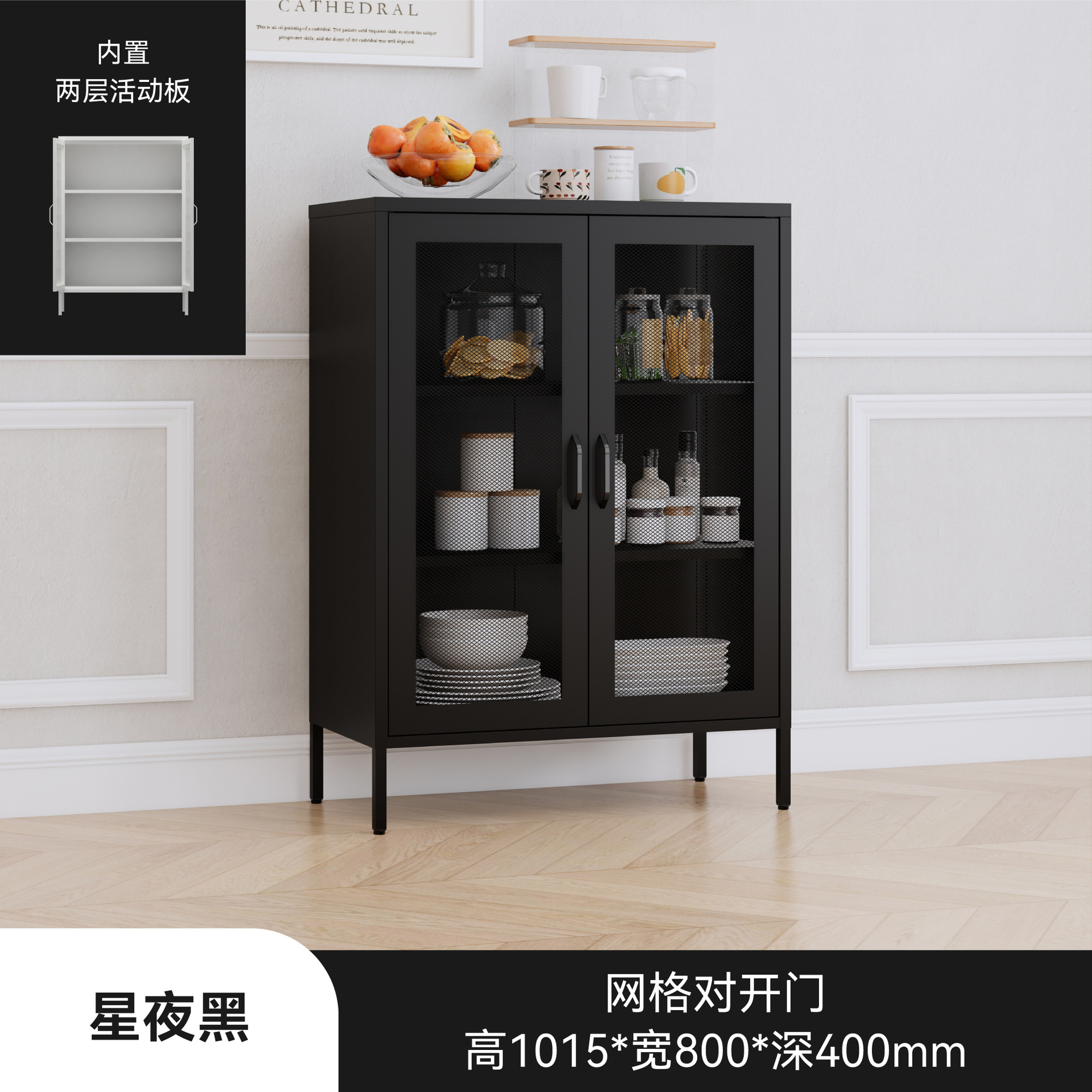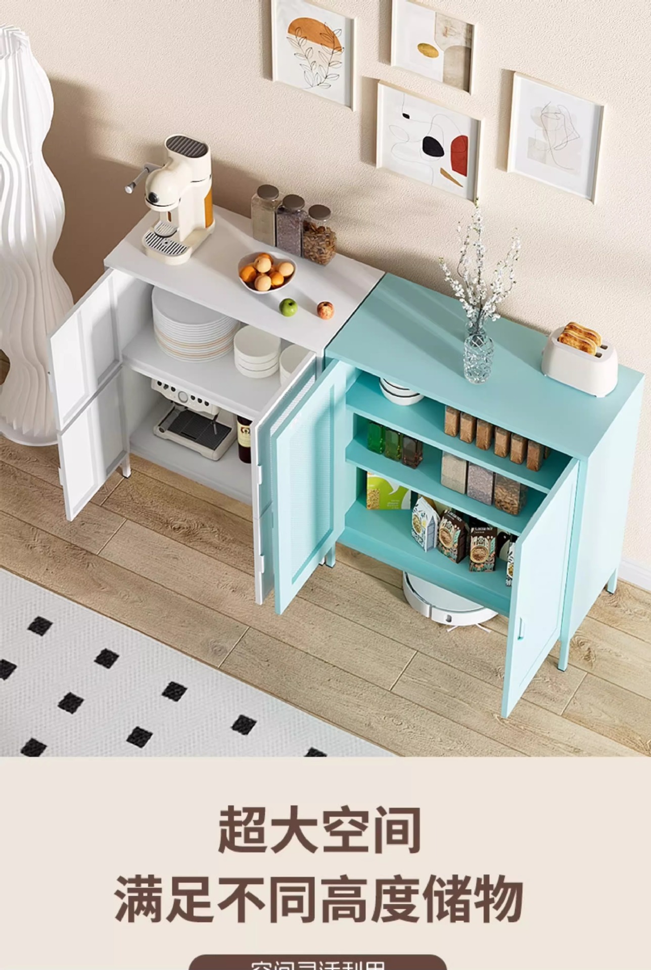 케피아 철제 식탁 옆장 거실 옆장 수납장 가정용 주방 조합형 바닥형 수납장 미니멀리스트 스타일